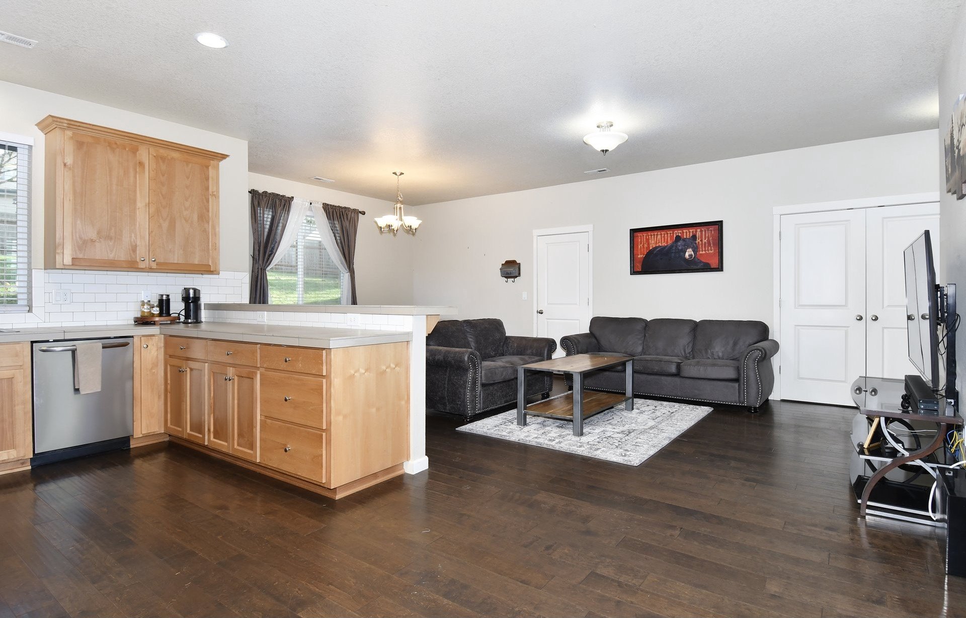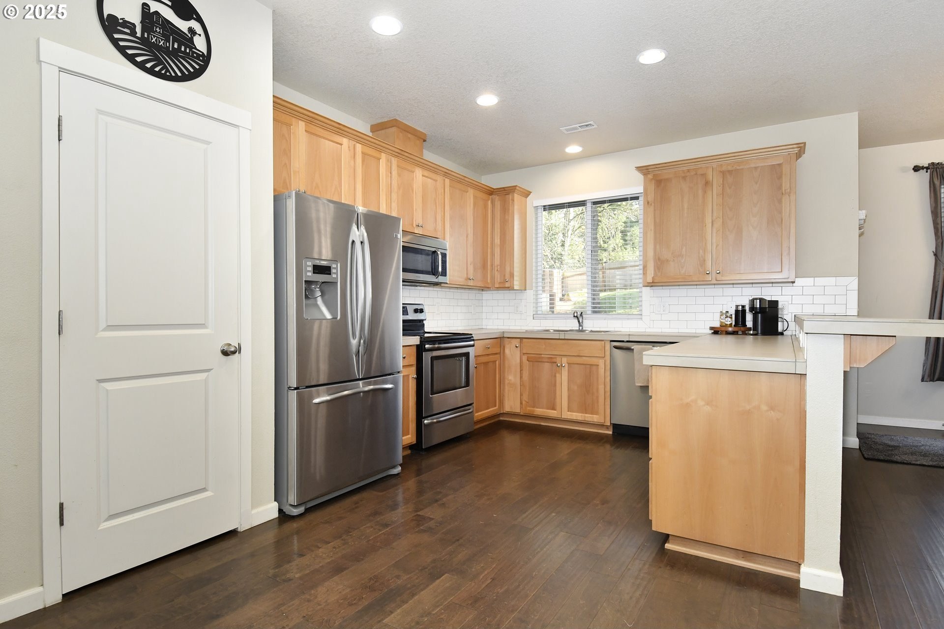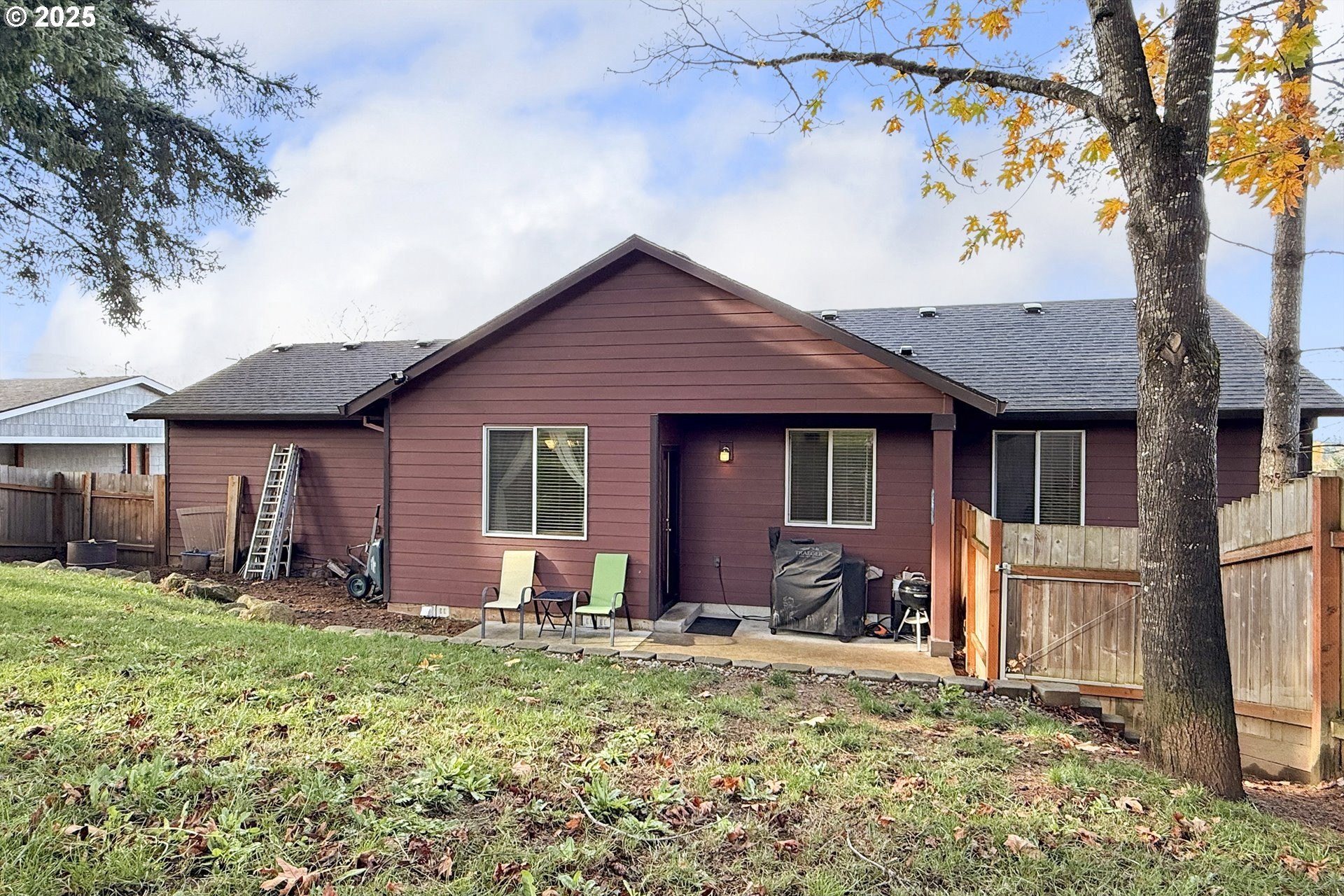 Welcome to this well-kept, one-level ranch-style home built in 2016. Offering 3 bedrooms, 2 full bathrooms, and just under 1,200 sq ft, this home sits on a spacious corner lot in the heart of Estacada. The oversized 2-car garage features high ceilings, a newer garage door, and room for storage, a workbench, plus extra parking along the side of the driveway.Step inside to an open-concept living and kitchen area filled with natural light. The engineered wood floors, high ceilings, and solid-surface countertops give the space a warm and modern feel. The kitchen offers an eat-in bar, stainless steel appliances, a pantry, beautiful cabinetry, and plenty of storage. (Washer and dryer included.)All bedrooms are nicely sized with carpet and blinds. The front bedroom includes a generous closet, and the gun safe may stay with the right offer. The second bedroom and the primary suite both include large walk-in closets. The hall bathroom is conveniently located, while the primary suite enjoys its own private full bath.Outside, enjoy a huge fully fenced backyard with a partially covered patio directly off the dining area-ideal for year-round grilling and outdoor living. The home is equipped with an energy-efficient heat pump to keep things warm in the winter and air-conditioned comfort during the summer.This Estacada home for sale is located off 6th and Shafford, only a short walk to Estacada High School, Estacada Middle School, Clackamas River Elementary, and downtown Estacada shops, restaurants, parks, and local services. A great location paired with a well-designed floor plan makes this property an excellent choice for anyone seeking move-in-ready living in one of Estacada's most convenient neighborhoods. Could potentially finance home with either Conventional, FHA, VA or Zero Down USDA financing. Ask for details. Call for a private tour today.