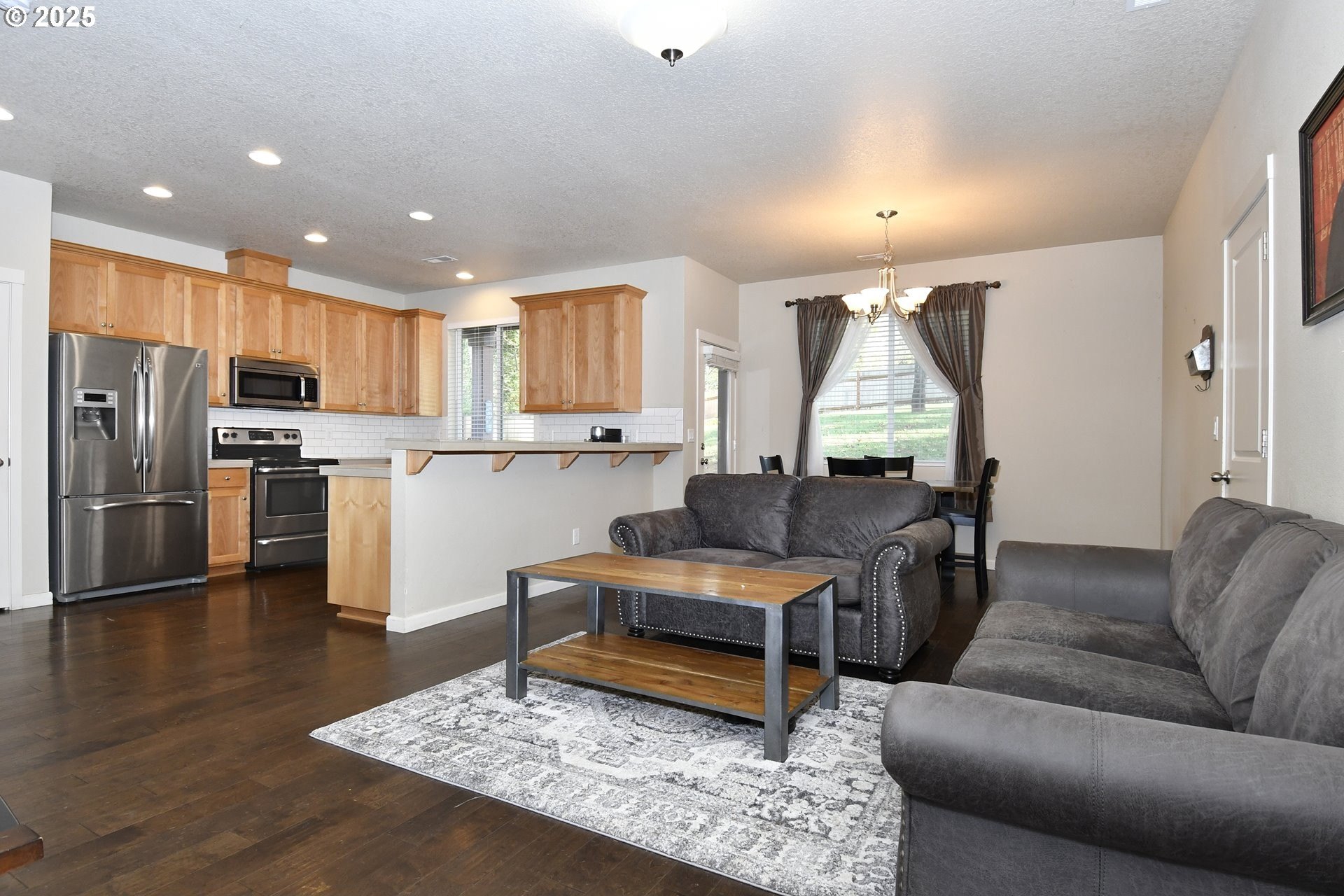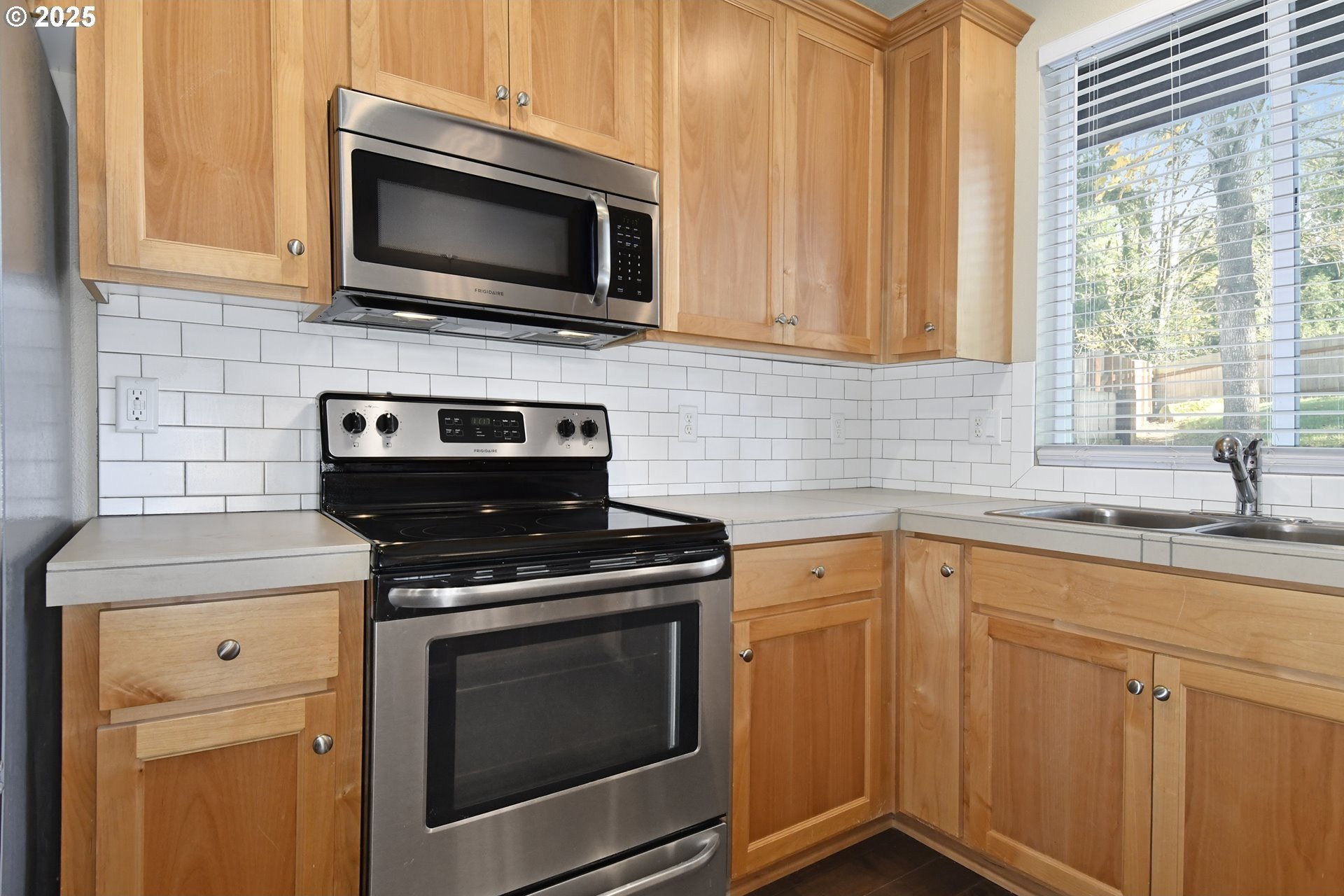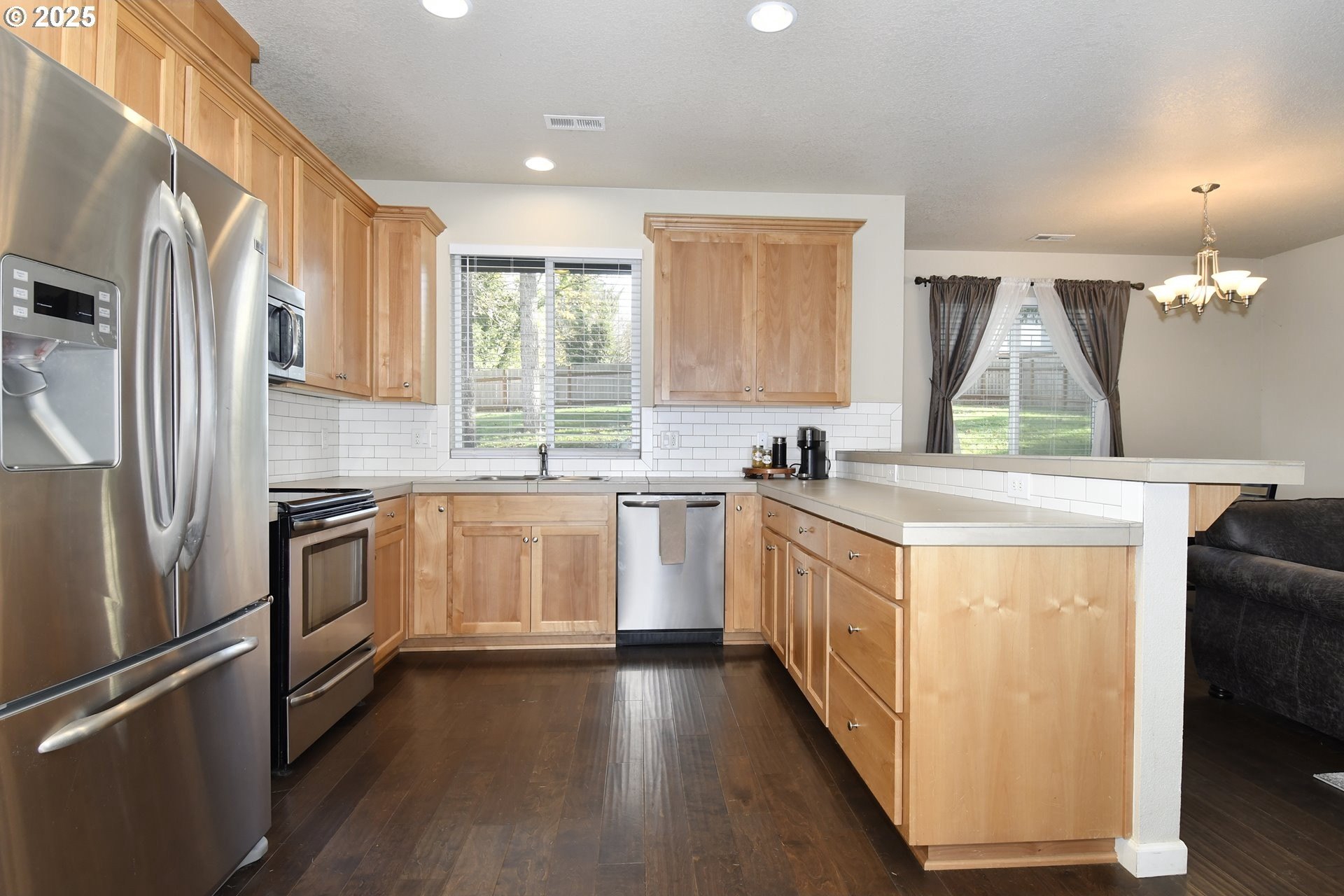 Welcome to this well-kept, one-level ranch-style home built in 2016. Offering 3 bedrooms, 2 full bathrooms, and just under 1,200 sq ft, this home sits on a spacious corner lot in the heart of Estacada. The oversized 2-car garage features high ceilings, a newer garage door, and room for storage, a workbench, plus extra parking along the side of the driveway.Step inside to an open-concept living and kitchen area filled with natural light. The engineered wood floors, high ceilings, and solid-surface countertops give the space a warm and modern feel. The kitchen offers an eat-in bar, stainless steel appliances, a pantry, beautiful cabinetry, and plenty of storage. (Washer and dryer included.)All bedrooms are nicely sized with carpet and blinds. The front bedroom includes a generous closet, and the gun safe may stay with the right offer. The second bedroom and the primary suite both include large walk-in closets. The hall bathroom is conveniently located, while the primary suite enjoys its own private full bath.Outside, enjoy a huge fully fenced backyard with a partially covered patio directly off the dining area-ideal for year-round grilling and outdoor living. The home is equipped with an energy-efficient heat pump to keep things warm in the winter and air-conditioned comfort during the summer.This Estacada home for sale is located off 6th and Shafford, only a short walk to Estacada High School, Estacada Middle School, Clackamas River Elementary, and downtown Estacada shops, restaurants, parks, and local services. A great location paired with a well-designed floor plan makes this property an excellent choice for anyone seeking move-in-ready living in one of Estacada's most convenient neighborhoods. Could potentially finance home with either Conventional, FHA, VA or Zero Down USDA financing. Ask for details. Call for a private tour today.