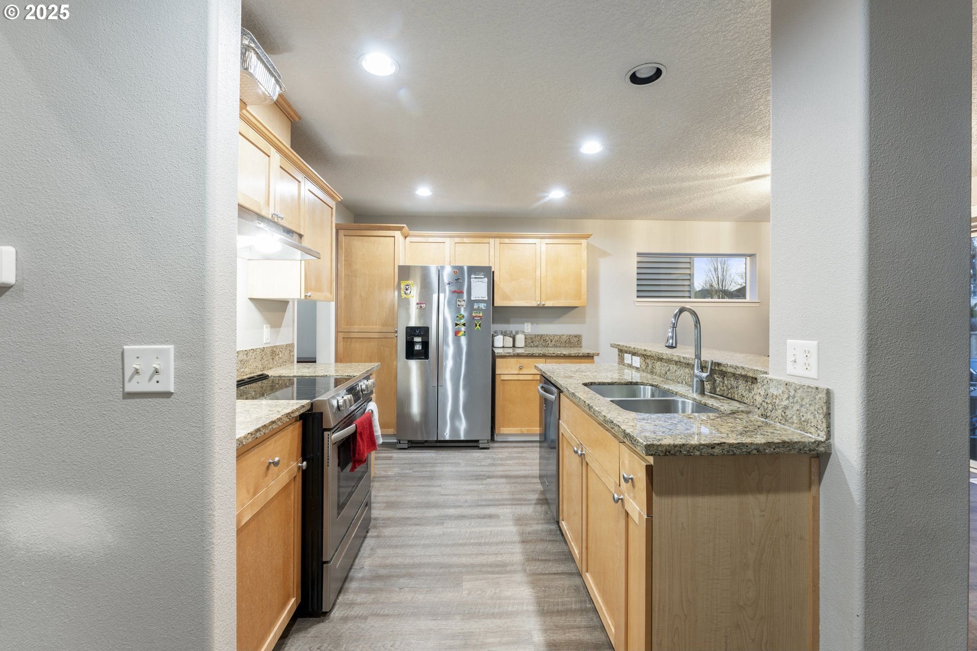 Discover this beautifully maintained Arbor home offering 4 bedrooms, 3 full baths, and 2,422 sq. ft. of comfortable, elegant living space. The formal living and dining rooms create a welcoming setting for gatherings, while the spacious kitchen features slab granite countertops, maple cabinets and flooring, a breakfast nook, eating bar, brand-new stainless steel range, and a newer stainless steel dishwasher.The light-filled family room includes a cozy gas fireplace, and the main level also offers a desirable bedroom and full bathroom-perfect for guests or multi-generational living. Upstairs, the primary suite provides a relaxing retreat with a garden tub, dual sinks, and a walk-in closet. All bedrooms are generously sized, offering plenty of room to spread out.Located in a sought-after neighborhood with parks and walking trails, this home is just minutes from Nike, Intel, shopping, dining, and Highway 26-ideal for both convenience and lifestyle.