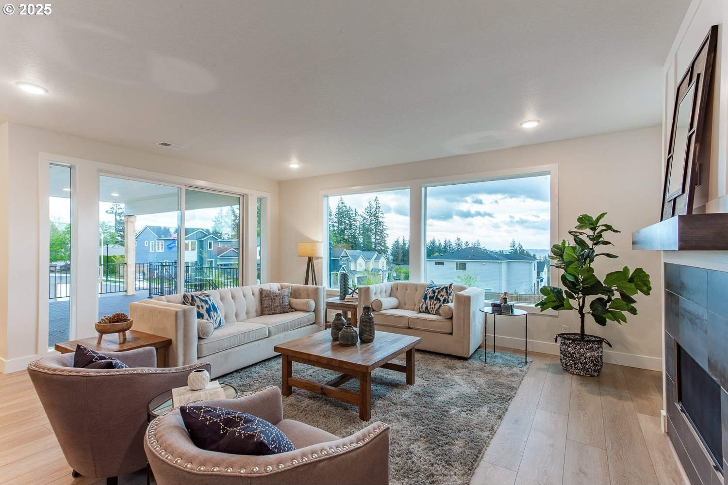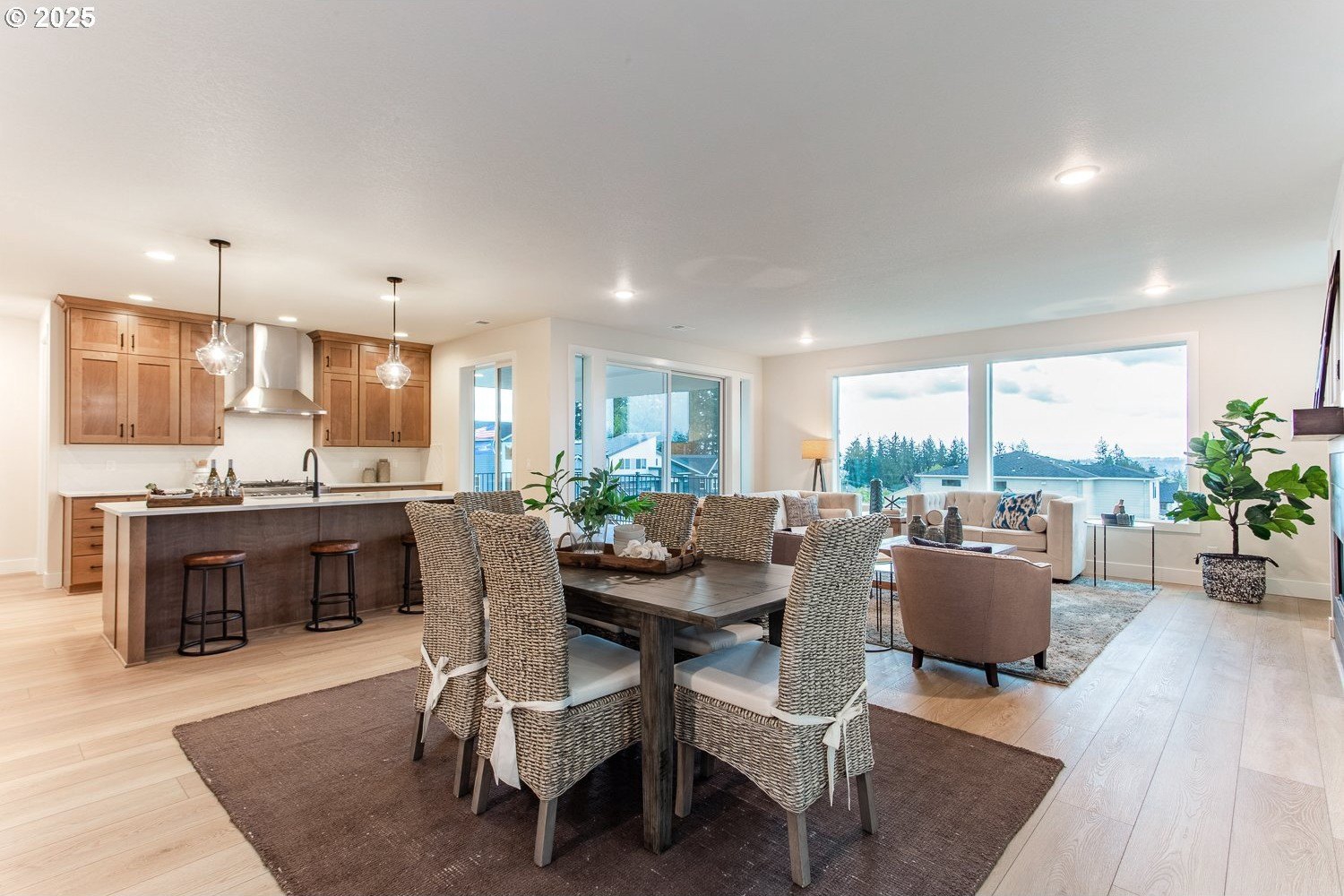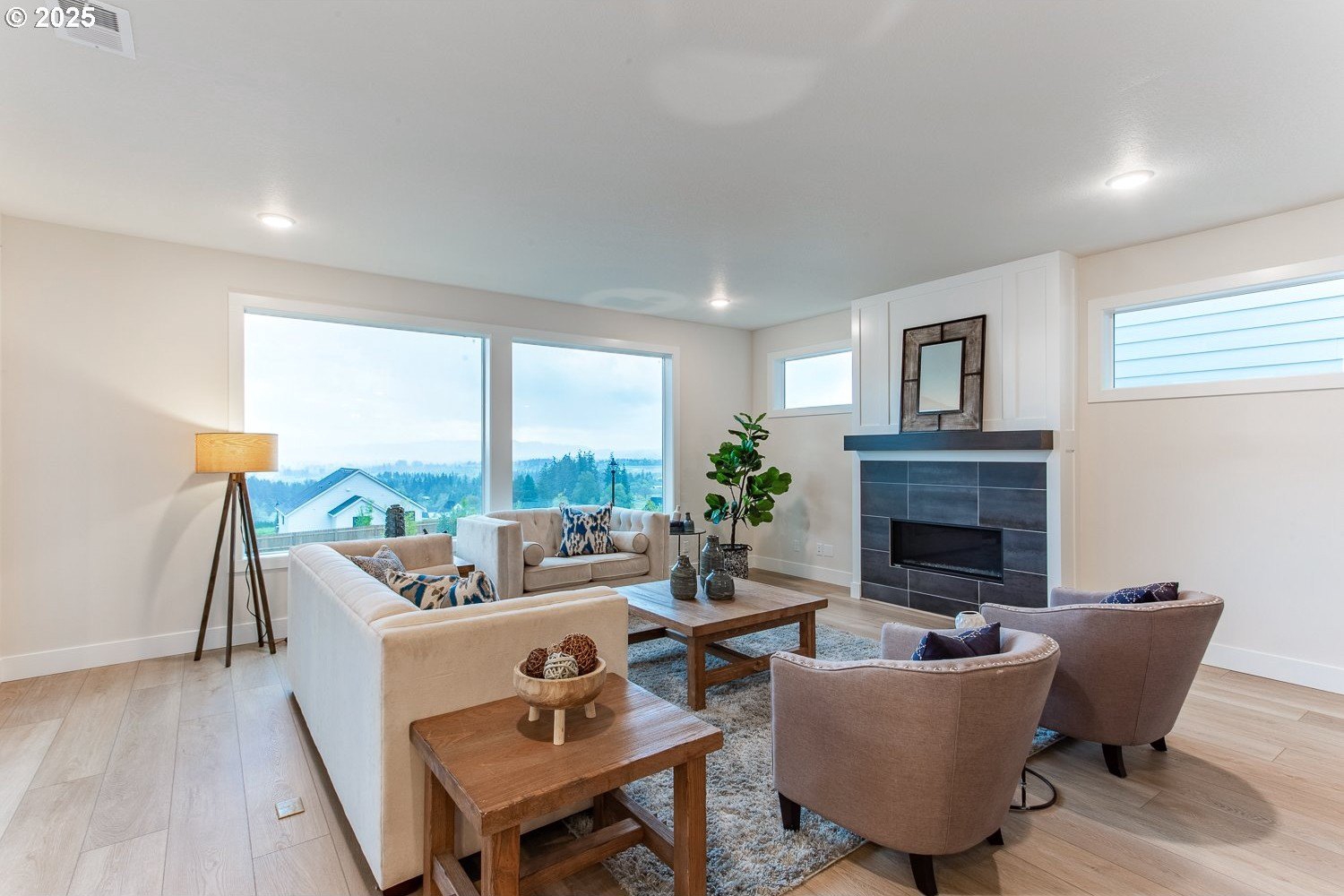 The jaw-dropping view from all the key rooms of this chic and stylish craftsman help explain why it was a model home for the development with too many upgrades to list! A perfect blend of modern design with an open floor plan, this premium home built by Stonebridge Homes NW still feels brand new! The main level is light and bright with a cozy gas fireplace, luxury vinyl plank flooring, high ceilings and elevated finishes throughout including upgraded Mission shaker style cabinetry and more. The gourmet kitchen is a chef's dream with a premium Verona dual fuel free-standing range and other commercial-style appliances including a built-in microwave and Zephyr 1200 CFM chimney hood vent, quartz countertops, pantry, large island with eating bar and decorator lighting. There's also one full bedroom and bathroom on the main floor that's perfect for guests, multi-generational living, a nursery or home office. Upstairs, the expansive primary suite with high ceilings is your own private oasis with an ensuite bath, luxurious soaking tub, walk-in closet, wall-to-wall carpet and captivating, uninterrupted valley view! 3 other spacious bedrooms mean there's space for everyone and make this home live large. Outdoor entertaining is effortless with a huge 21'x13' covered deck and a fully-landscaped, fenced backyard. This Earth Advantage-certified home is highly energy efficient with central A/C and nest thermostats, tankless hot water heater, Ring video doorbell system, plus an oversized 3-car garage with plenty of storage! And the 220V outlet on the lower patio is a major upgrade that can power a jacuzzi or swim spa. With multiple neighborhood parks and walking trails nearby, this one truly has it all (including a refrigerator not pictured in photos!).