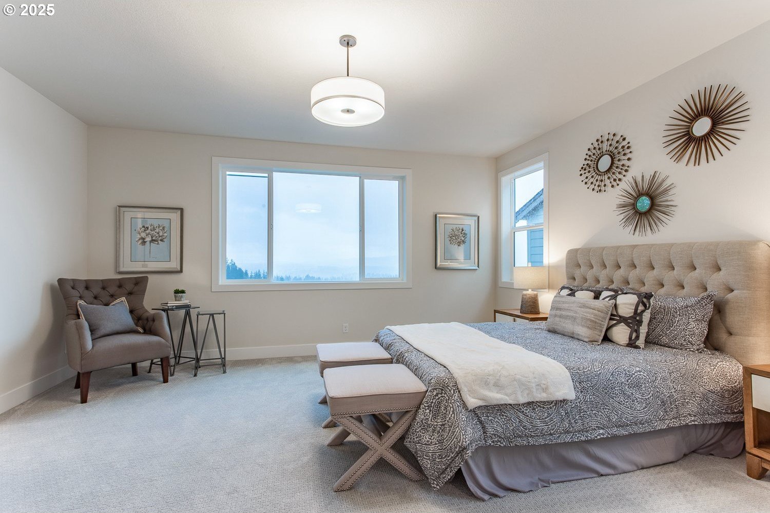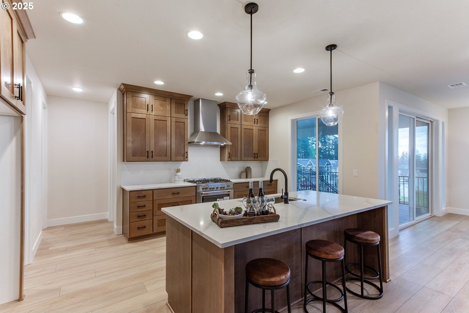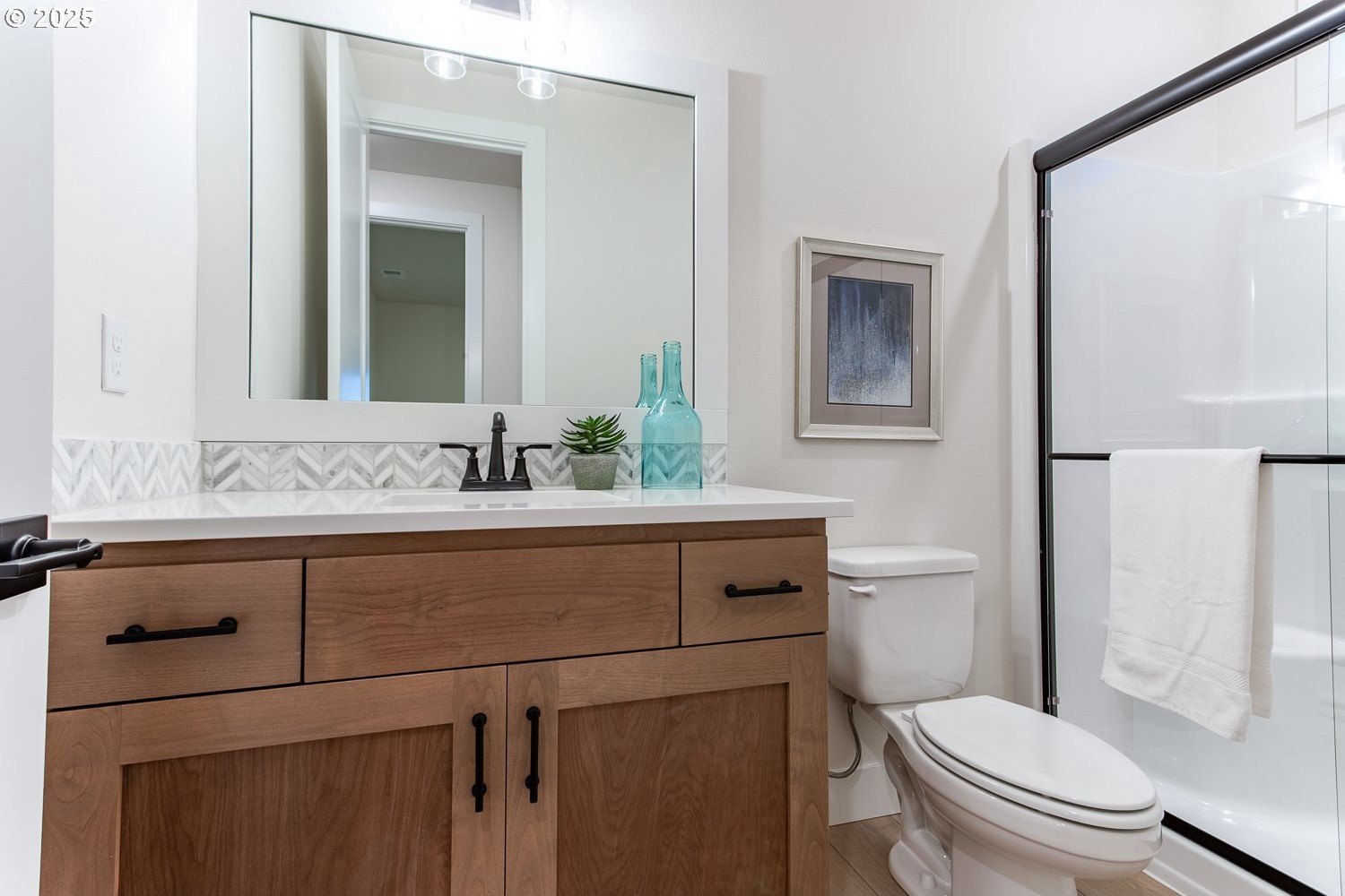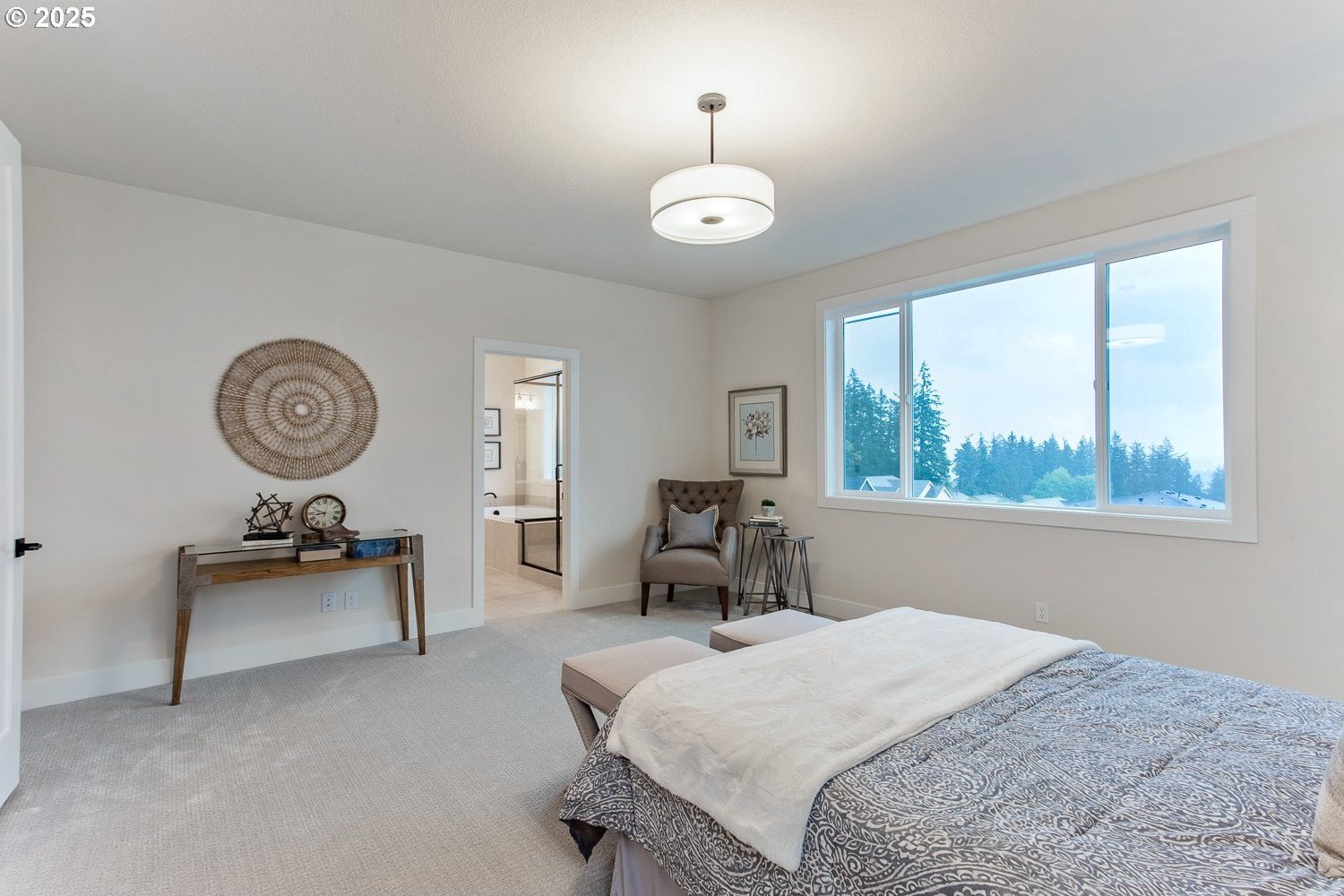 The jaw-dropping view from all the key rooms of this chic and stylish craftsman help explain why it was a model home for the development with too many upgrades to list! A perfect blend of modern design with an open floor plan, this premium home built by Stonebridge Homes NW still feels brand new! The main level is light and bright with a cozy gas fireplace, luxury vinyl plank flooring, high ceilings and elevated finishes throughout including upgraded Mission shaker style cabinetry and more. The gourmet kitchen is a chef's dream with a premium Verona dual fuel free-standing range and other commercial-style appliances including a built-in microwave and Zephyr 1200 CFM chimney hood vent, quartz countertops, pantry, large island with eating bar and decorator lighting. There's also one full bedroom and bathroom on the main floor that's perfect for guests, multi-generational living, a nursery or home office. Upstairs, the expansive primary suite with high ceilings is your own private oasis with an ensuite bath, luxurious soaking tub, walk-in closet, wall-to-wall carpet and captivating, uninterrupted valley view! 3 other spacious bedrooms mean there's space for everyone and make this home live large. Outdoor entertaining is effortless with a huge 21'x13' covered deck and a fully-landscaped, fenced backyard. This Earth Advantage-certified home is highly energy efficient with central A/C and nest thermostats, tankless hot water heater, Ring video doorbell system, plus an oversized 3-car garage with plenty of storage! And the 220V outlet on the lower patio is a major upgrade that can power a jacuzzi or swim spa. With multiple neighborhood parks and walking trails nearby, this one truly has it all (including a refrigerator not pictured in photos!).