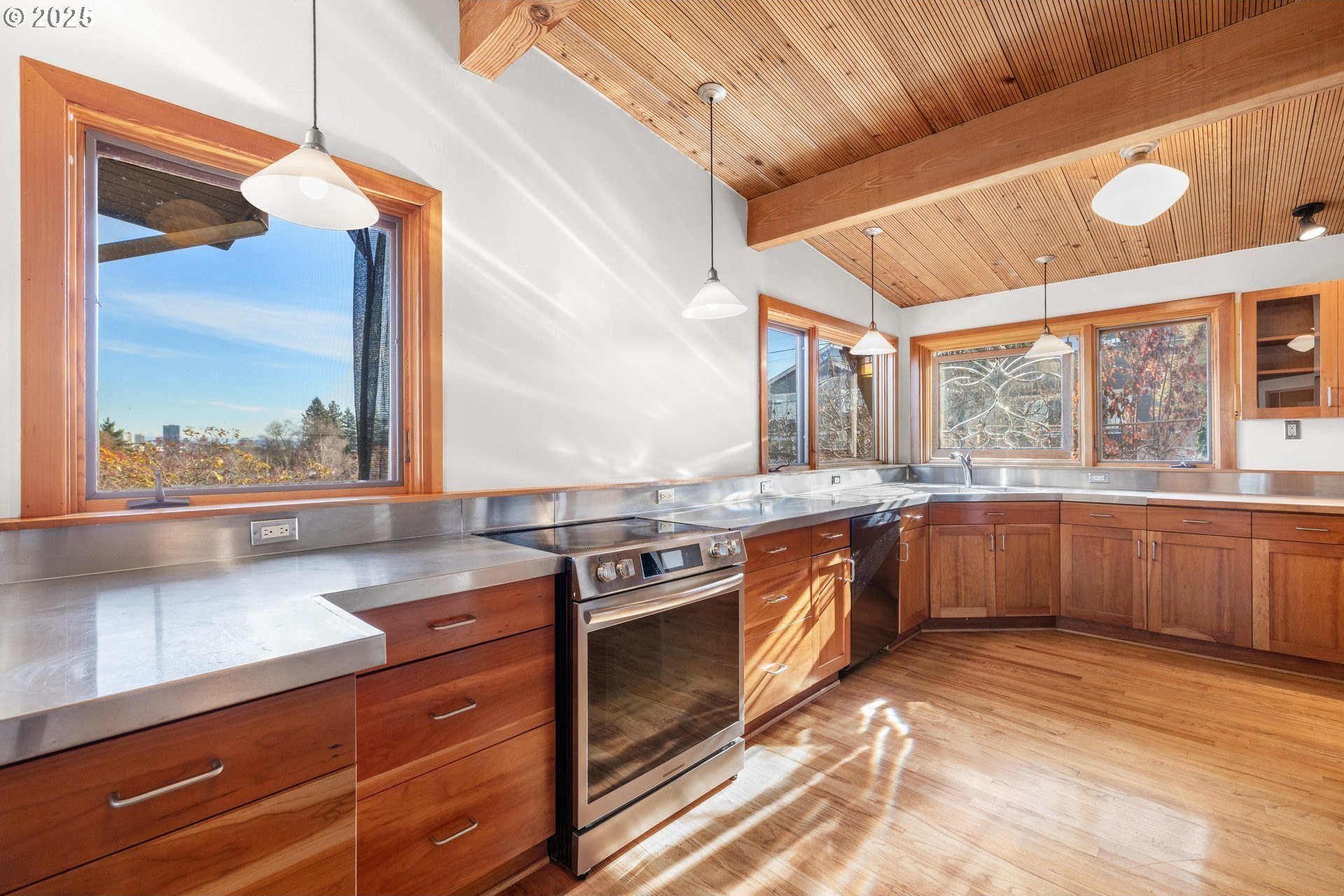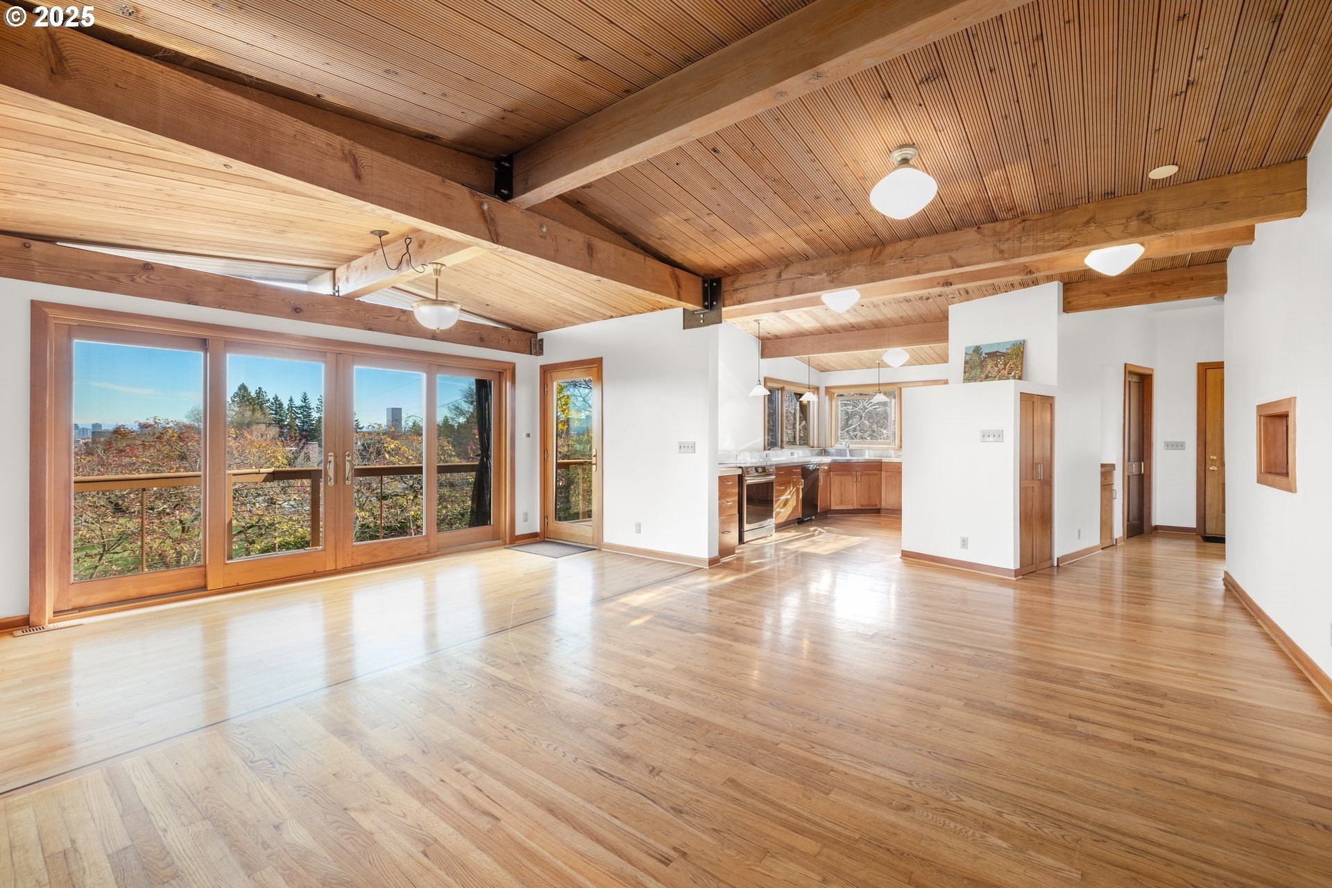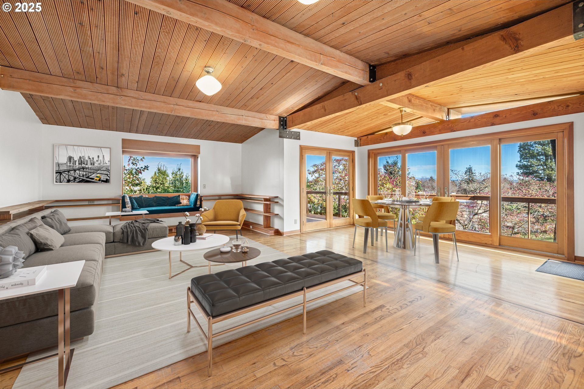 OPEN SAT, 12/6 fm 11-1; SUN, 12/7 fm 10-12! Rare NW Portland Four-Plex. This beautifully maintained Mid-Century Modern property offers unmatched flexibility-perfect investment opportunity, multi-generational living, or owner-occupied with income potential. Live in one unit and rent the other three for additional income. Four Private Units - Each with its own secure entrance, full kitchen, HVAC, and in-unit washer/dryer. Main Unit: Light-filled 2 bed, 1.5 bath, 1382 SF with wraparound deck, vaulted ceilings with old-growth fir beams, oak hardwood floors, & panoramic views of the city and Mt. St. Helens. Second main floor unit is a Spacious 2 bed, 1 bath with stunning views. Ground Floor Units: 2 studios - both with full kitchen and bath. Metal roof, owned solar panels, and rainwater collection system. New paint throughout and newer double-paned Marvin windows. Lovingly maintained by a master carpenter and gardener. Mature garden with fruit-bearing trees. Strong rental history with two units currently rented. Just blocks from NW 23rd's vibrant shops and dining, yet perched above Chapman Elementary and Wallace Park for a serene setting with plentiful free parking. Located in Portland's premier school district: Chapman, West Sylvan, and Lincoln High. Mechanical updates, steady income, and a prime location make this a rare find in one of Portland's most beloved neighborhoods. Don't m iss your chance to own a piece of NW Portland history. [Home Energy Score = 1. HES Report