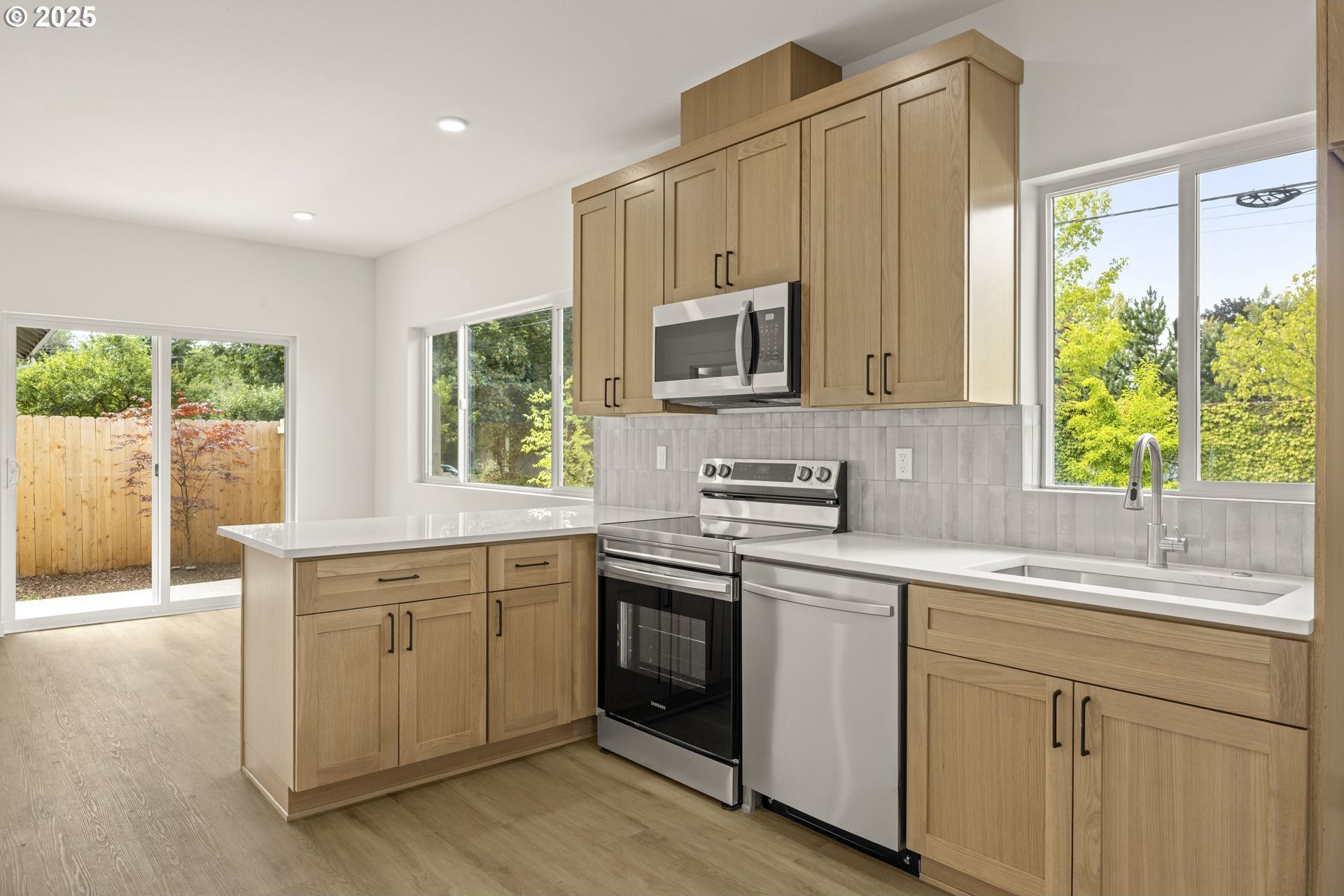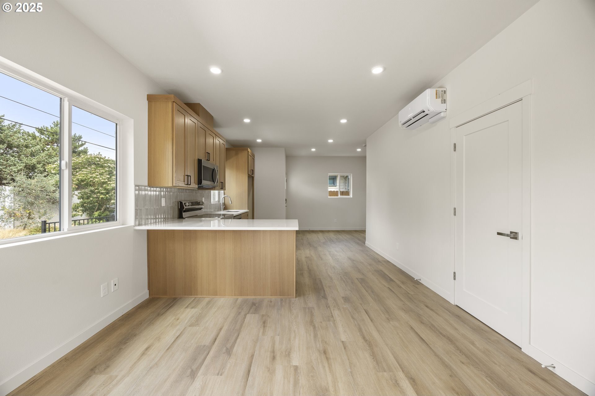 This exceptional condominium is nestled in the heart of North Portland's vibrant North Humboldt neighborhood. With a Walk Score of 85 and Transit Score of 54, the property provides excellent walkability and transit access, plus close proximity to New Seasons, Whole Foods, Portland International Airport (18 minutes), and many popular restaurants and shops. The property features hard surface flooring throughout the main and upper levels, complemented by high ceilings and designer finishes that create an open and inviting atmosphere. There are two ensuite bedrooms, one featuring a walk-in tiled shower and the other with a tub and beautiful tile surround. The spacious kitchen is equipped with custom cabinets, a sleek slab countertop, and a stunning tile backsplash, providing an exceptional culinary space. Year-round comfort is maintained through mini-split heating and cooling systems, while a covered patio, fenced yard, and spacious outdoor area offers an ideal space for relaxation and entertainment. This thoughtfully designed property includes a one-year builder warranty and has been expertly crafted by a reputable local boutique builder, ensuring quality construction throughout. Buyers are to conduct all due diligence regarding the property.