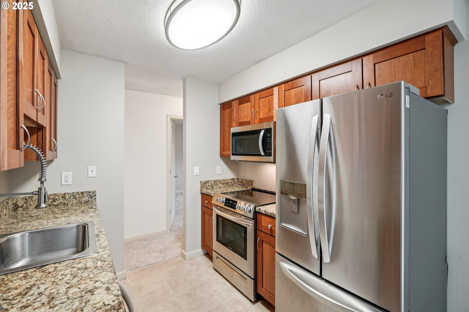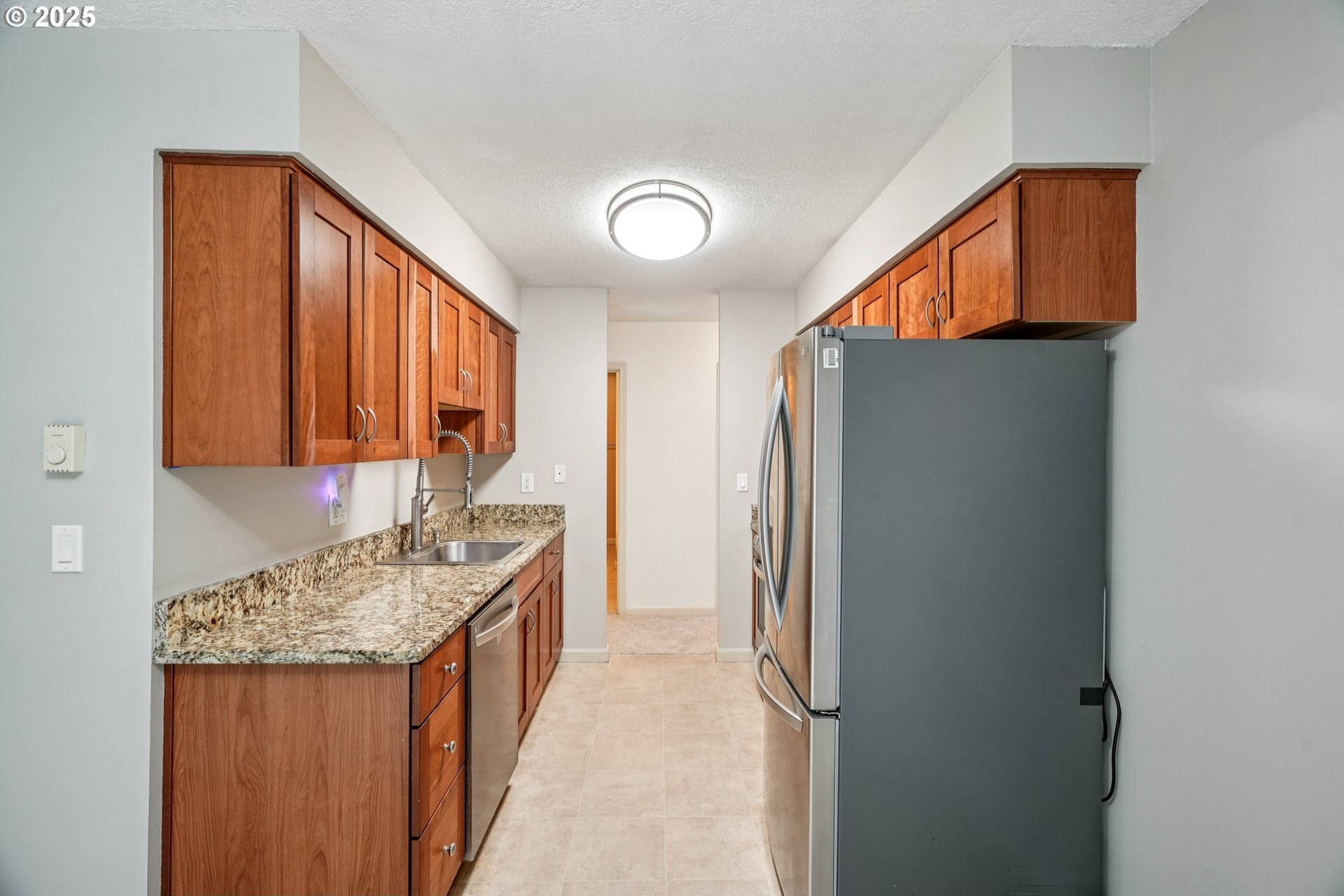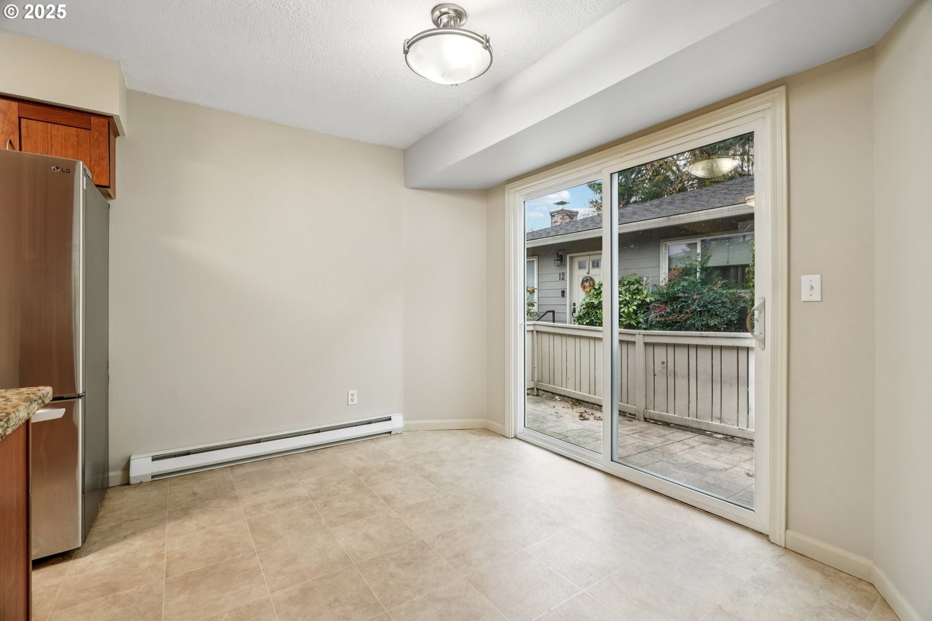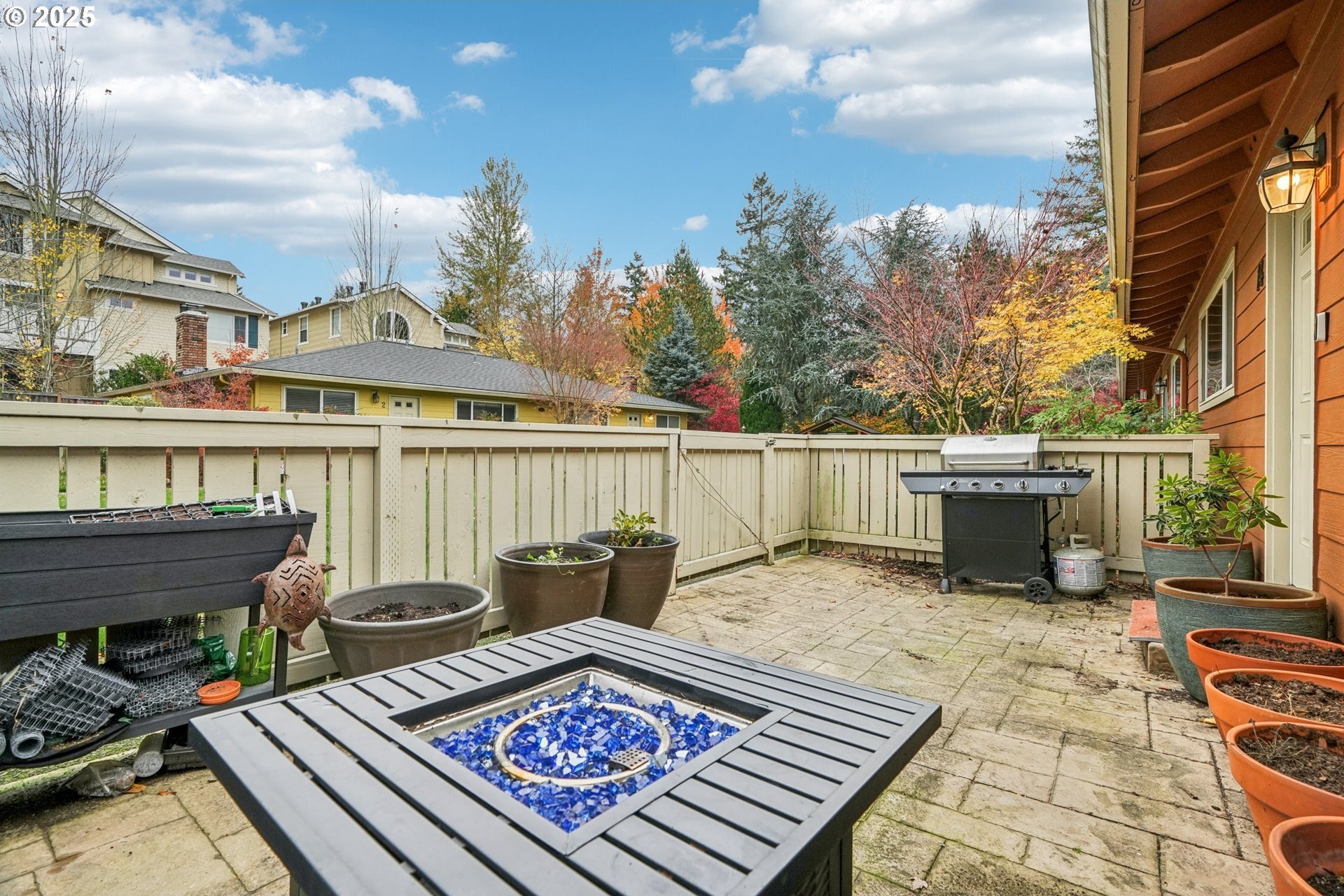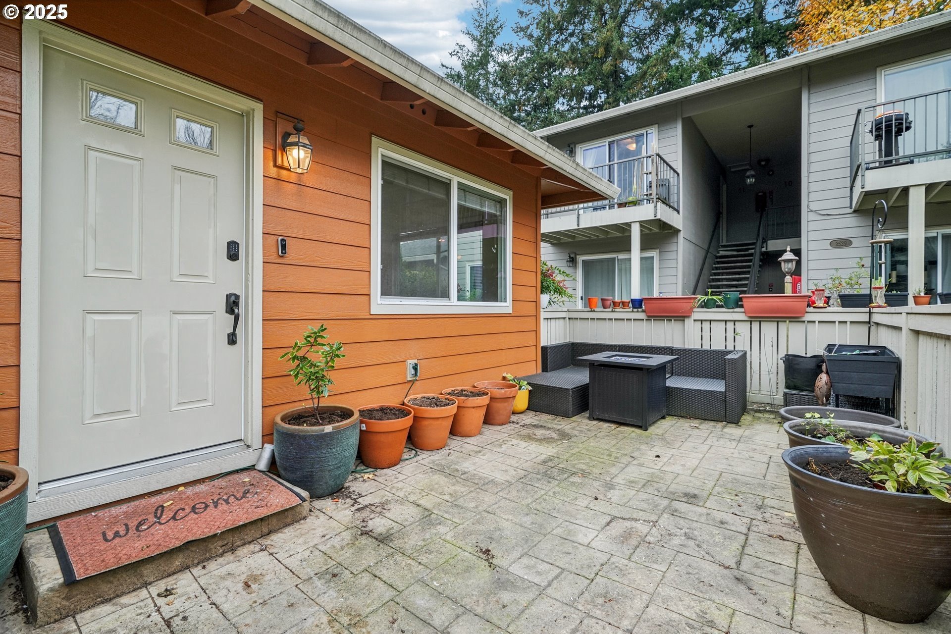 Enjoy peaceful living in this beautifully updated corner-unit condo, ideally located in a quiet community of just 16 homes. This spacious single-level layout offers 1,173 sq. ft. with 3 bedrooms and 2 bathrooms, featuring brand new carpet, fresh interior paint, and stylish finishes throughout.The kitchen boasts granite counters, updated cabinetry, and stainless steel appliances, perfect for everyday cooking and entertaining. The inviting living area includes a wood burning fireplace and opens to two private outdoor patios, ideal for relaxing or enjoying your morning coffee.Additional highlights include two deeded parking spaces, a separate storage area, and in-unit washer, dryer, and refrigerator, all included. The HOA is low and covers water, sewer, and garbage.Conveniently located close to Multnomah Village, Spring Garden Park, shopping, and local restaurants. A shared green space makes it easy to take the dog for a walk and enjoy the tranquil setting.
