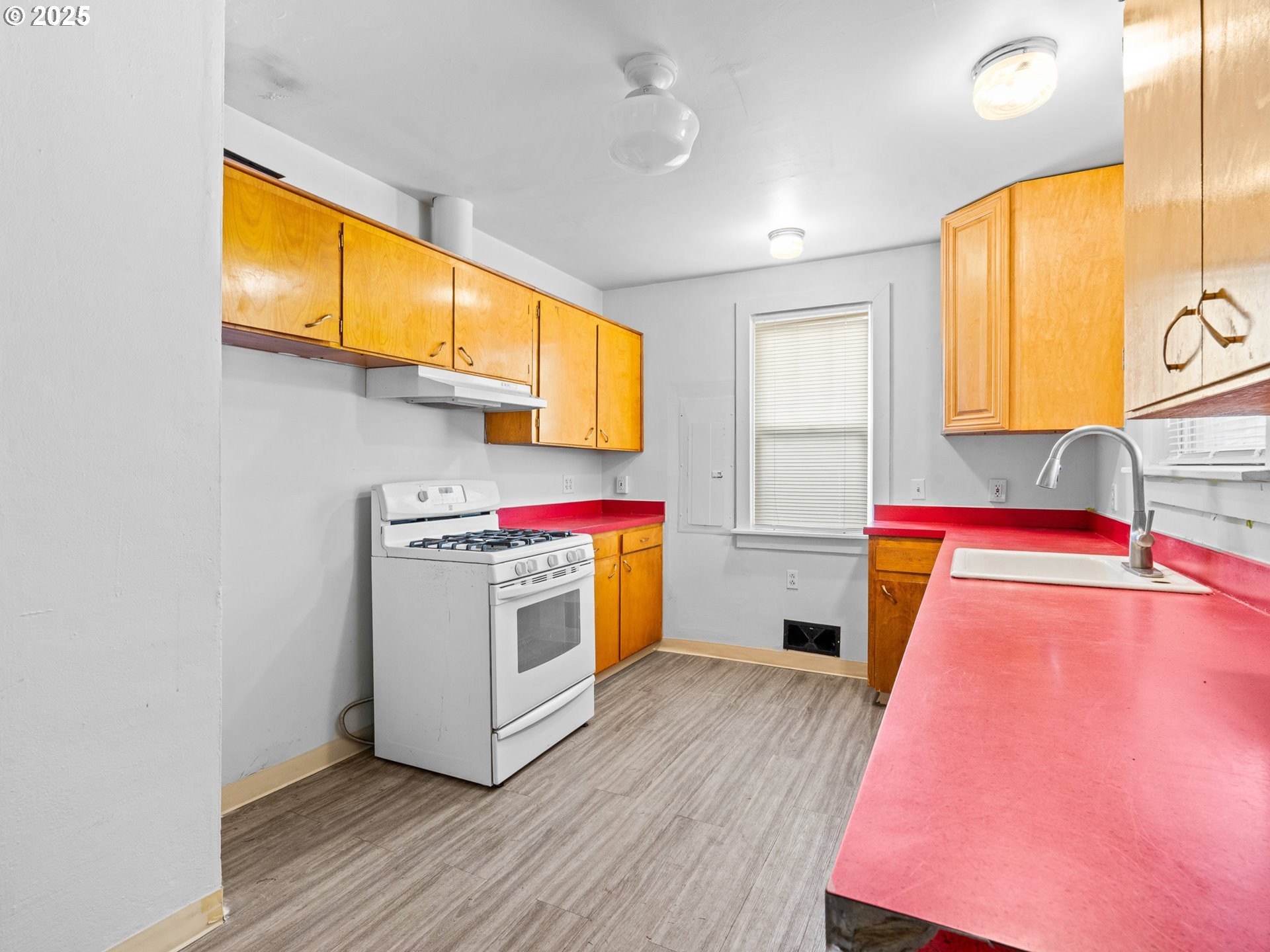 Set on a wide, tree-filled lot in Arbor Lodge, this classic one-level home offers comfortable everyday living and room to grow. A covered front porch welcomes you into a bright living room that connects to a generous dining area and an efficient kitchen with long stretches of counter space and storage. All three bedrooms are on the main floor for easy living, along with a full bathroom plus a convenient half bath. An attached 1-car garage at the back of the property adds secure parking and extra space for bikes, tools, or gear.The deep backyard features mature trees, open lawn, and a simple path, creating plenty of space for gardens, play, or outdoor gatherings. With an 82 Walk Score and an 89 Bike Score, this location makes it easy to leave the car at home-New Seasons Market Arbor Lodge, the MAX Yellow Line at Rosa Parks, and neighborhood spots like Posies Cafe and The Arbor Lodge coffee shop are close by, along with bars and restaurants along N Interstate. When you want time outside, Arbor Lodge Park and nearby Peninsula Park offer paths, open fields, and community recreation.