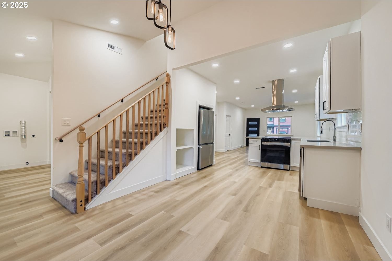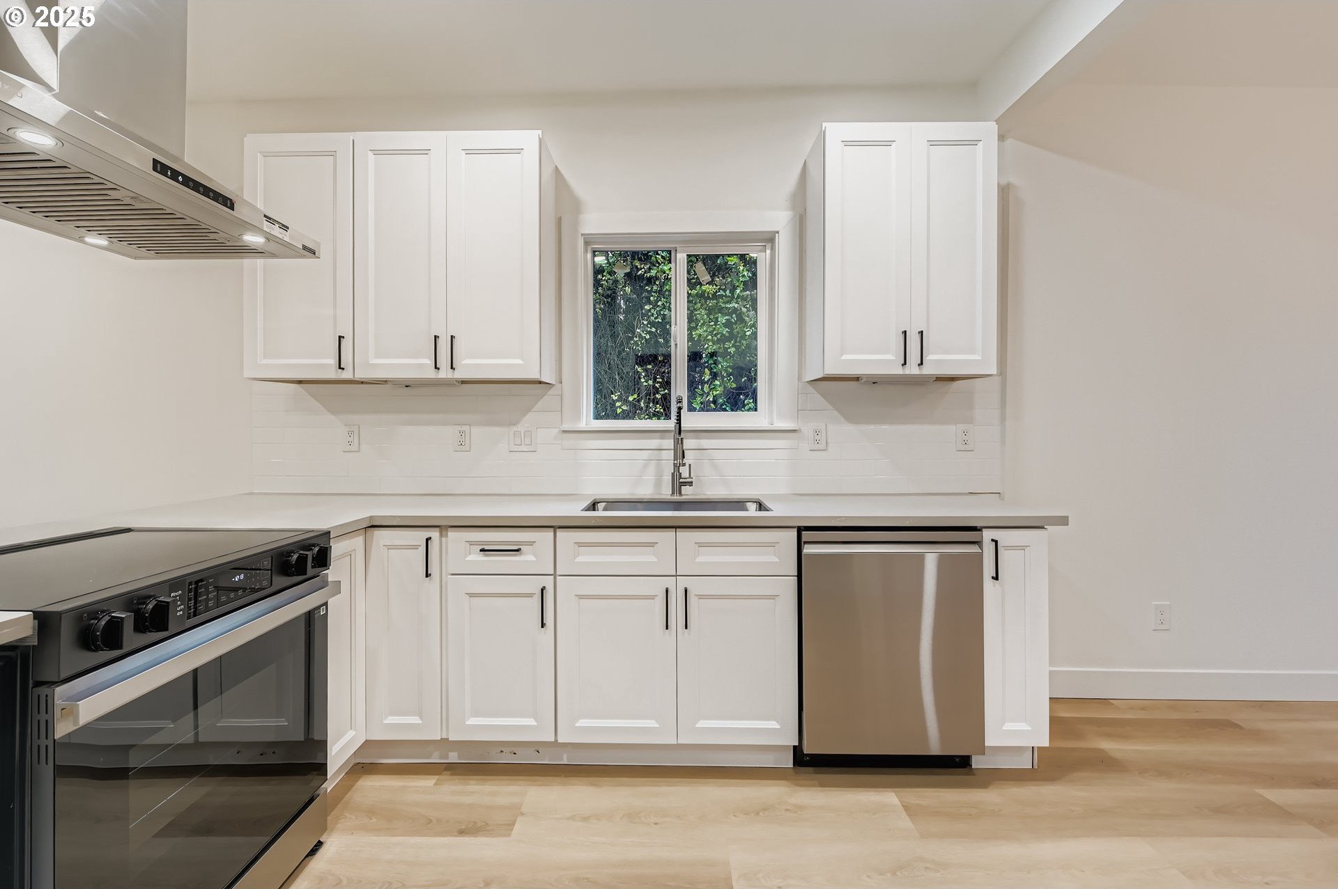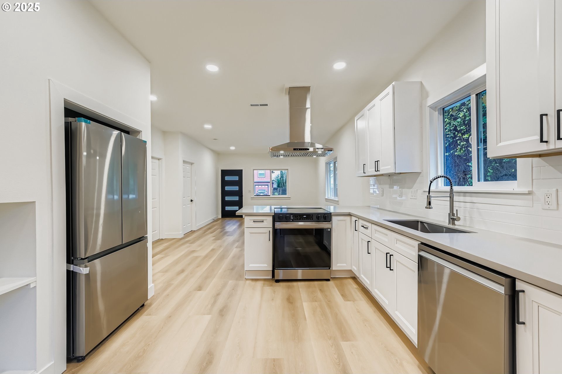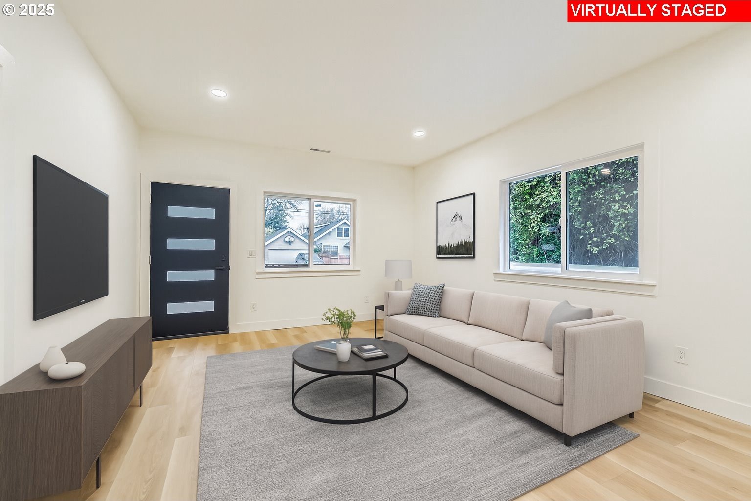OPEN SATURDAY 12-2....Three bedrooms. One bath. Zero projects. This Parkrose home was taken down to the studs and rebuilt so you get the charm without inheriting someone else's "quirks."...New plumbing. New electrical. New roof. New furnace, AC, water heater, appliances. New everything where it matters....Wood-tones luxury vinyl planks in the main living areas, tile in the bath, quartz counters and an eating bar that actually fits more than a cereal bowl....The layout gives you options instead of arguments. A large front living room that can double as living plus dining. A second space behind the kitchen that works as a dining room, office, or "I-need-quiet" zone....And the upper level is a surprisingly generous room that can be a primary suite, bonus room, game room, or the office you promise you'll actually use....Long driveway for extra parking. A price point where full-stud remodels almost never show up....Clean. Updated. Flexible. Easy to live in from day one.