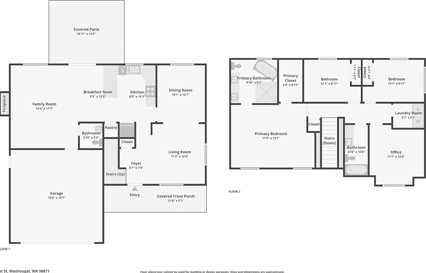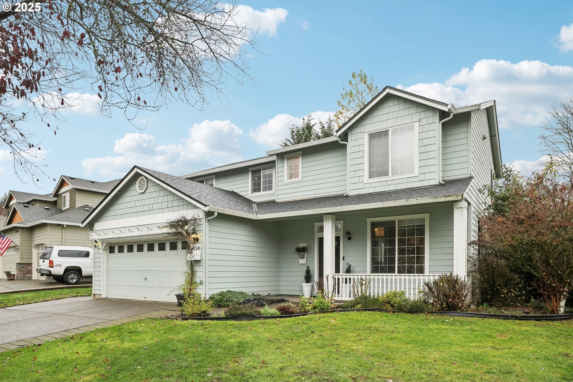 Discover this beautifully updated Washougal home on a desirable corner lot at the gateway to the breathtaking Columbia River Gorge. Enjoy extensive upgrades throughout, including new paint, trim, laminate flooring, quartz kitchen counters, stainless steel appliances and a stylish kitchen backsplash added in 2017. A durable Alumawood covered porch was installed in 2019 and carries a 10-year warranty. Major systems have been refreshed as well, with a new water heater (2021), heat pump/AC (2022), and a brand-new roof in 2023 with a 50 year transferrable warranty! The spacious layout includes a bonus room, built-ins, double-pane vinyl windows, and a recently remodeled primary bathroom completed in 2024, showcasing a walk-in shower and modern finishes. Step outside to a fully fenced yard and a covered patio, perfect for relaxing or entertaining. Neighborhood amenities include a community clubhouse with high-speed internet, indoor pool, gym, sauna, hot-tub, playground, and more. Situated close to the Orchard Hills Golf & Country Club and all the Gorge has to offer, make this beautiful home yours today!