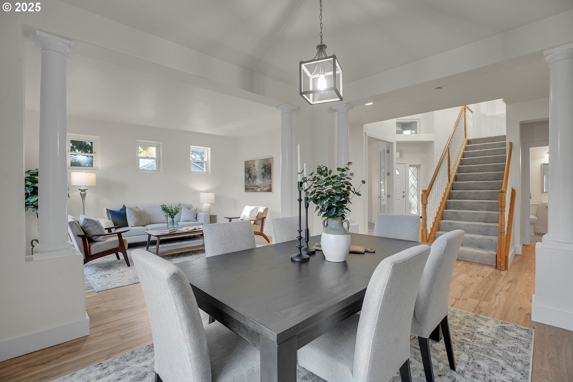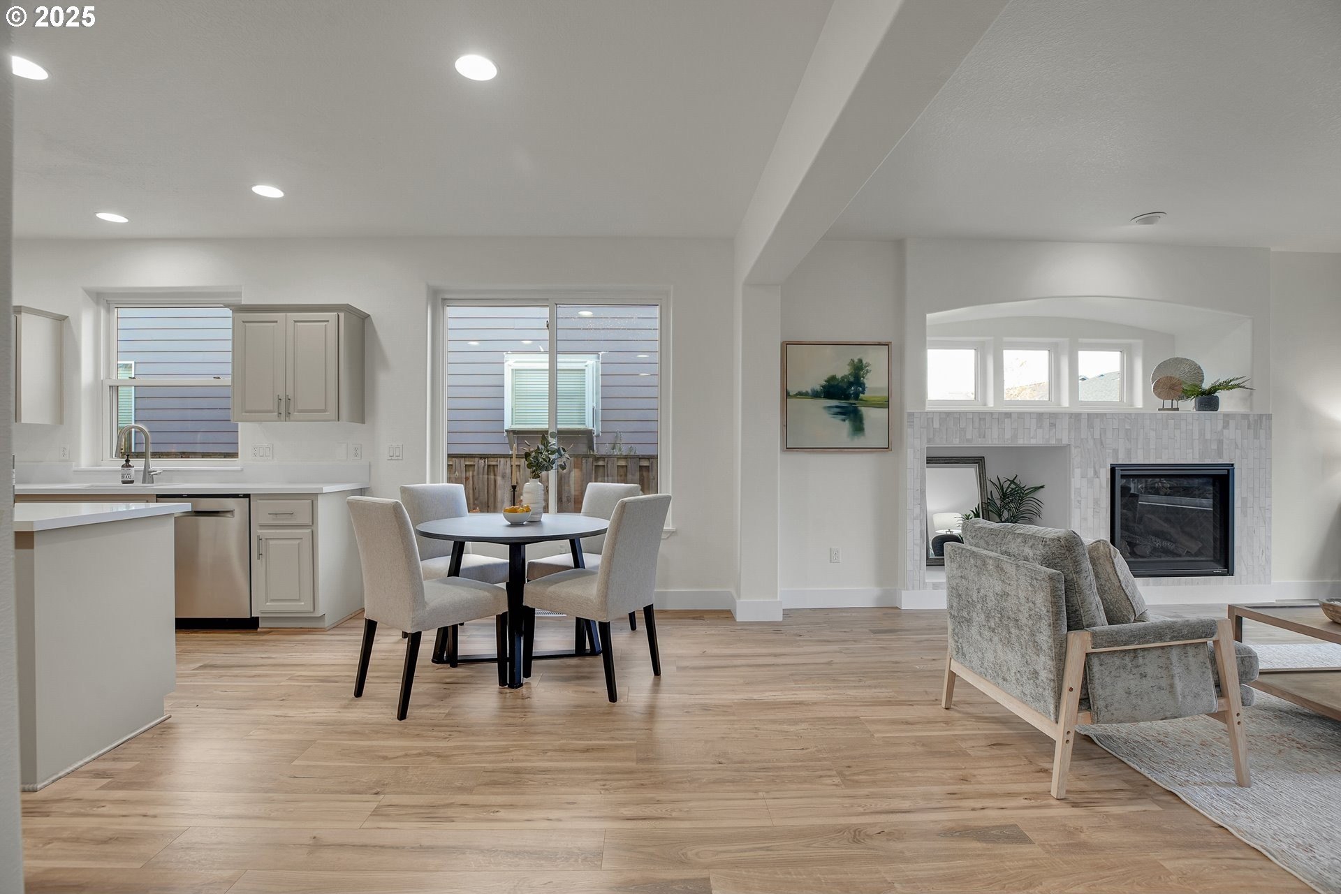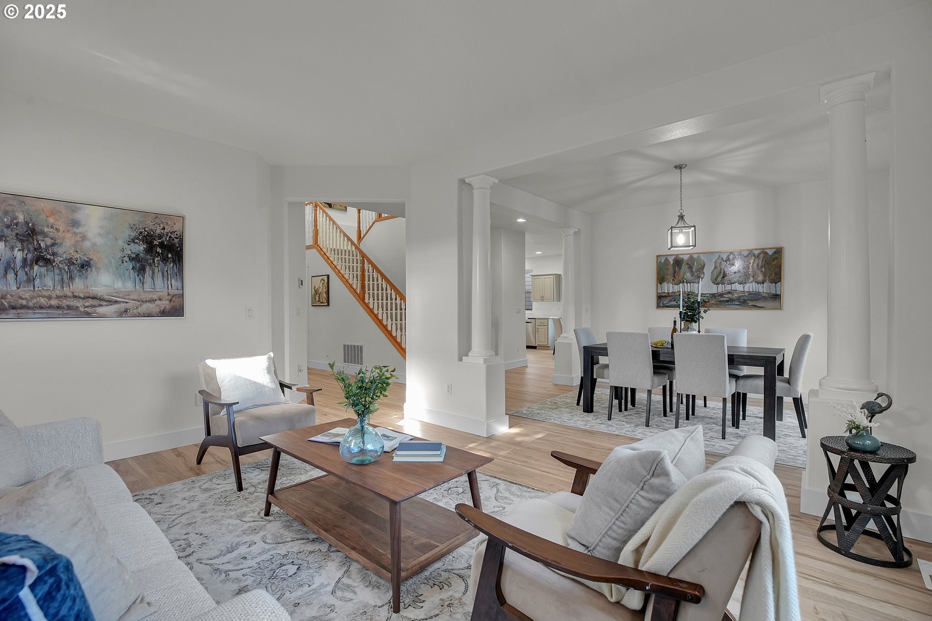 Living with Exceptional Style in Woodhaven! This stunning 4-bedroom, 2.5-bath home with a den, bonus room, & 3-car garage offers 3,078 sqft of beautifully designed living space - harmonizing sophistication & comfort in one of Sherwood's most desired neighborhoods. Step into a bright, airy foyer with soaring ceilings & discover a thoughtfully designed layout perfect for modern living. The home has been completely remodeled, featuring luxury vinyl plank flooring throughout the main level, new carpet upstairs, interior paint, new molding, & much more. The main-level den is timeless, with French doors providing the ideal space for a home office. The family room is filled with natural light pouring in, creating a warm & inviting space for entertaining or everyday living. Enjoy gatherings in the formal dining room, framed with classic pillars that add a touch of elegance. The newly renovated gourmet kitchen is a chef's delight - boasting quartz countertops, modernized cabinets, newer appliances, a pantry, custom hardware, and a sunny breakfast nook. It flows seamlessly into the great room, making it perfect for casual get-togethers & family time. Unwind in the spacious living room, featuring a new gas fireplace with custom tile surround & large windows that fill the space with warmth & natural light. The grand primary suite offers a serene escape with vaulted ceilings, a large walk-in closet with custom built-ins and designer-inspired details, while the remodeled primary bathroom showcases dual sinks, a curbless walk-in shower with custom tile, & a soaking tub - your own private spa retreat. Upstairs, you'll find 3 additional sizable bedrooms and a versatile bonus room, perfect for a playroom or home gym. Outside, the beautifully landscaped yard, teak deck,& stone fireplace provide an outdoor enjoyment for entertaining guests or relaxing. Located within a thriving, highly sought-after community, with top-rated schools, parks, & premier amenities.