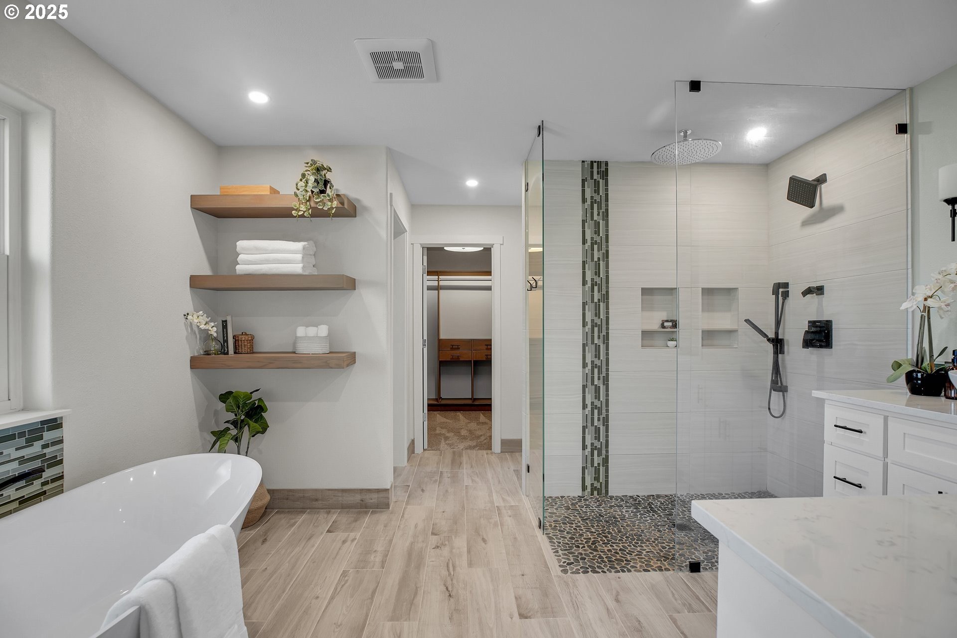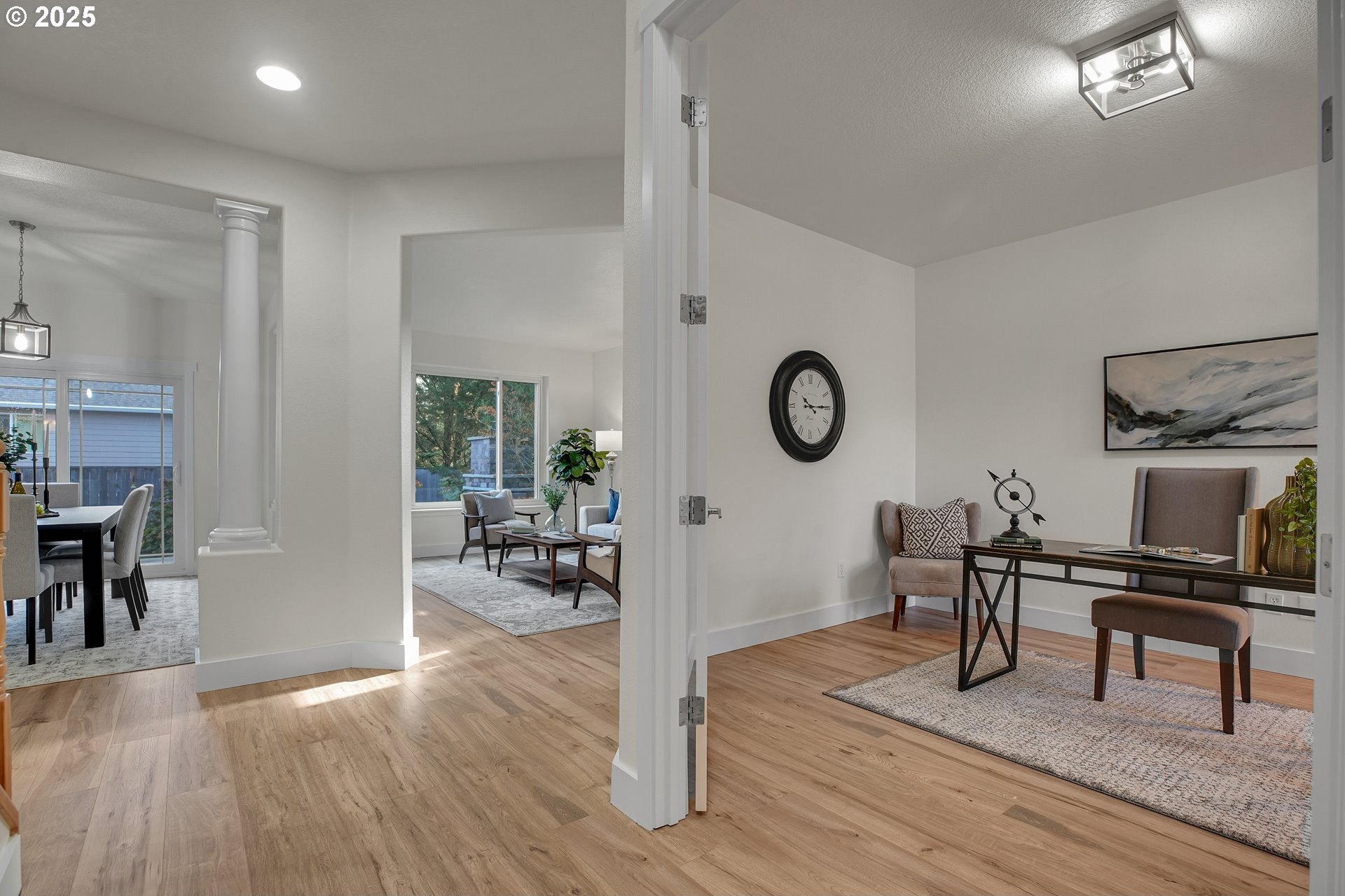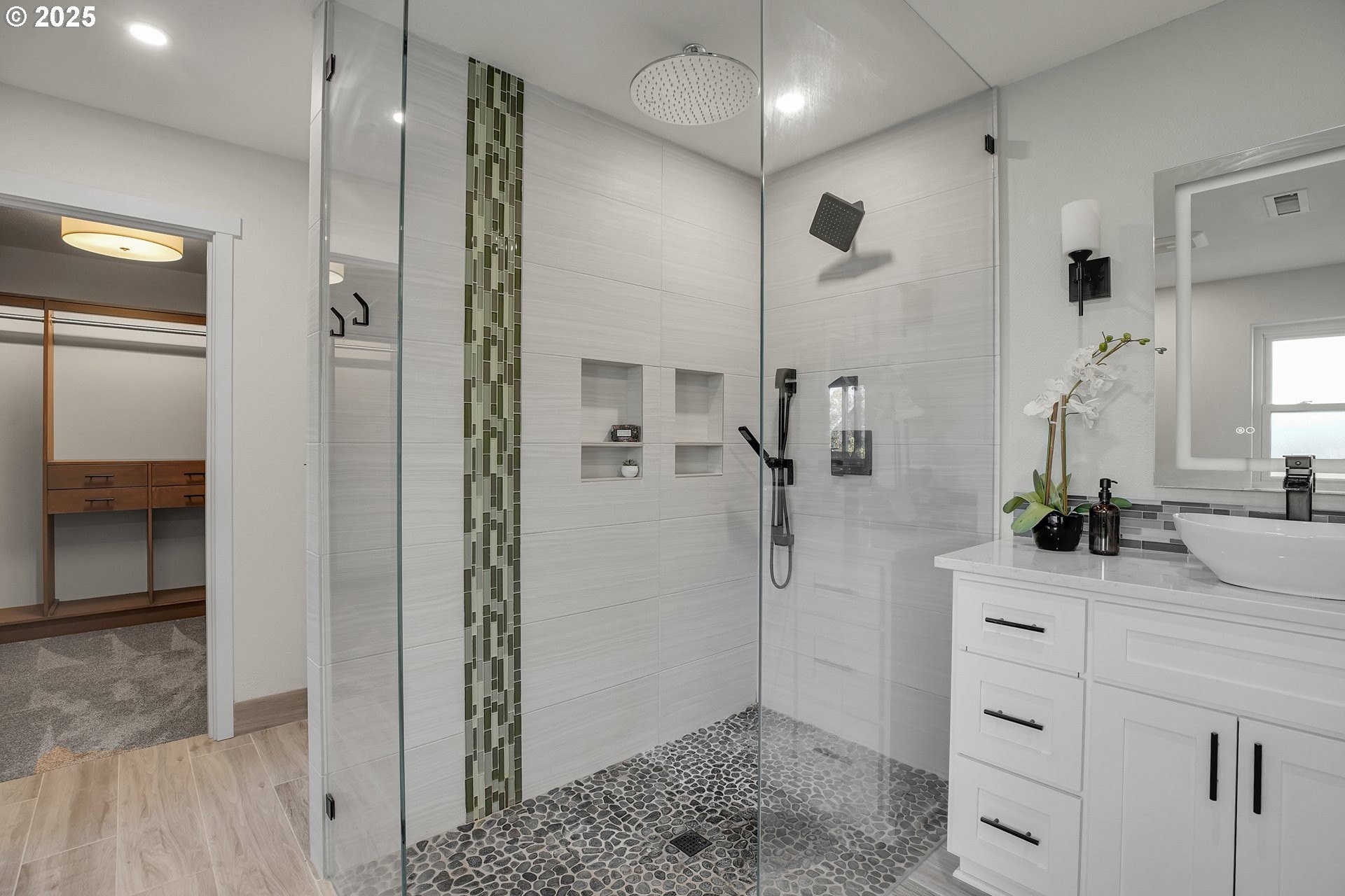 Living with Exceptional Style in Woodhaven! This stunning 4-bedroom, 2.5-bath home with a den, bonus room, & 3-car garage offers 3,078 sqft of beautifully designed living space - harmonizing sophistication & comfort in one of Sherwood's most desired neighborhoods. Step into a bright, airy foyer with soaring ceilings & discover a thoughtfully designed layout perfect for modern living. The home has been completely remodeled, featuring luxury vinyl plank flooring throughout the main level, new carpet upstairs, interior paint, new molding, & much more. The main-level den is timeless, with French doors providing the ideal space for a home office. The family room is filled with natural light pouring in, creating a warm & inviting space for entertaining or everyday living. Enjoy gatherings in the formal dining room, framed with classic pillars that add a touch of elegance. The newly renovated gourmet kitchen is a chef's delight - boasting quartz countertops, modernized cabinets, newer appliances, a pantry, custom hardware, and a sunny breakfast nook. It flows seamlessly into the great room, making it perfect for casual get-togethers & family time. Unwind in the spacious living room, featuring a new gas fireplace with custom tile surround & large windows that fill the space with warmth & natural light. The grand primary suite offers a serene escape with vaulted ceilings, a large walk-in closet with custom built-ins and designer-inspired details, while the remodeled primary bathroom showcases dual sinks, a curbless walk-in shower with custom tile, & a soaking tub - your own private spa retreat. Upstairs, you'll find 3 additional sizable bedrooms and a versatile bonus room, perfect for a playroom or home gym. Outside, the beautifully landscaped yard, teak deck,& stone fireplace provide an outdoor enjoyment for entertaining guests or relaxing. Located within a thriving, highly sought-after community, with top-rated schools, parks, & premier amenities.