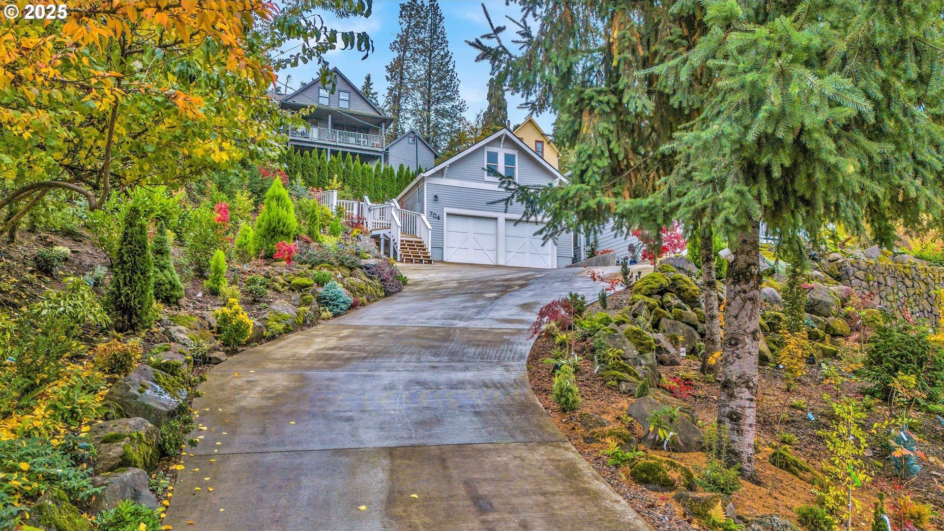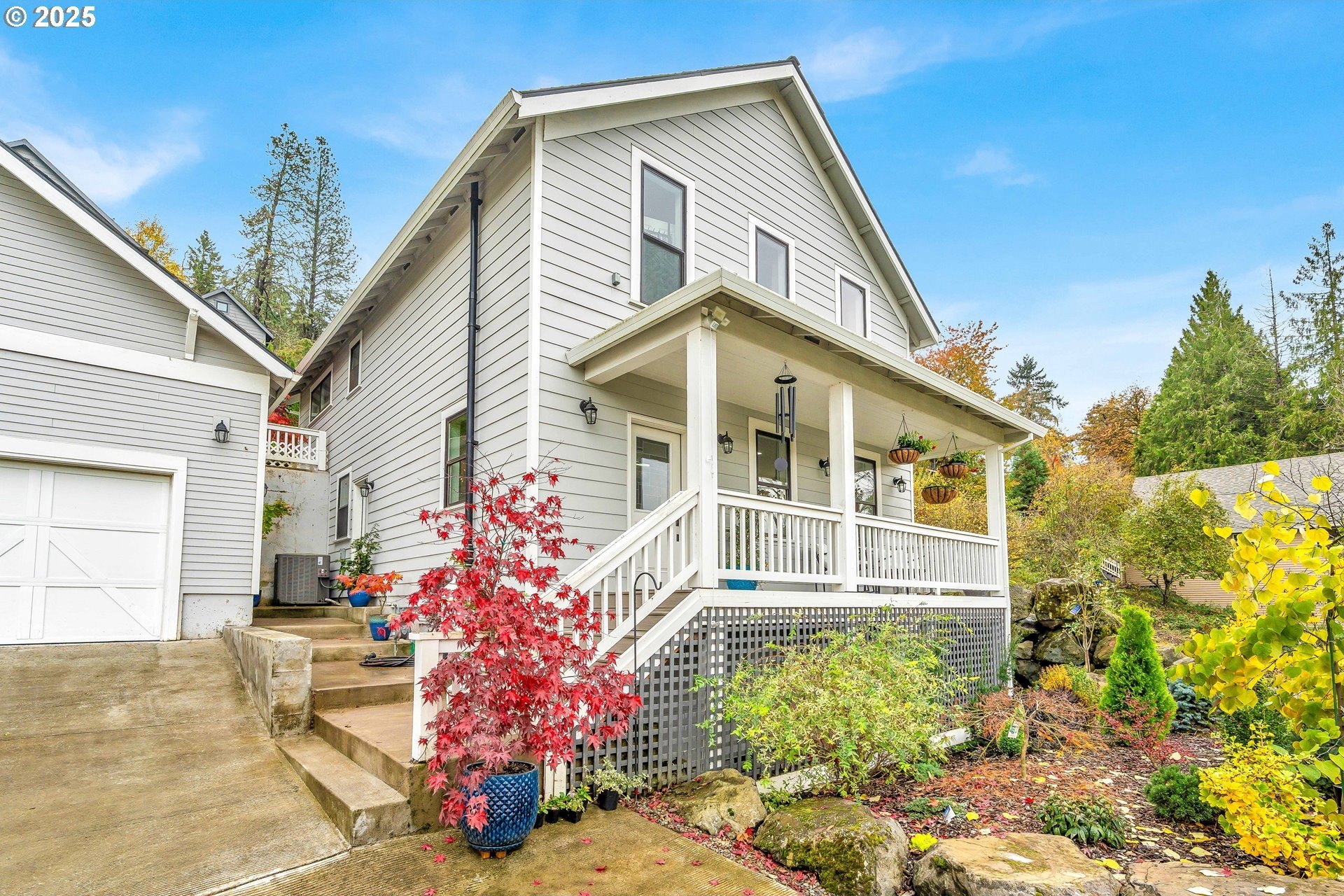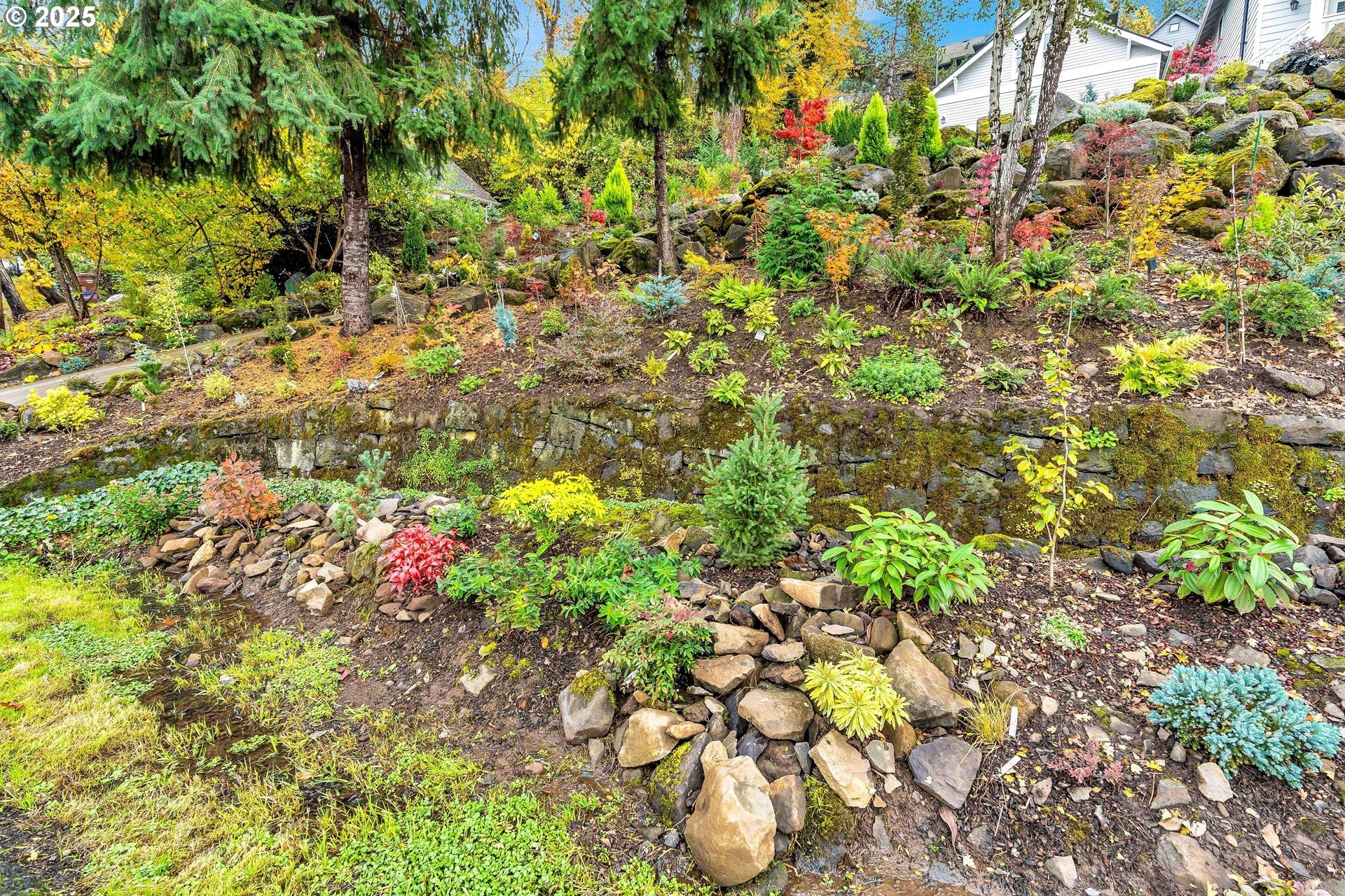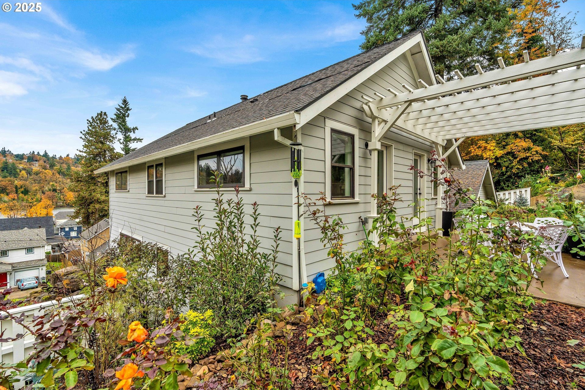 Stunning Timber-Frame Home with River Views and Lush GardensPerched on a serene hillside, this beautifully crafted two-level home plus attic offers a perfect blend of natural beauty, privacy, and timeless design. Featuring 3 bedrooms and 2.5 baths, the home showcases laminate flooring throughout and vaulted ceilings in every bedroom. The primary suite includes a ceiling fan, walk-in closet, and ensuite bath with double sinks and a walk-in shower, while the second bedroom also enjoys a ceiling fan and soaring ceilings.The open-concept living, dining, and kitchen areas are filled with natural light from oversized windows, highlighting the home's stainless steel appliances, kitchen island, and traditional timber-frame craftsmanship. Outside, a gorgeous garden surrounds the home with over 500 trees and shrubs, some of which were imported, creating a private, park-like setting with a fantastic view of the river. A list of the trees is available upon request. The oversized garage provides ample space for a workshop or potential living area above. Garage floor is professionally epoxied and cabinets professionally installed. The property had AC installed (2.5 ton Lennox) in 2023. A truly special property offering beauty, privacy, and craftsmanship in every detail.
