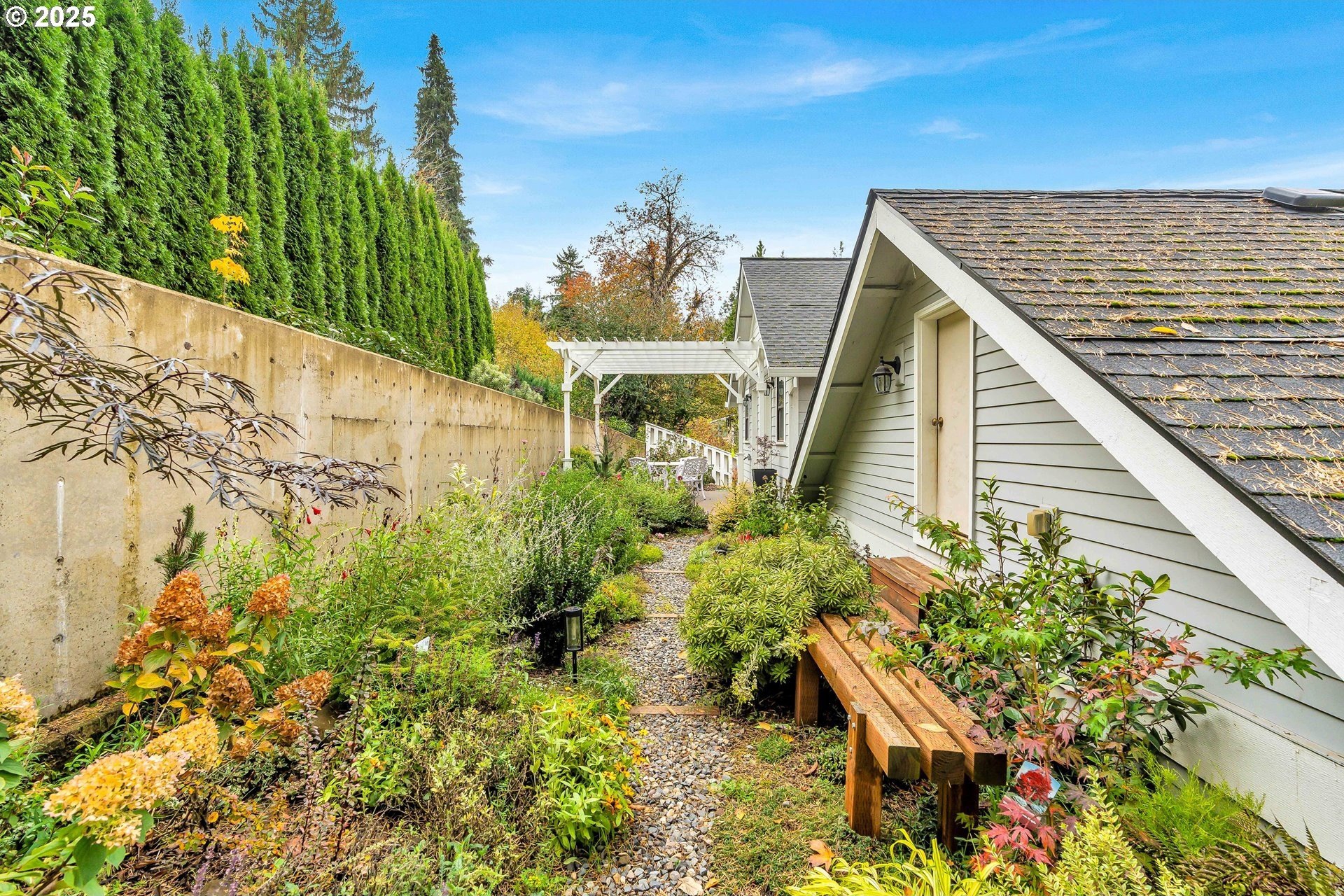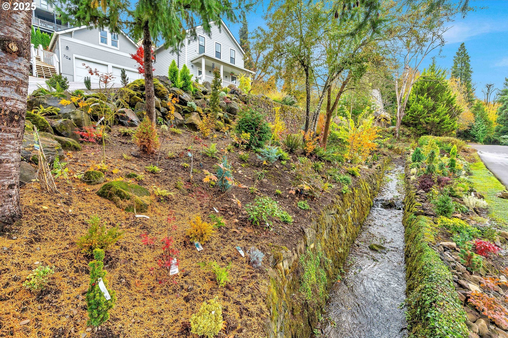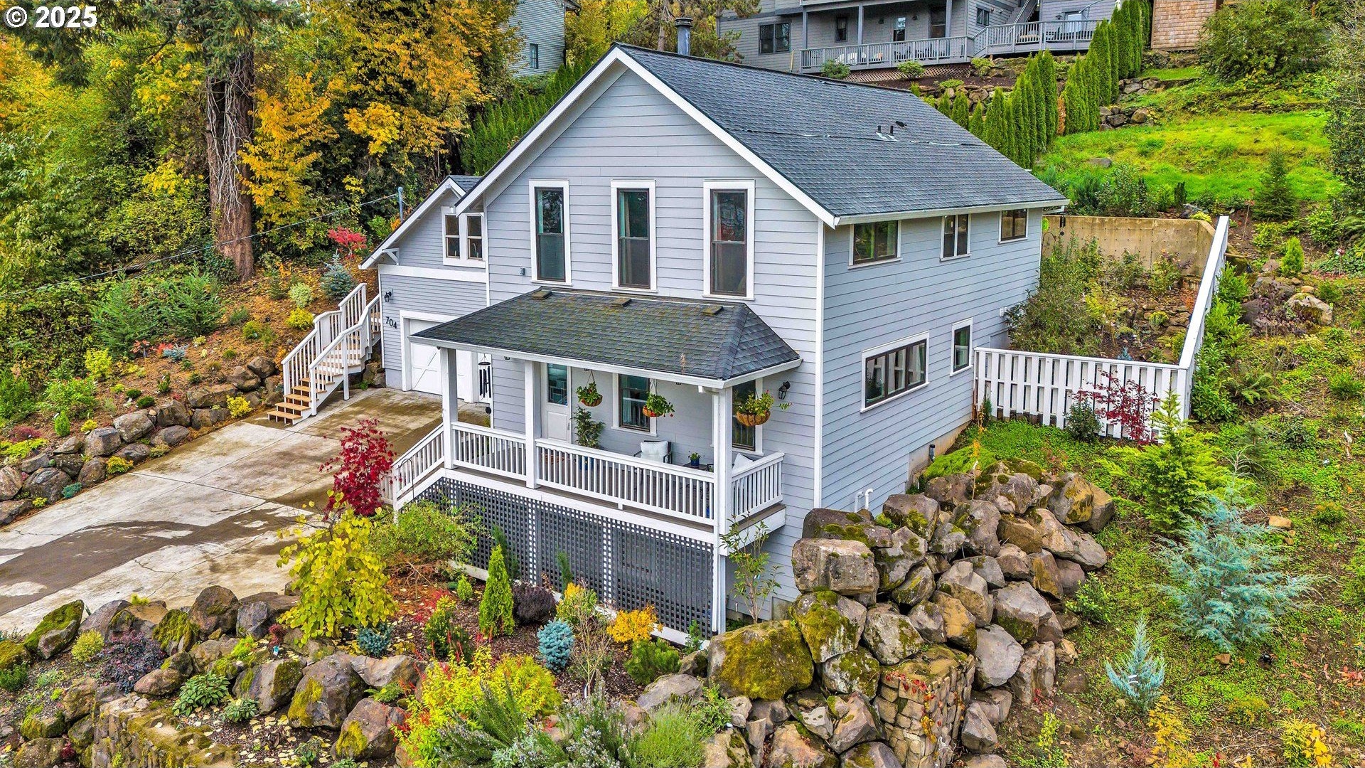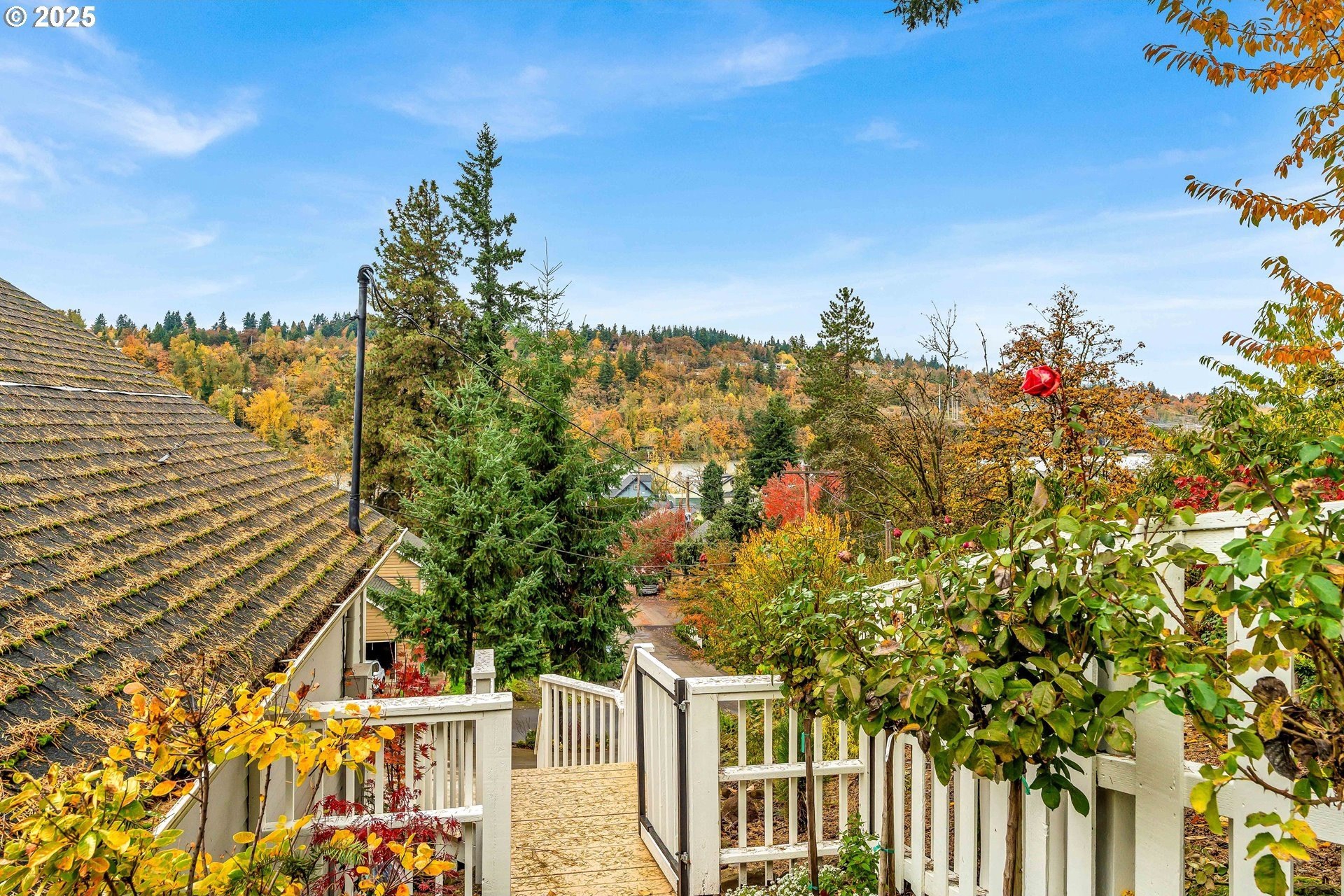 Stunning Timber-Frame Home with River Views and Lush GardensPerched on a serene hillside, this beautifully crafted two-level home plus attic offers a perfect blend of natural beauty, privacy, and timeless design. Featuring 3 bedrooms and 2.5 baths, the home showcases laminate flooring throughout and vaulted ceilings in every bedroom. The primary suite includes a ceiling fan, walk-in closet, and ensuite bath with double sinks and a walk-in shower, while the second bedroom also enjoys a ceiling fan and soaring ceilings.The open-concept living, dining, and kitchen areas are filled with natural light from oversized windows, highlighting the home's stainless steel appliances, kitchen island, and traditional timber-frame craftsmanship. Outside, a gorgeous garden surrounds the home with over 500 trees and shrubs, some of which were imported, creating a private, park-like setting with a fantastic view of the river. A list of the trees is available upon request. The oversized garage provides ample space for a workshop or potential living area above. Garage floor is professionally epoxied and cabinets professionally installed. The property had AC installed (2.5 ton Lennox) in 2023. A truly special property offering beauty, privacy, and craftsmanship in every detail.