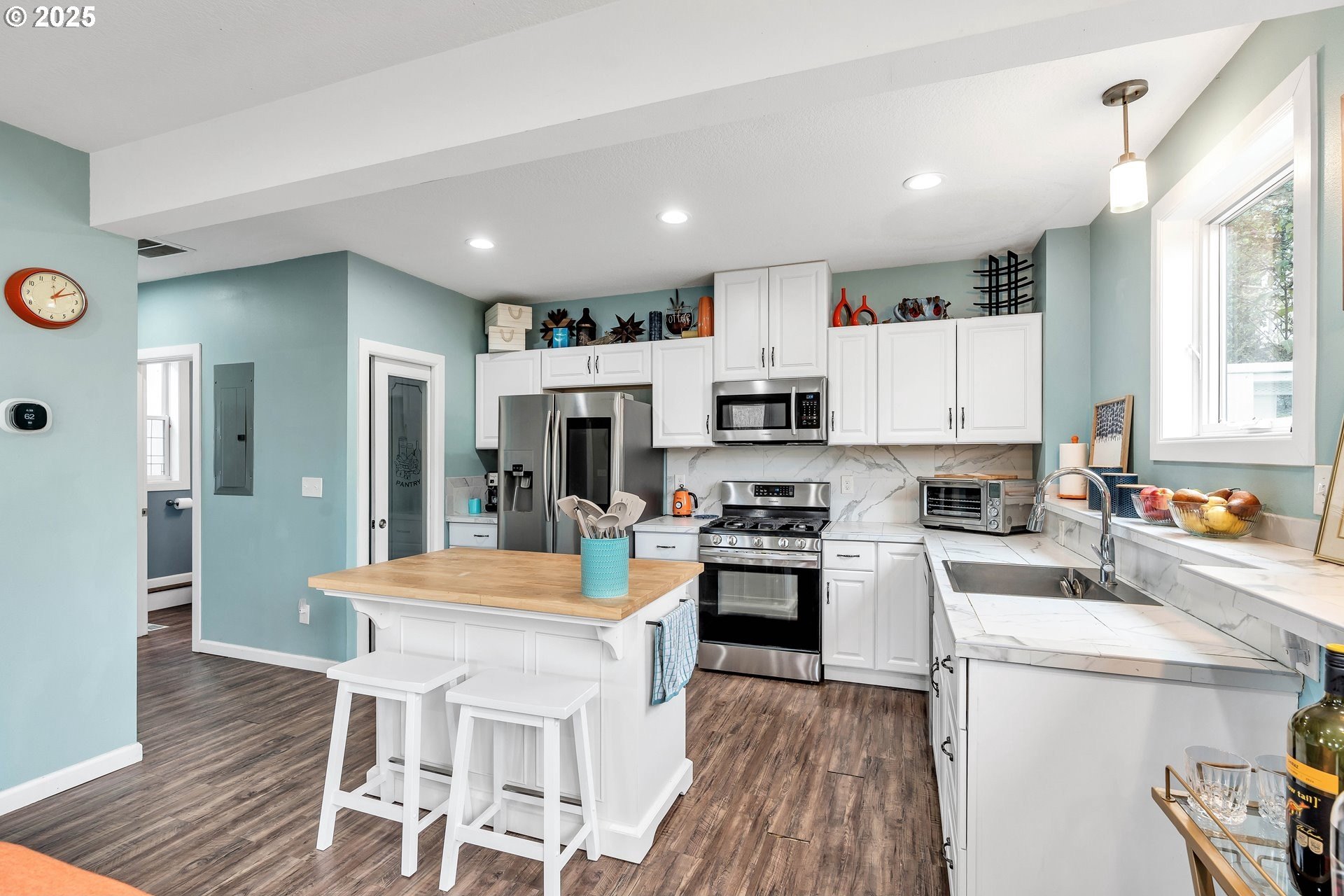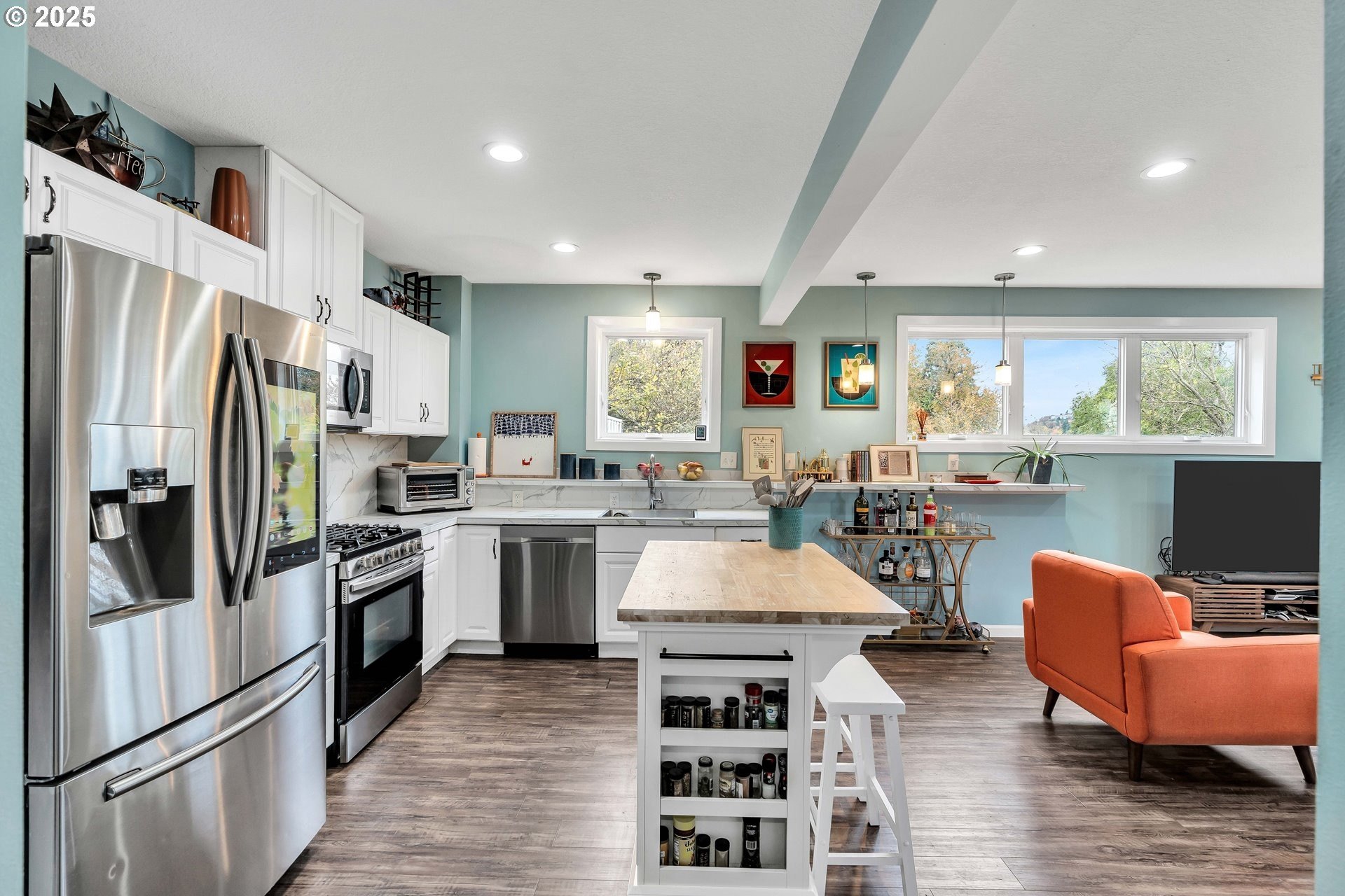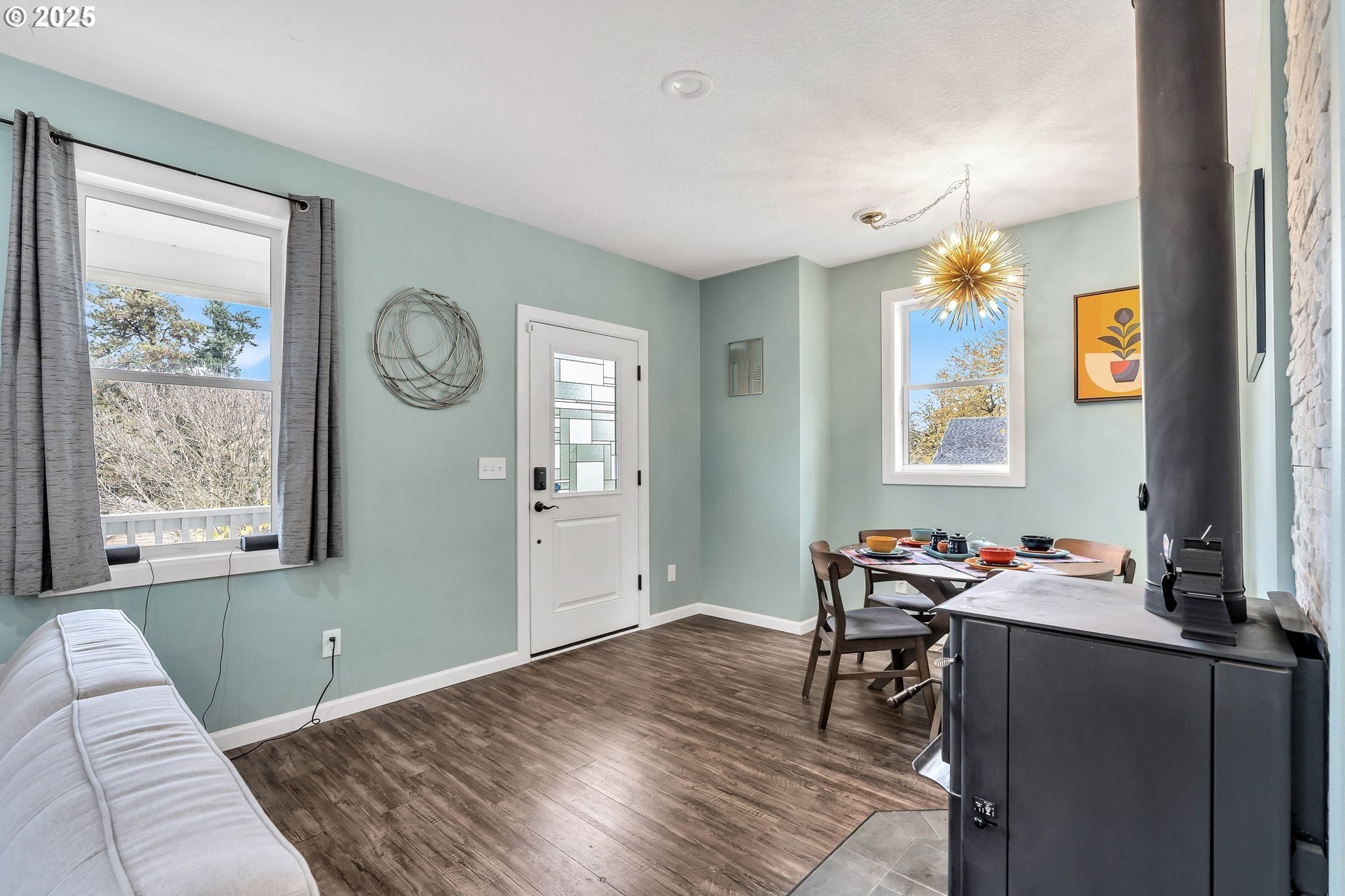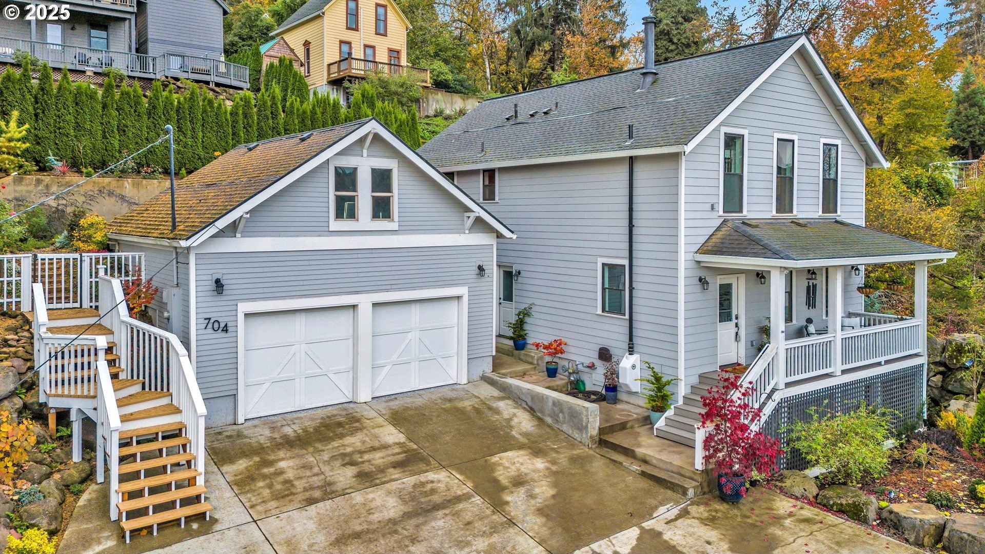 Stunning Timber-Frame Home with River Views and Lush GardensPerched on a serene hillside, this beautifully crafted two-level home plus attic offers a perfect blend of natural beauty, privacy, and timeless design. Featuring 3 bedrooms and 2.5 baths, the home showcases laminate flooring throughout and vaulted ceilings in every bedroom. The primary suite includes a ceiling fan, walk-in closet, and ensuite bath with double sinks and a walk-in shower, while the second bedroom also enjoys a ceiling fan and soaring ceilings.The open-concept living, dining, and kitchen areas are filled with natural light from oversized windows, highlighting the home's stainless steel appliances, kitchen island, and traditional timber-frame craftsmanship. Outside, a gorgeous garden surrounds the home with over 500 trees and shrubs, some of which were imported, creating a private, park-like setting with a fantastic view of the river. A list of the trees is available upon request. The oversized garage provides ample space for a workshop or potential living area above. Garage floor is professionally epoxied and cabinets professionally installed. The property had AC installed (2.5 ton Lennox) in 2023. A truly special property offering beauty, privacy, and craftsmanship in every detail.