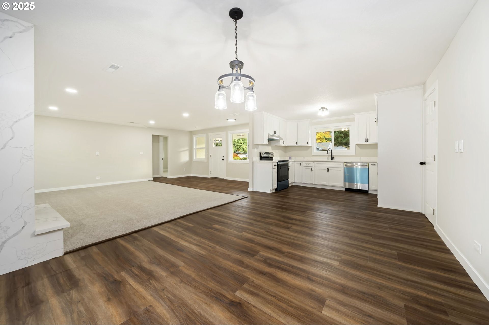 Stylish, Spacious & Full of Possibilities! This beautifully updated home is the ultimate win-win-perfect for multi-generational living, guest quarters, or even extra income potential! With two kitchens, two laundry hookups, and separate garage entrances, this flexible floor plan offers the possibility of true dual-living convenience. The lower level features a move-in ready studio apartment, ideal for guests, extended family, or anything your heart desires. Whether you're seeking a private retreat, rental opportunity, or creative space, the possibilities are endless. Inside you'll fall in love with the updates throughout: new carpet, LVP flooring, fresh paint inside and out, modern lighting, quartz countertops, and a beautifully refreshed fireplace-every detail shines. Outside, enjoy a fully fenced property with ample room to park your RV, boat, or project car. This home blends comfort, versatility, and style-all in one! Don't wait-homes like this don't come around often! Buyer to do due diligence. [Home Energy Score = 5. HES Report