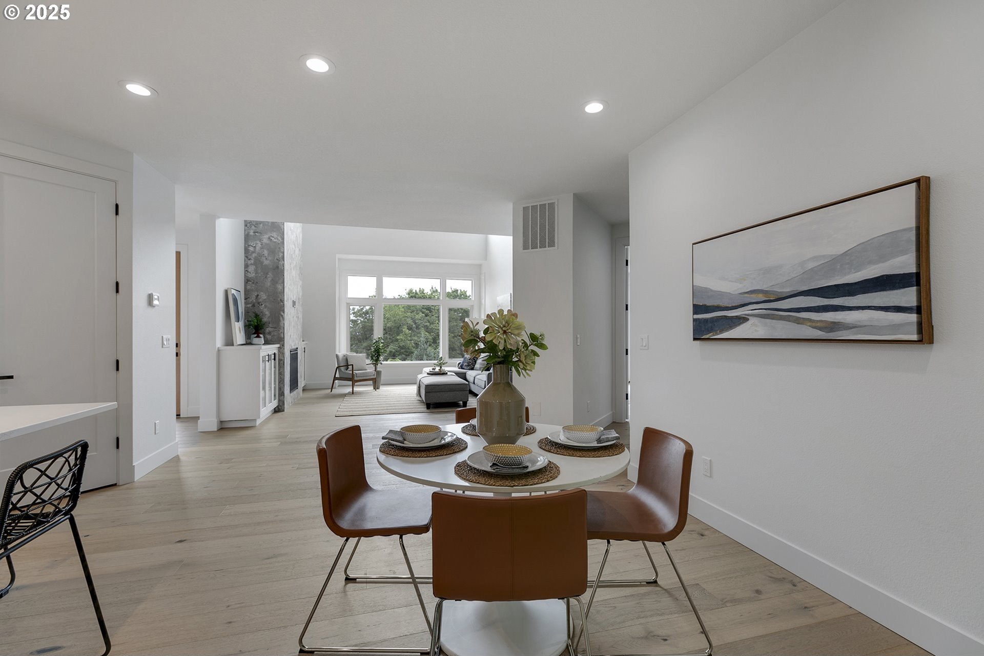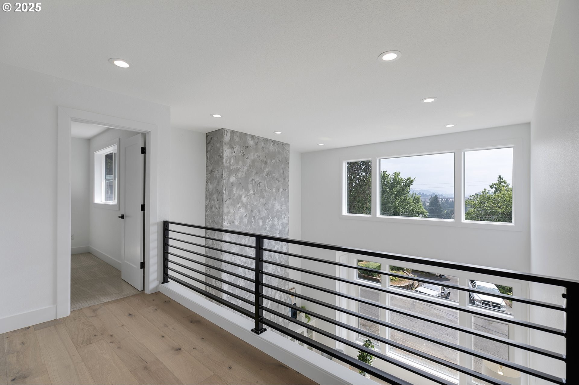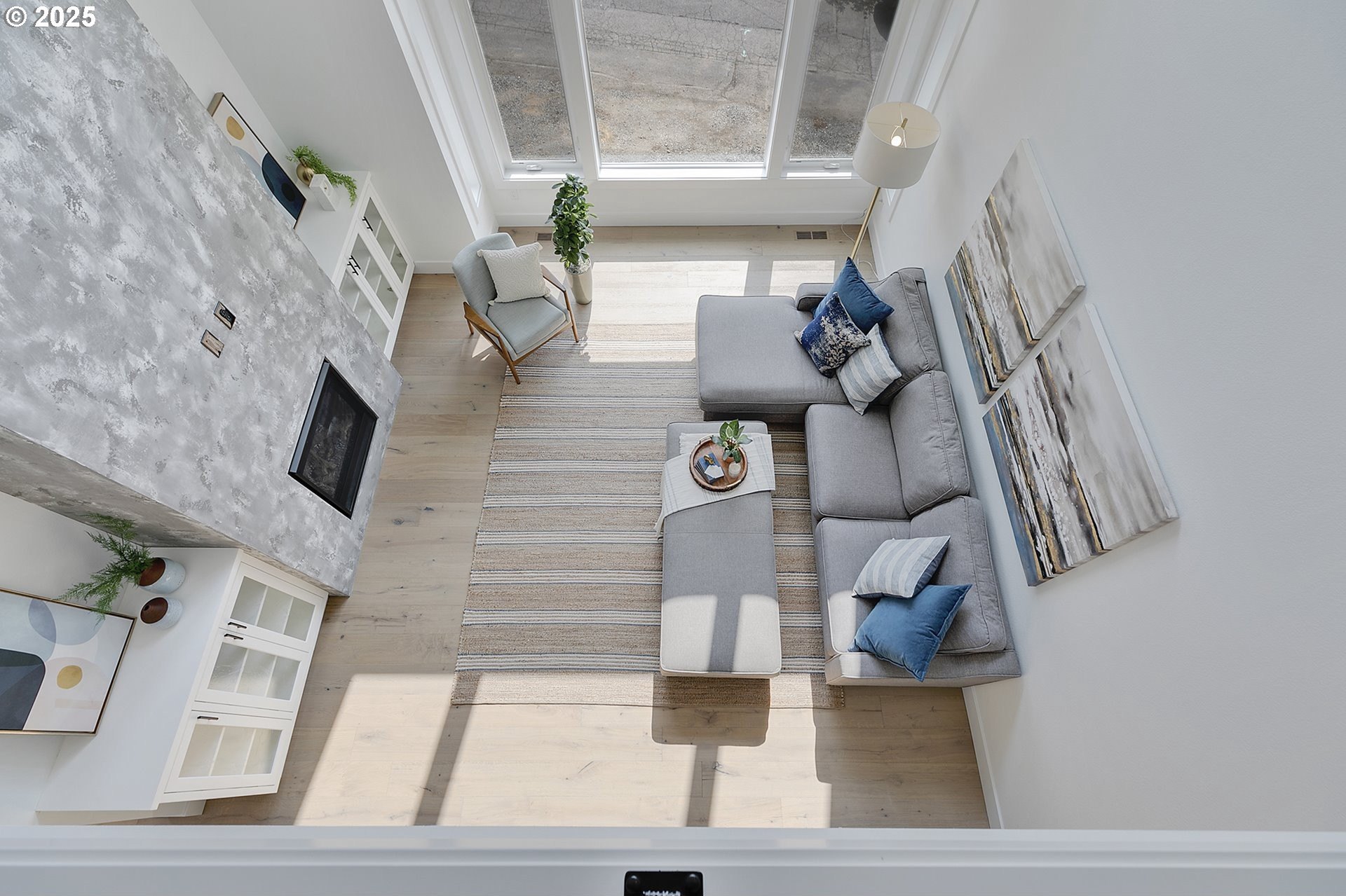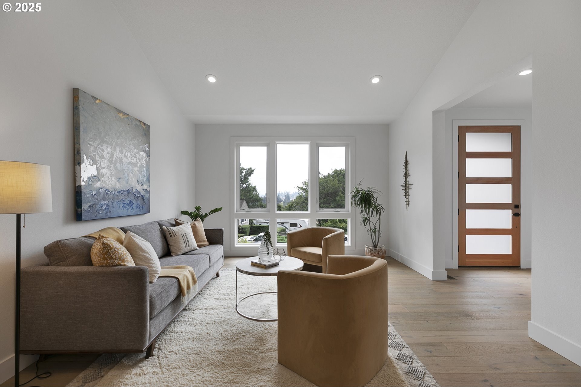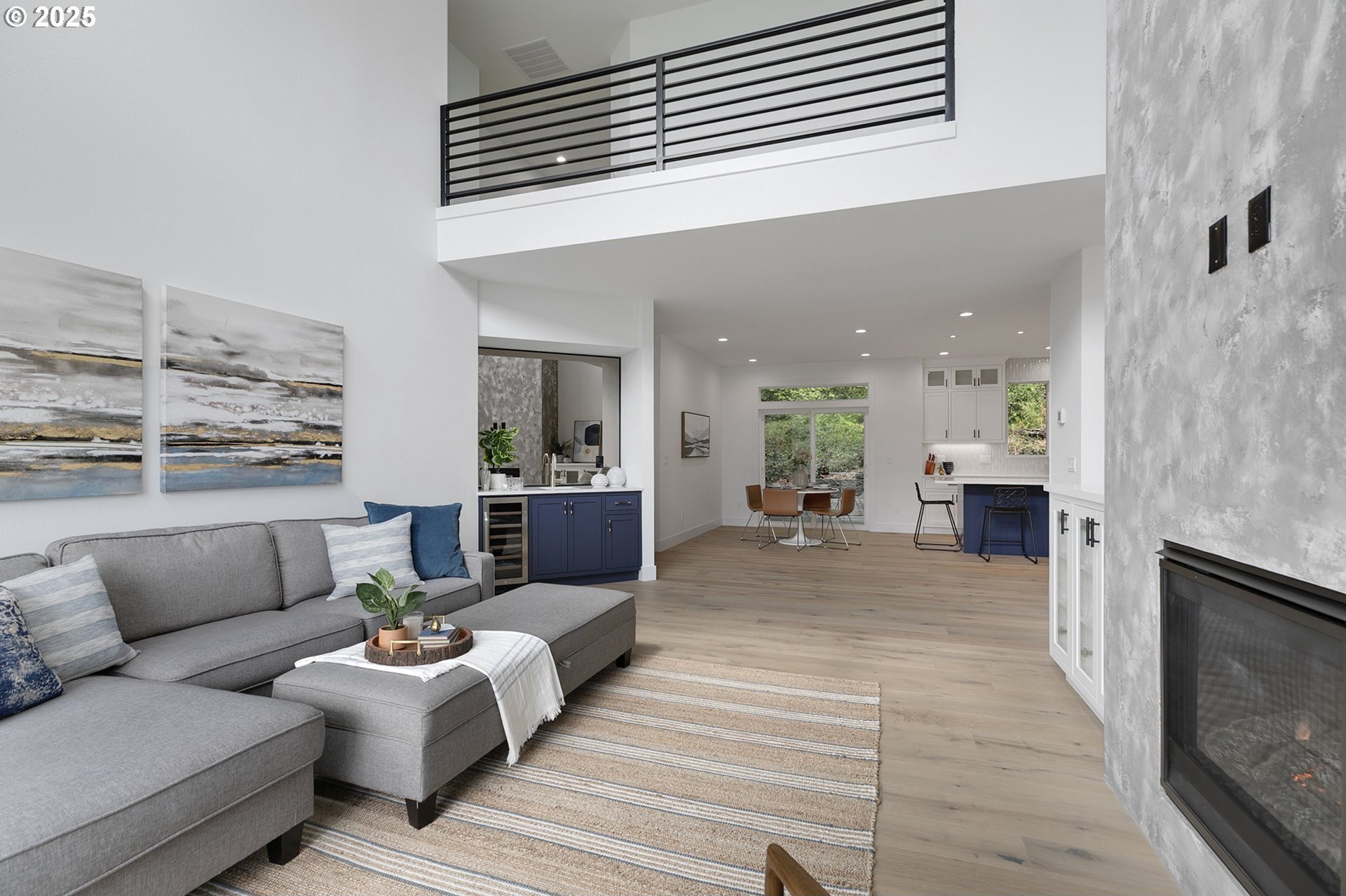 Welcome to this newly built home, perfectly situated on a quiet cul-de-sac in Portland's desirable Madison neighborhood. This outstanding custom residence masterfully blends timeless style with sustainable living. The smartly designed floor plan enhances the feeling of openness, highlighting spacious living areas flooded with natural light, soaring ceilings, wide plank hardwood floors, and a dramatic two-story gas fireplace that serves as a stunning focal point on the main floor. This level also includes a bedroom and full bathroom, perfect for guests, multi-generational living, or a home office. The gourmet kitchen boasts a large quartz island ideal for entertaining, alongside a built-in oven, microwave, refrigerator, cooktop, and pantry. Additional features on the main floor include a wet bar, family room, laundry space, and a full bathroom. Upstairs, the primary suite provides a luxurious retreat complete with a walk-in closet and a lavish bathroom featuring a soaking tub, heated floors, dual vanities, and an impressive walk-in shower. This level also hosts two more bedrooms and a shared bathroom. Enjoy private decks with stunning views accessible from both the primary bedroom and the office. Enhancing this home are central air conditioning, a three-car garage, and a generous private back patio overlooking a serene wooded area with a charming gazebo. Numerous other amenities offer unparalleled comfort and convenience. The purchase includes a one-year builder's warranty, ensuring your peace of mind.