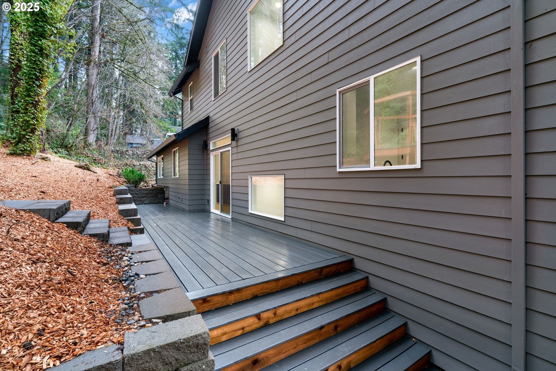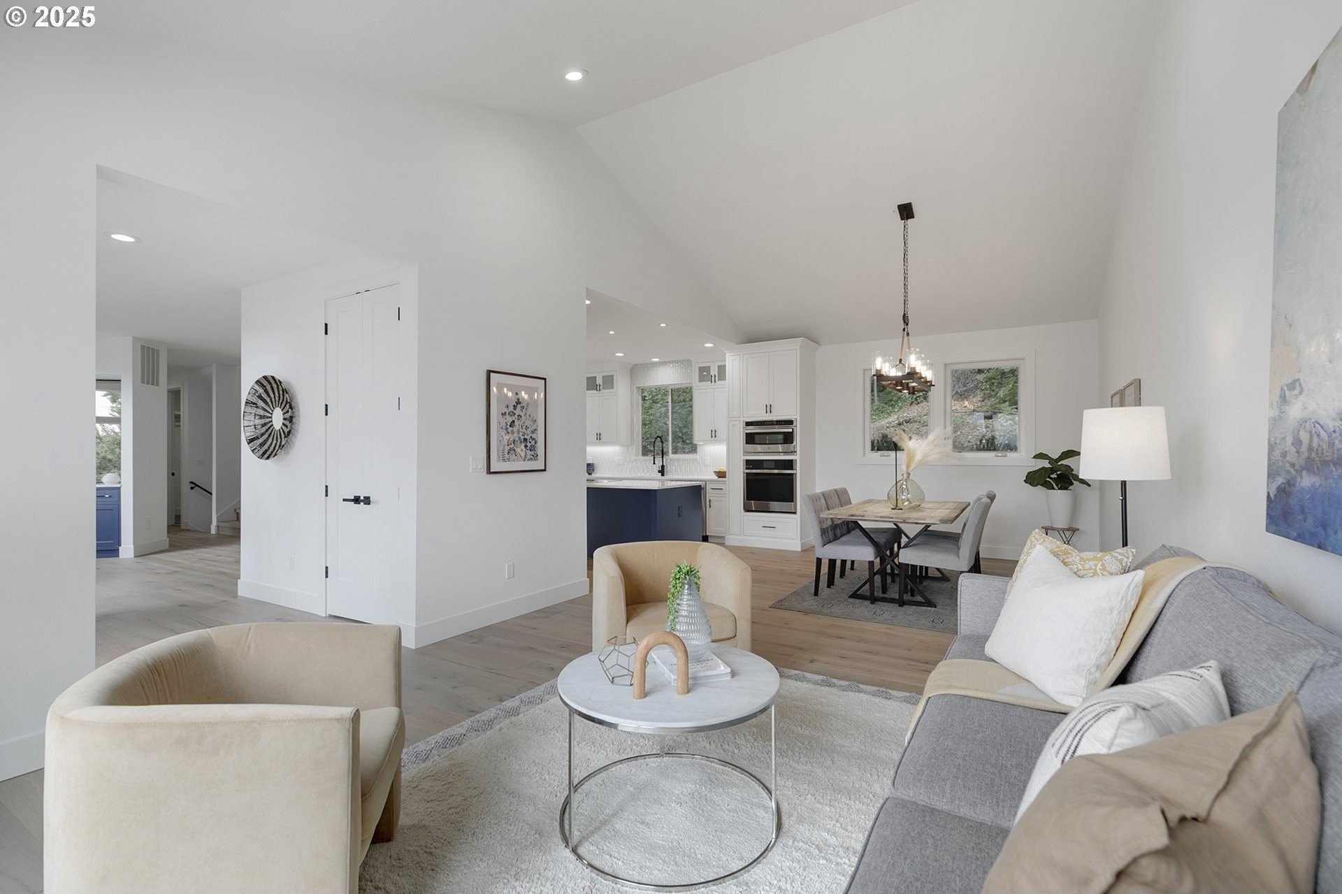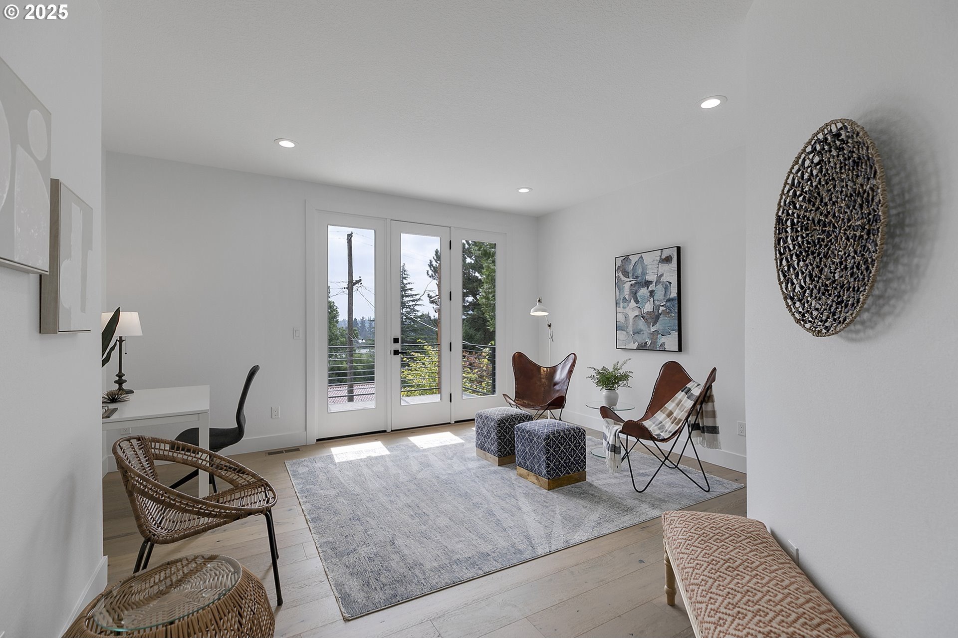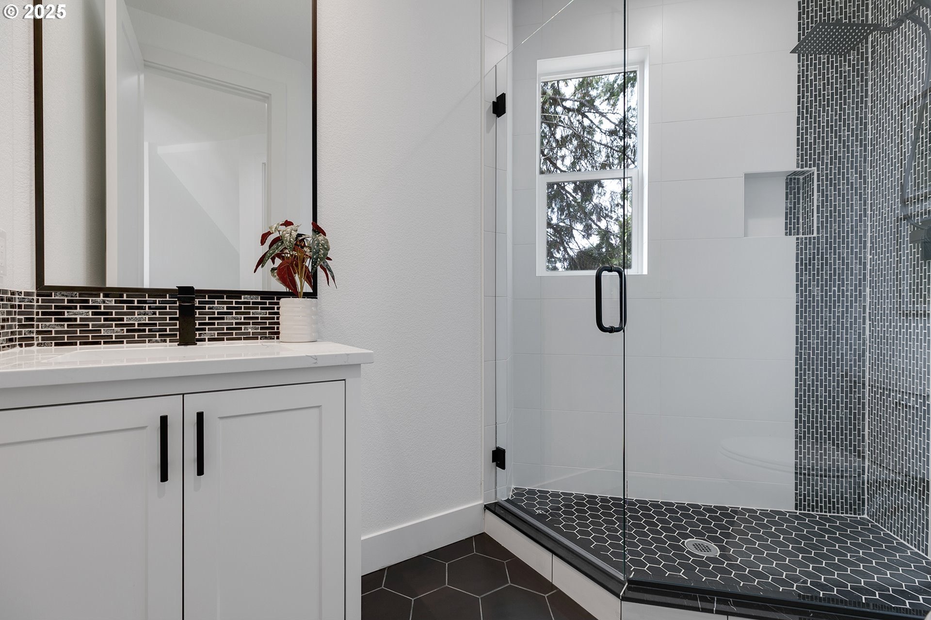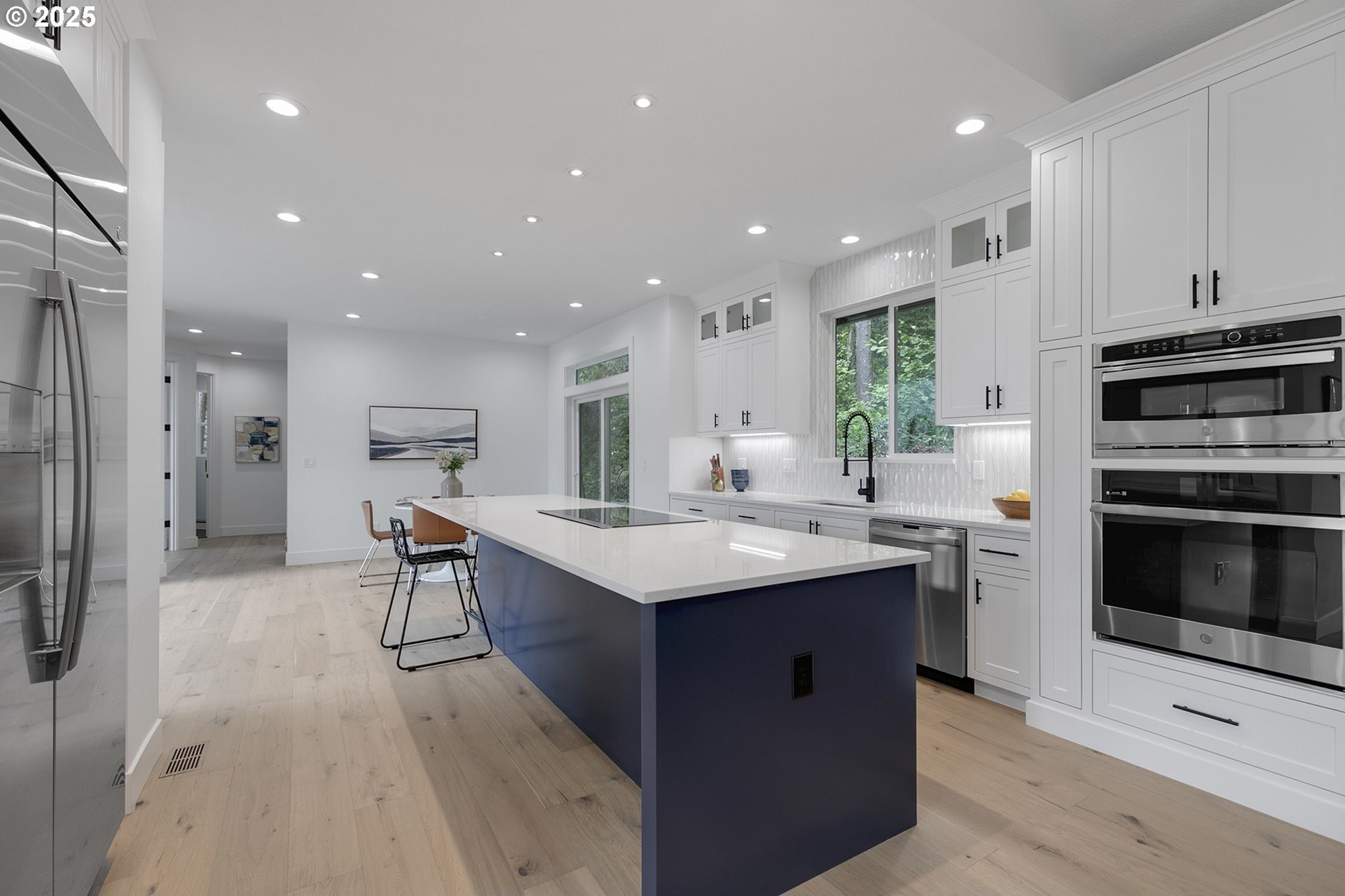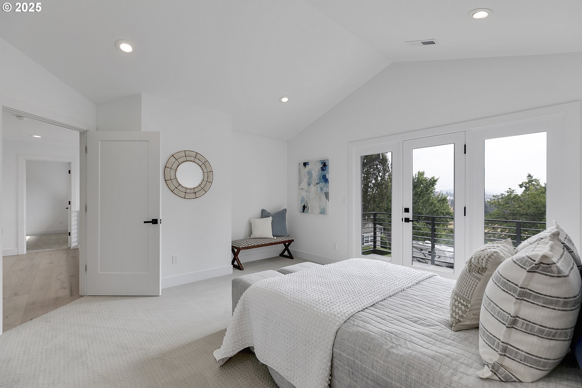 Welcome to this newly built home, perfectly situated on a quiet cul-de-sac in Portland's desirable Madison neighborhood. This outstanding custom residence masterfully blends timeless style with sustainable living. The smartly designed floor plan enhances the feeling of openness, highlighting spacious living areas flooded with natural light, soaring ceilings, wide plank hardwood floors, and a dramatic two-story gas fireplace that serves as a stunning focal point on the main floor. This level also includes a bedroom and full bathroom, perfect for guests, multi-generational living, or a home office. The gourmet kitchen boasts a large quartz island ideal for entertaining, alongside a built-in oven, microwave, refrigerator, cooktop, and pantry. Additional features on the main floor include a wet bar, family room, laundry space, and a full bathroom. Upstairs, the primary suite provides a luxurious retreat complete with a walk-in closet and a lavish bathroom featuring a soaking tub, heated floors, dual vanities, and an impressive walk-in shower. This level also hosts two more bedrooms and a shared bathroom. Enjoy private decks with stunning views accessible from both the primary bedroom and the office. Enhancing this home are central air conditioning, a three-car garage, and a generous private back patio overlooking a serene wooded area with a charming gazebo. Numerous other amenities offer unparalleled comfort and convenience. The purchase includes a one-year builder's warranty, ensuring your peace of mind.