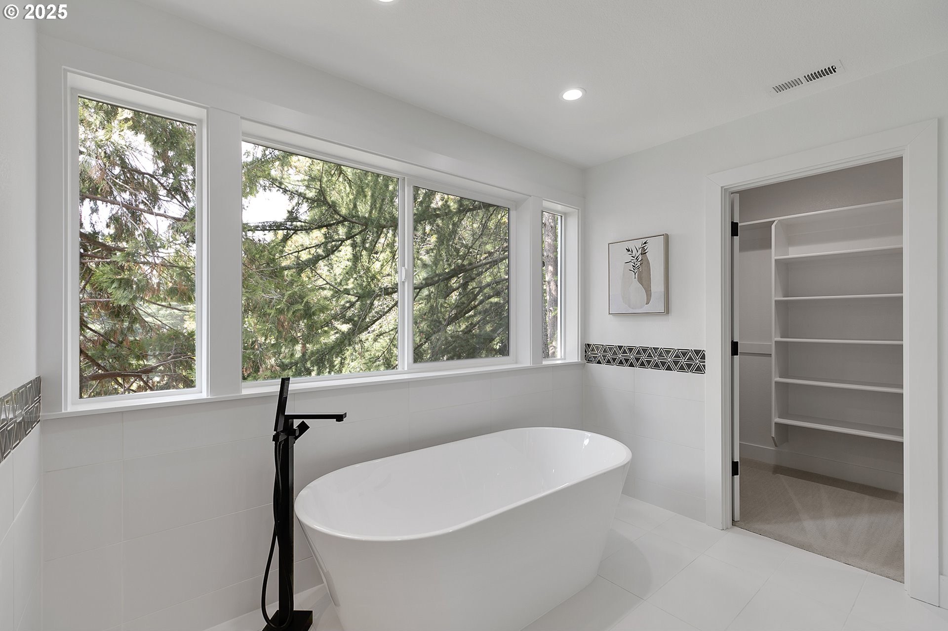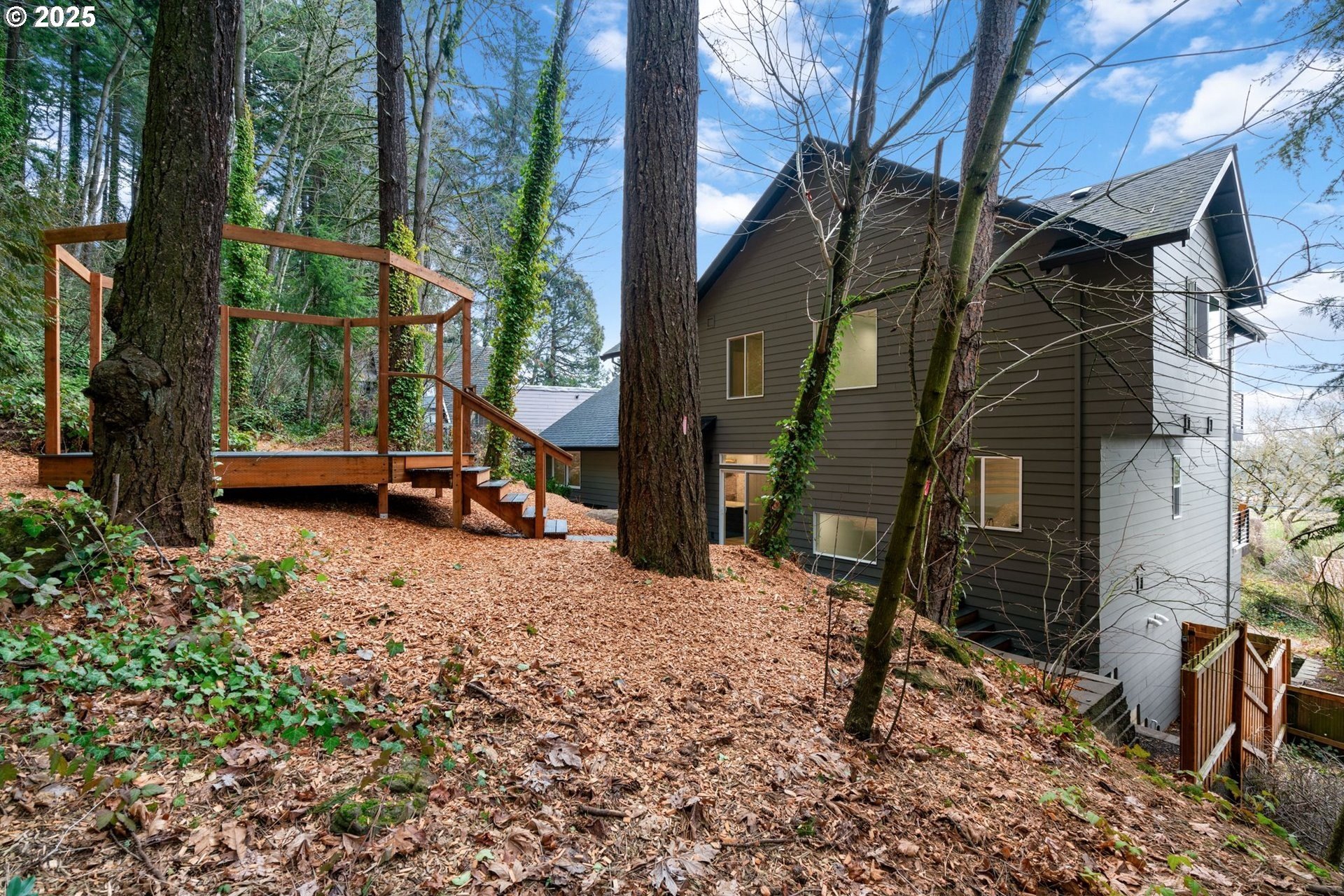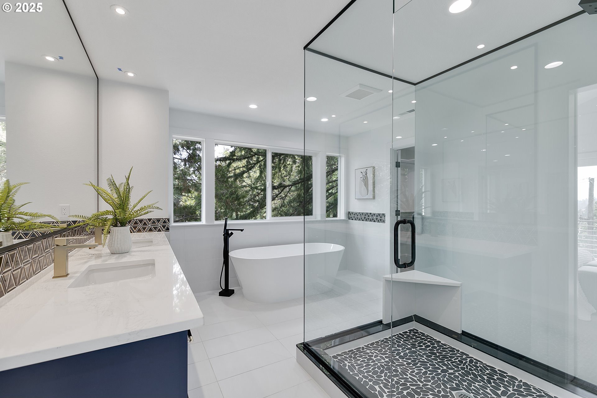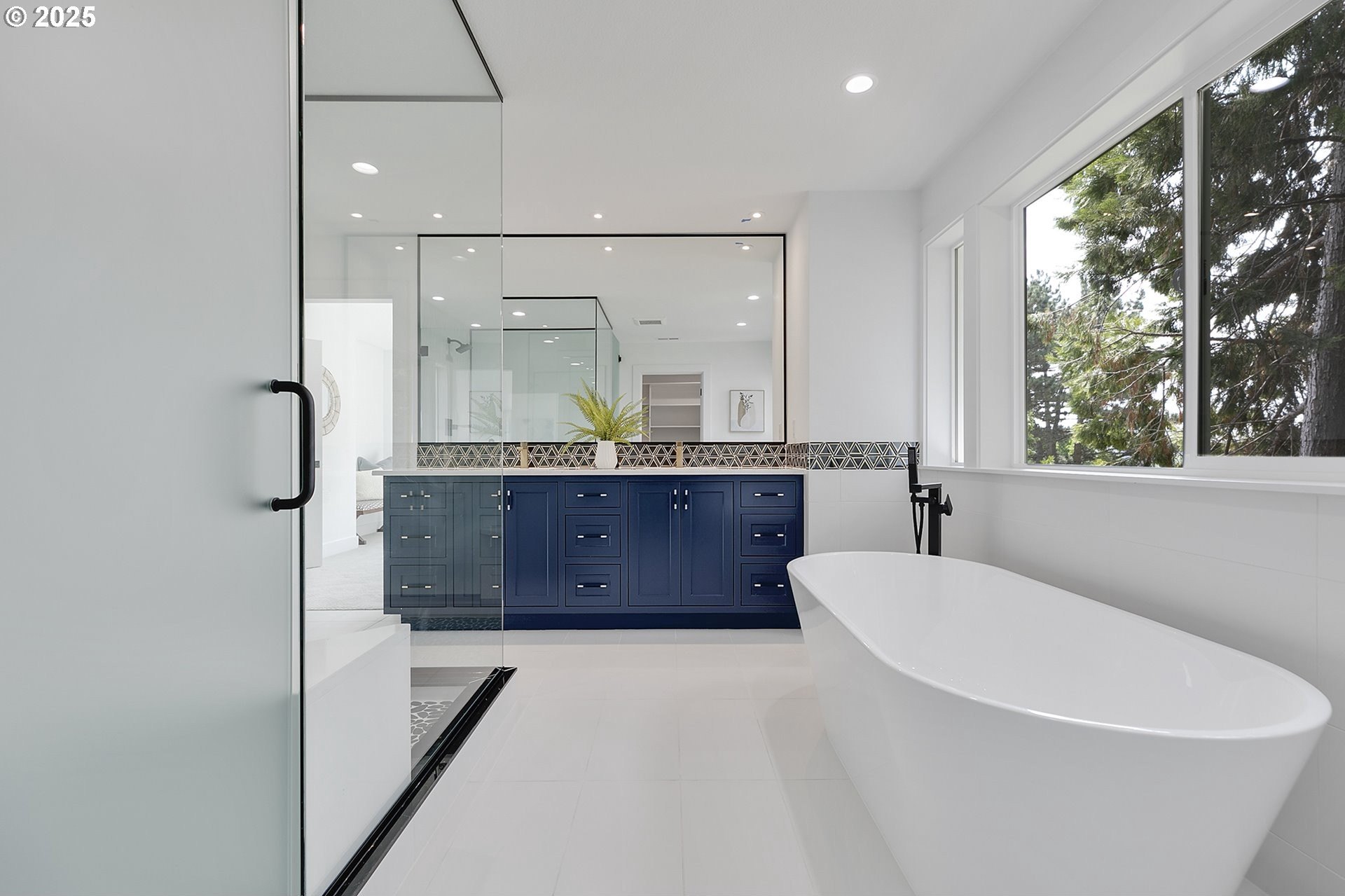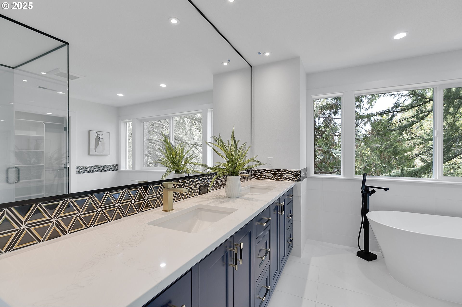 Welcome to this newly built home, perfectly situated on a quiet cul-de-sac in Portland's desirable Madison neighborhood. This outstanding custom residence masterfully blends timeless style with sustainable living. The smartly designed floor plan enhances the feeling of openness, highlighting spacious living areas flooded with natural light, soaring ceilings, wide plank hardwood floors, and a dramatic two-story gas fireplace that serves as a stunning focal point on the main floor. This level also includes a bedroom and full bathroom, perfect for guests, multi-generational living, or a home office. The gourmet kitchen boasts a large quartz island ideal for entertaining, alongside a built-in oven, microwave, refrigerator, cooktop, and pantry. Additional features on the main floor include a wet bar, family room, laundry space, and a full bathroom. Upstairs, the primary suite provides a luxurious retreat complete with a walk-in closet and a lavish bathroom featuring a soaking tub, heated floors, dual vanities, and an impressive walk-in shower. This level also hosts two more bedrooms and a shared bathroom. Enjoy private decks with stunning views accessible from both the primary bedroom and the office. Enhancing this home are central air conditioning, a three-car garage, and a generous private back patio overlooking a serene wooded area with a charming gazebo. Numerous other amenities offer unparalleled comfort and convenience. The purchase includes a one-year builder's warranty, ensuring your peace of mind.