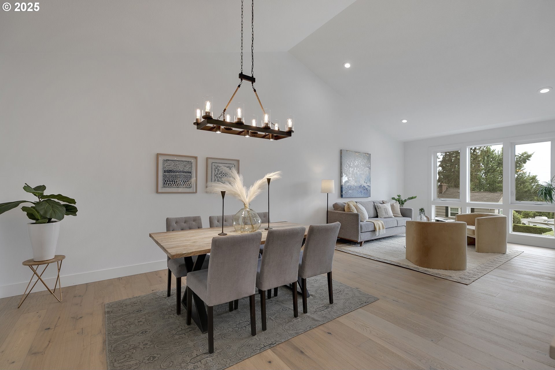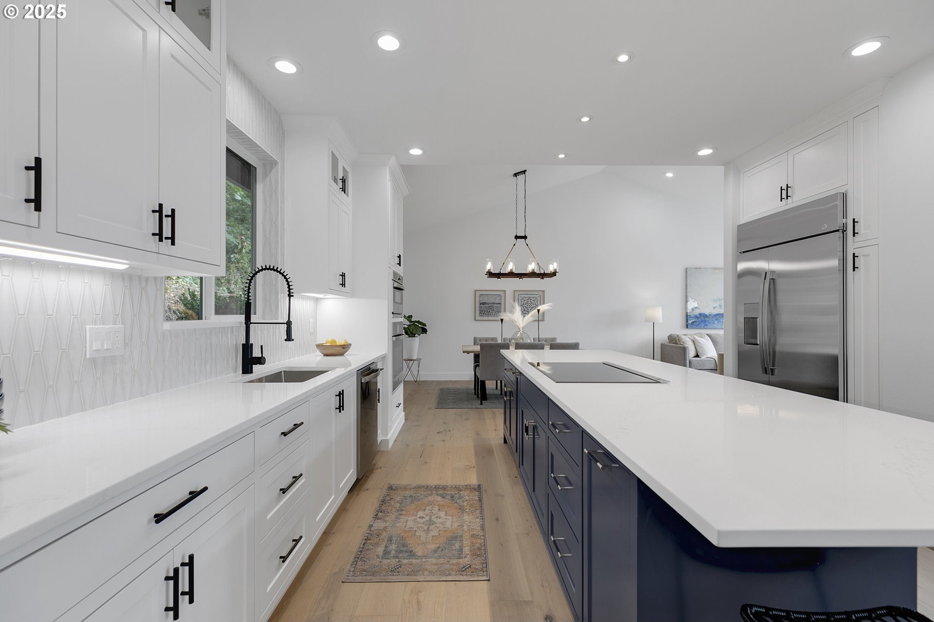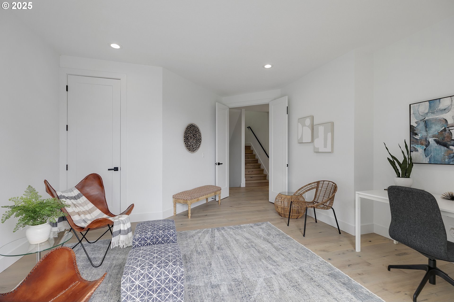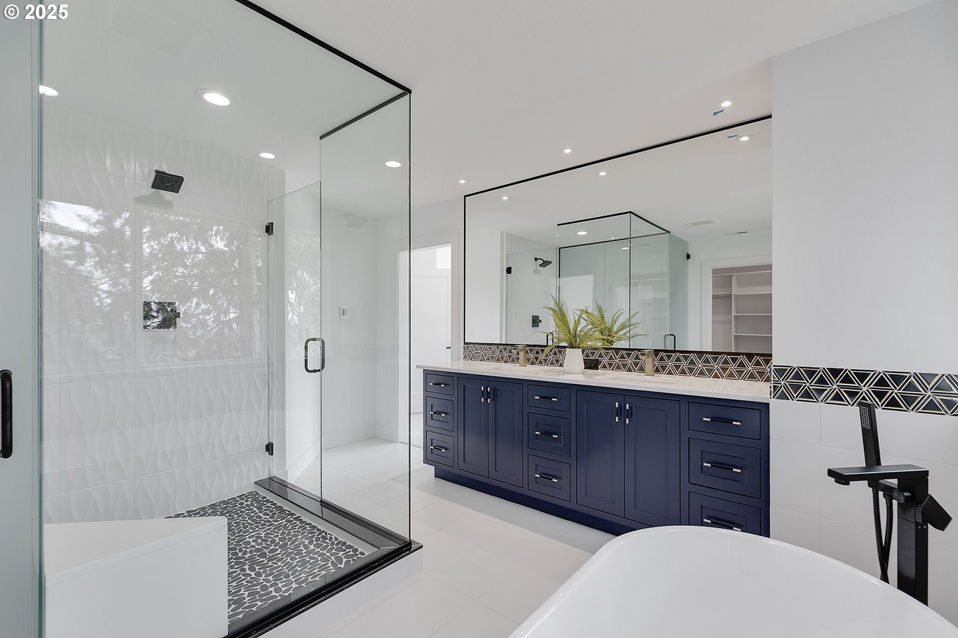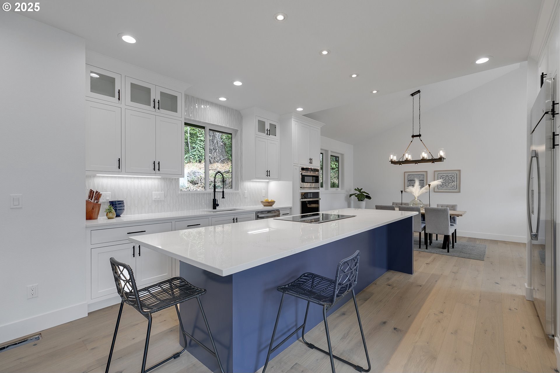 Welcome to this newly built home, perfectly situated on a quiet cul-de-sac in Portland's desirable Madison neighborhood. This outstanding custom residence masterfully blends timeless style with sustainable living. The smartly designed floor plan enhances the feeling of openness, highlighting spacious living areas flooded with natural light, soaring ceilings, wide plank hardwood floors, and a dramatic two-story gas fireplace that serves as a stunning focal point on the main floor. This level also includes a bedroom and full bathroom, perfect for guests, multi-generational living, or a home office. The gourmet kitchen boasts a large quartz island ideal for entertaining, alongside a built-in oven, microwave, refrigerator, cooktop, and pantry. Additional features on the main floor include a wet bar, family room, laundry space, and a full bathroom. Upstairs, the primary suite provides a luxurious retreat complete with a walk-in closet and a lavish bathroom featuring a soaking tub, heated floors, dual vanities, and an impressive walk-in shower. This level also hosts two more bedrooms and a shared bathroom. Enjoy private decks with stunning views accessible from both the primary bedroom and the office. Enhancing this home are central air conditioning, a three-car garage, and a generous private back patio overlooking a serene wooded area with a charming gazebo. Numerous other amenities offer unparalleled comfort and convenience. The purchase includes a one-year builder's warranty, ensuring your peace of mind.