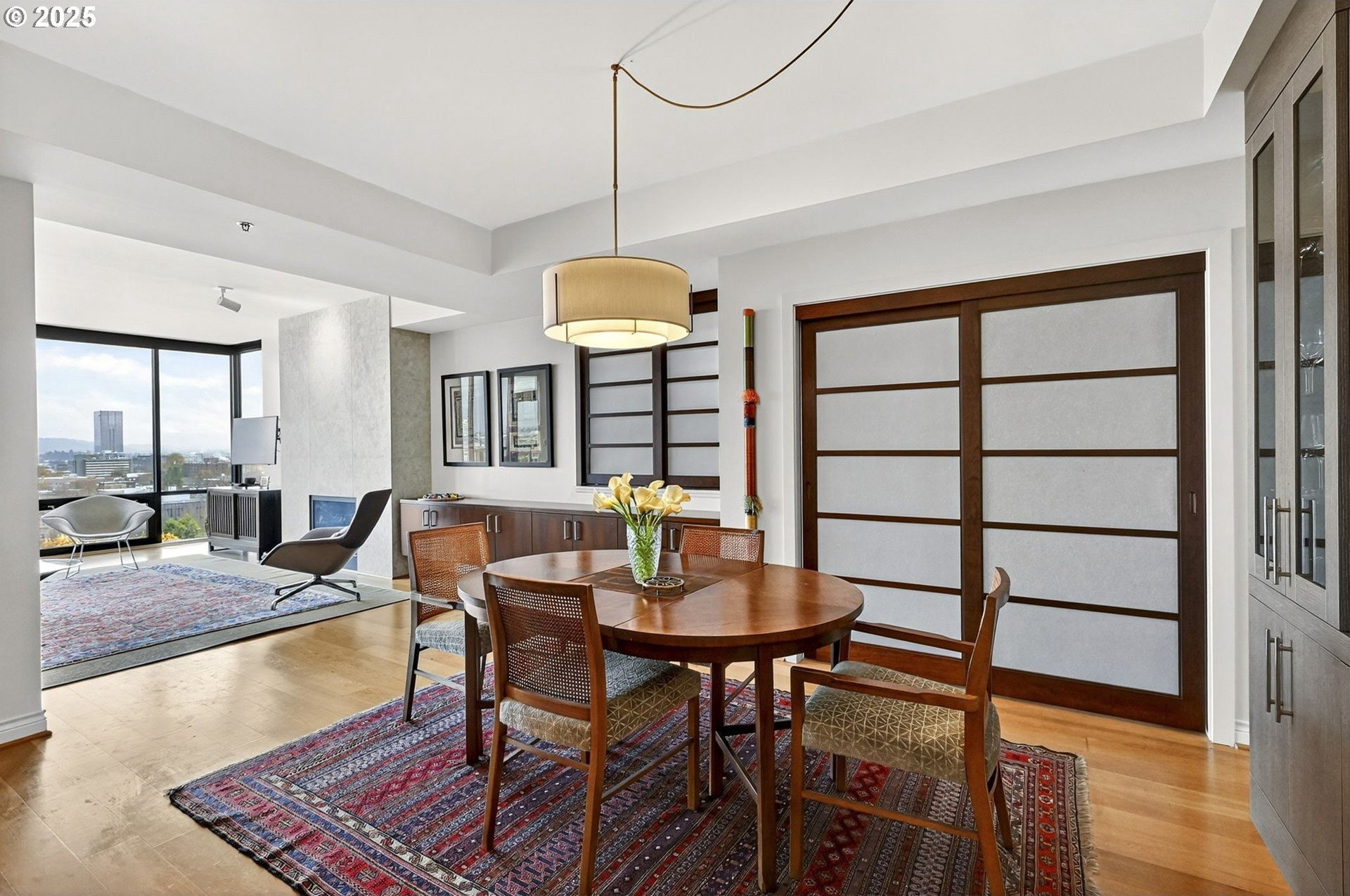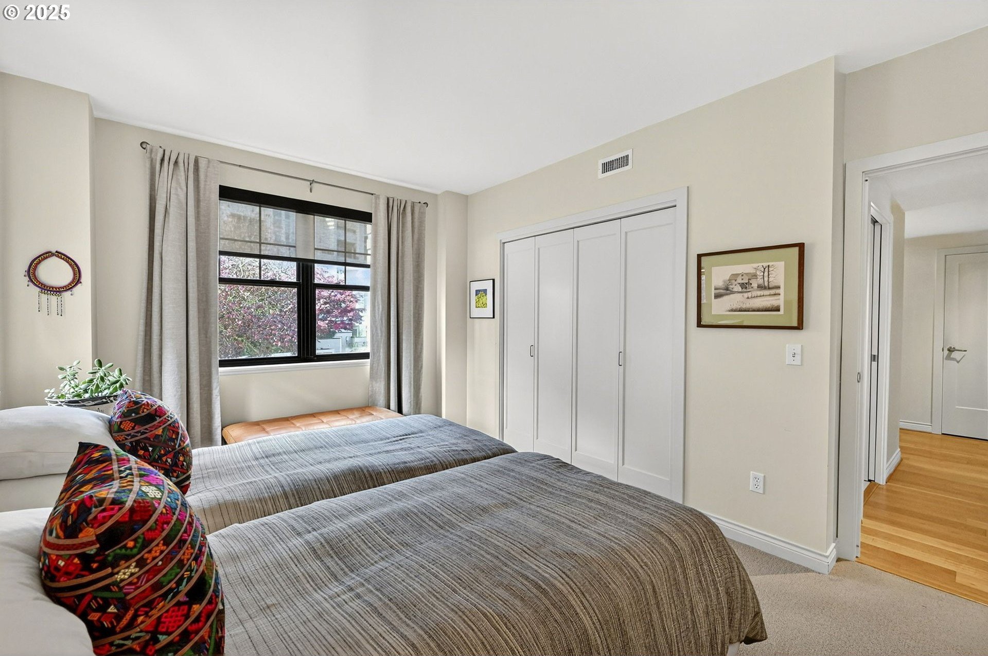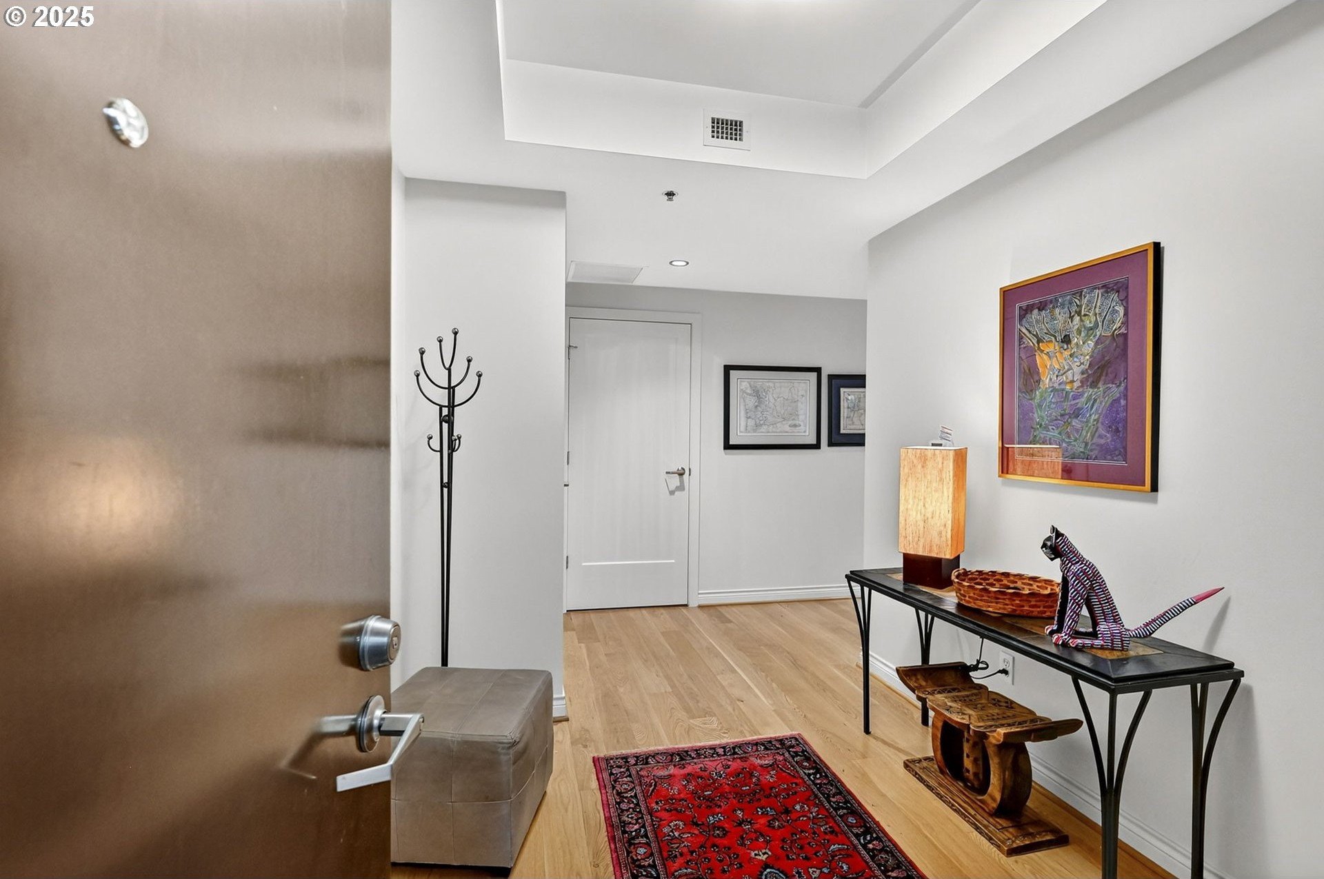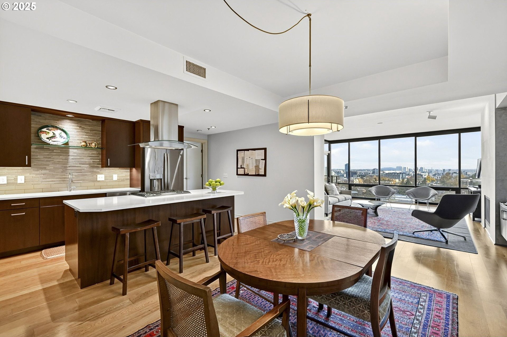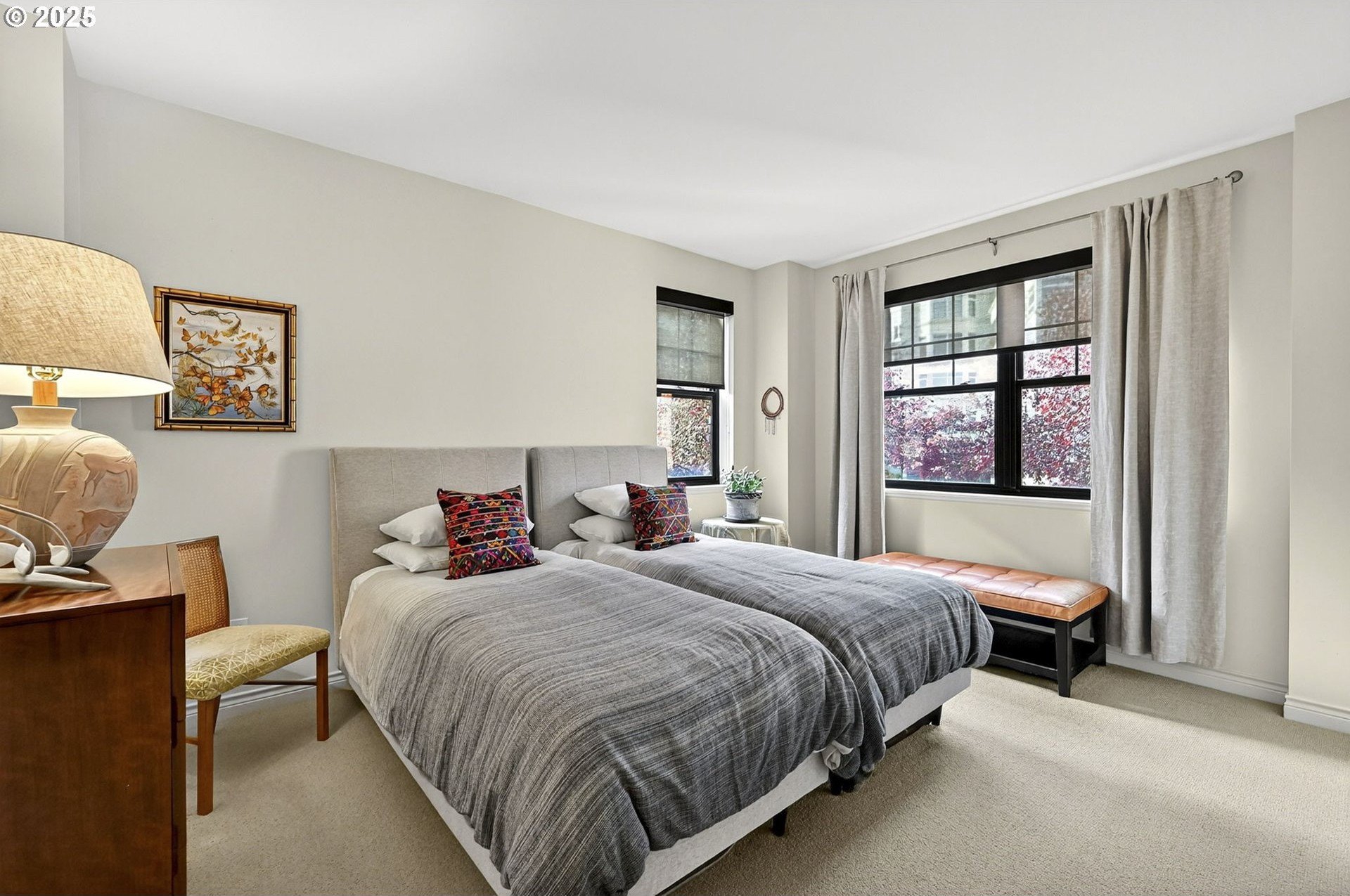 Portland living in The Cambridge on NW Westover, perfectly situated in the heart of the Nob Hill / Northwest District; it is one of Portland's most desirable neighborhoods. This beautifully updated condo combines classic NW style with modern upgrades, offering high end finishes and a flexible floor plan. Enjoy unobstructed mountain views of Mt. Hood, Mt. Adams, Mt. St. Helens, and Mt. Rainier; a rare vantage point that brings the best of Oregon and Washington's skyline right into your home. Positioned above the city for exceptional privacy and quiet, yet minutes from NW 23rd Avenue dining, shopping, parks, and transit. This location delivers the ideal Portland lifestyle.The remodeled kitchen features updated appliances and a clean, contemporary aesthetic; making this condo move-in ready from day one. Two full bedrooms and an office along with two bathrooms make this a roomy retreat! You'll love the covered patio with outdoor space for lounging or dining and an additional patio for grilling with gas hookup. Additional amenities include two deeded parking spaces and a private storage unit, offering convenience and extra space that's hard to find in the West Hills. For frequent travelers or anyone seeking a low maintenance home, this property provides effortless lock-and-leave living. A unique blend of urban energy and peaceful retreat, The Cambridge stands out as one of NW Portland's premier condos. These views rarely come to market, come see for yourself.