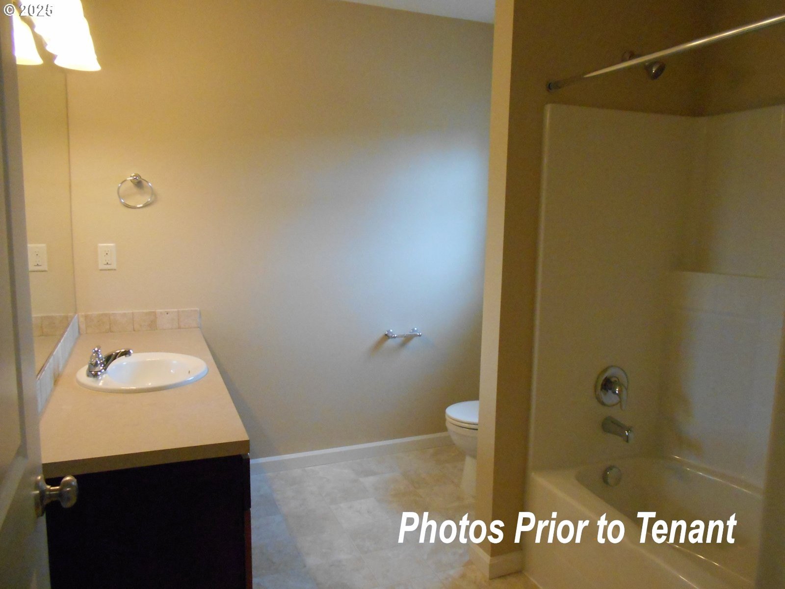 New in 2013 with an open entryway and soaring ceilings. Hardwood flooring flows through the living, dining, and kitchen areas. Main level features a versatile den/office and a hallway bathroom. The kitchen offers a stainless steel gas range, dishwasher, built-in microwave, deep double sinks, and ample storage. Adjacent family room includes a cozy gas fireplace. Upstairs are two spacious linen closets and bedrooms with generous closet space. The primary suite features an oversized walk-in closet and a luxurious bath with double vanity, tile floors and counters, a soaking tub, tiled shower with glass doors, and a private toilet room. Convenient upstairs laundry room completes this well-designed home. Super convenient location perfect for commuters and dog lovers - near popular Ike Memorial Dog Park and freeway access. Could be your next investment property with great rental history!