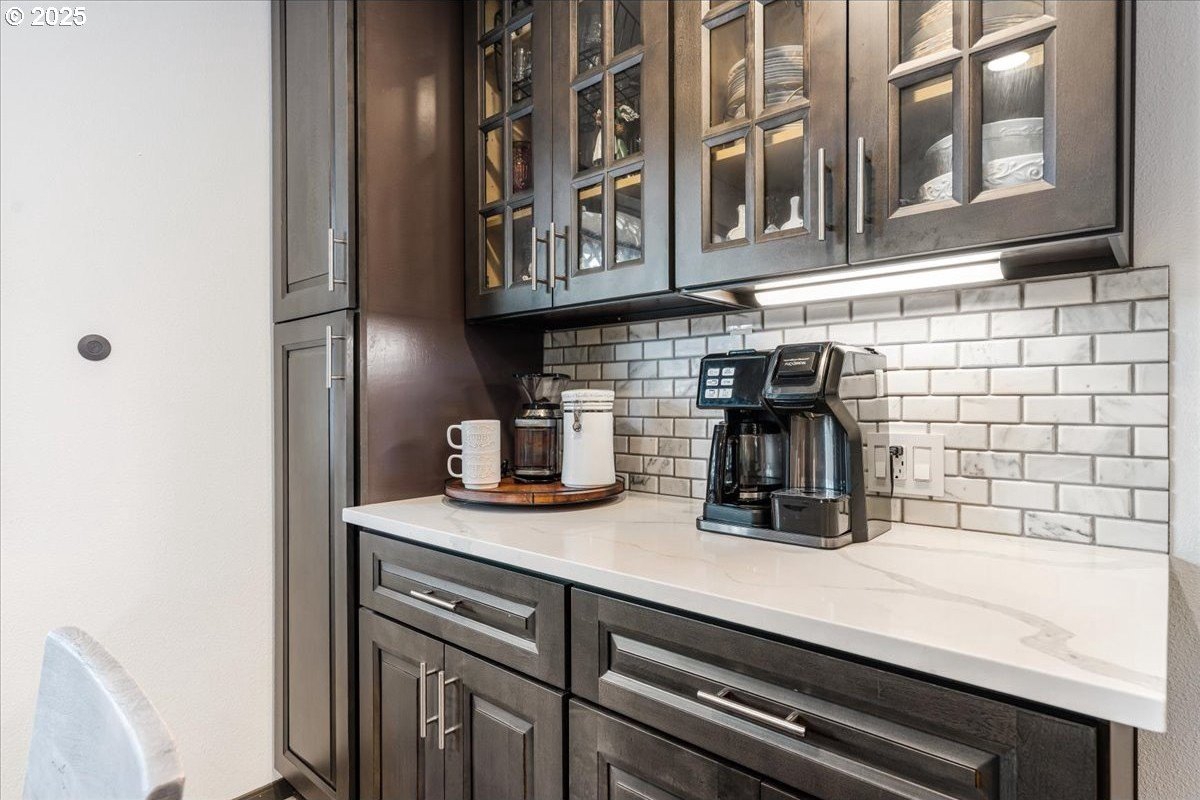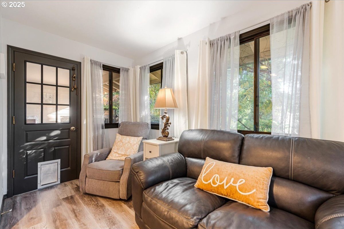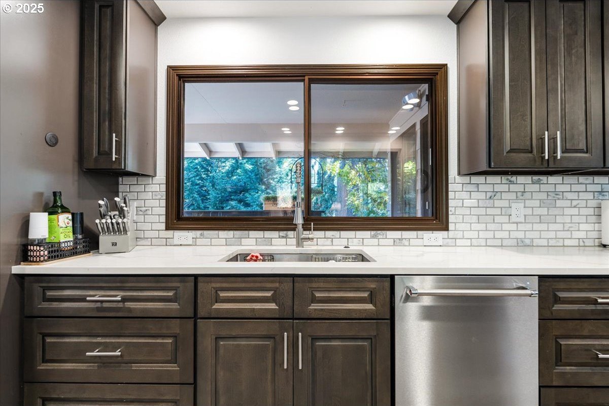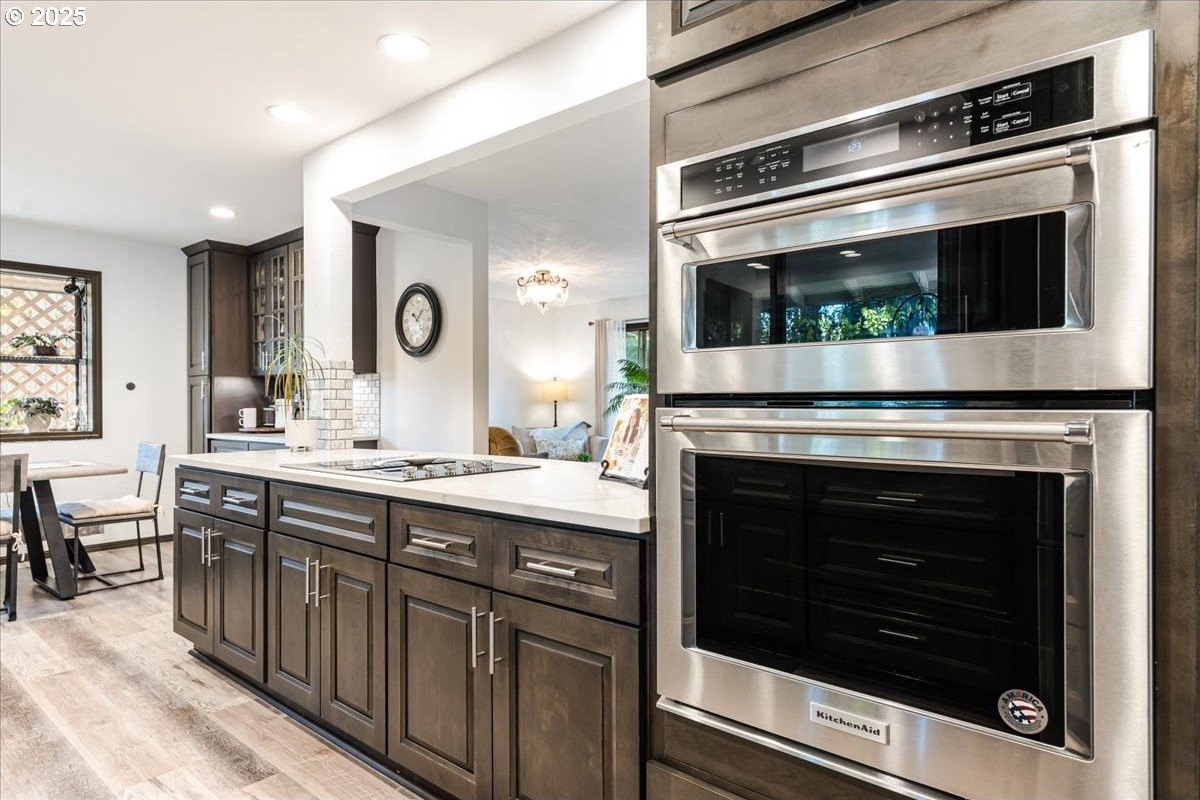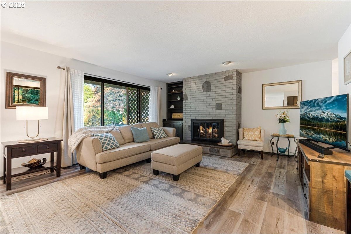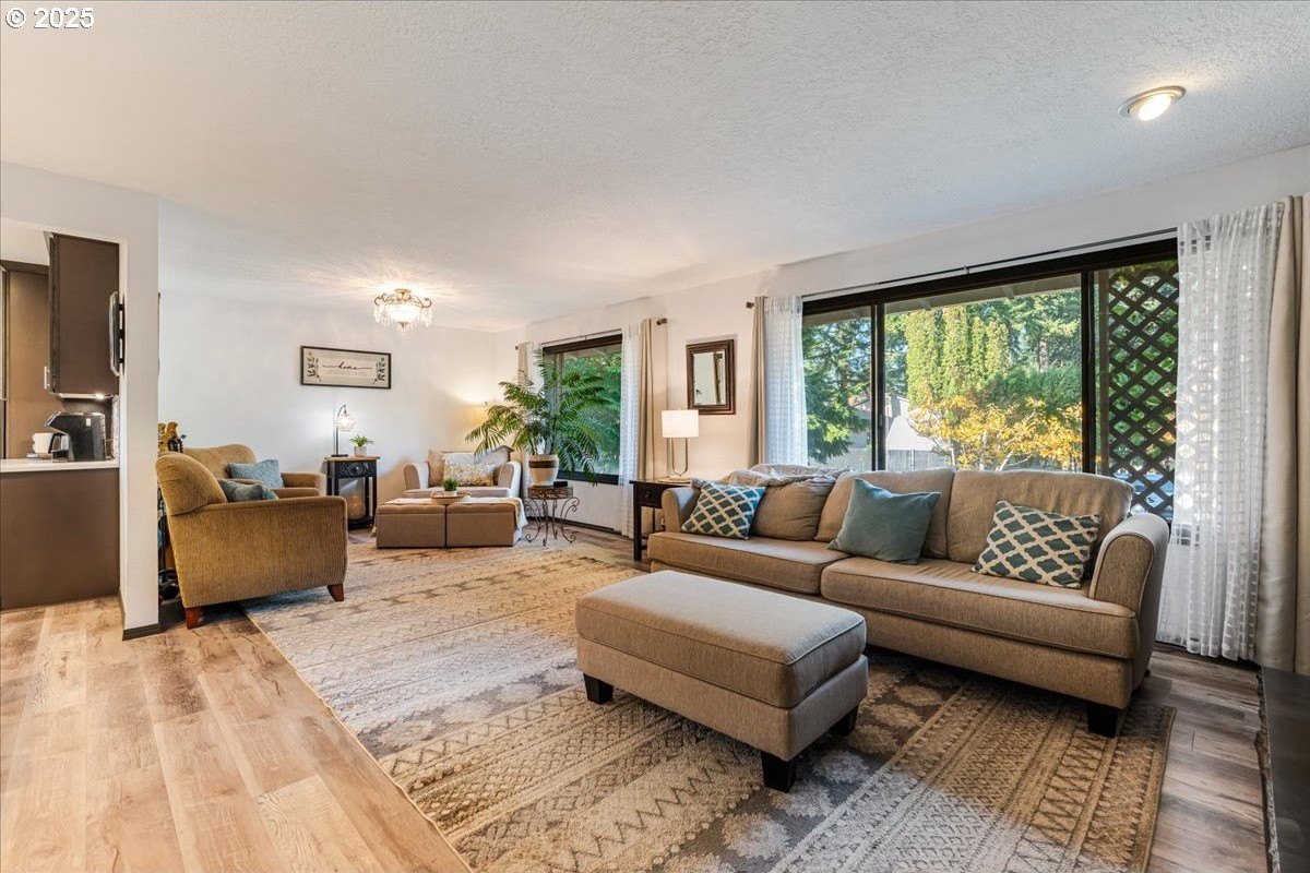This lovingly maintained home offers modern updates and versatile living spaces throughout. The fully remodeled 2021 kitchen features quartz countertops, new cabinetry, updated fixtures, and stainless-steel appliances - plus a charming eating nook and lounge area. The kitchen opens seamlessly to the dining and living room spaces, creating an inviting open floorplan feel. A coffee bar and additional cabinets off the dining area provide extra room for kitchen storage and functionality.Upstairs you'll find luxury vinyl flooring.Lower level has a convenient laundry room with new cabinets and counters. The lower level includes a spacious family room with a fireplace & a 3rd lower level bedroom and bathroom are ideal for multi-generational living. Enjoy year-round comfort with newer air conditioning, PEX plumbing, and a freshly repainted exterior with new gutters. House has redwood cedar siding and 3-foot overhang rafters. Relax outdoors on the newer covered deck, and take advantage of the oversized two-car garage with a workbench and storage. Located on a quiet end street, this home offers both privacy and practicality - truly move-in ready with thoughtful updates and exceptional care throughout. [Home Energy Score = 2. HES Report