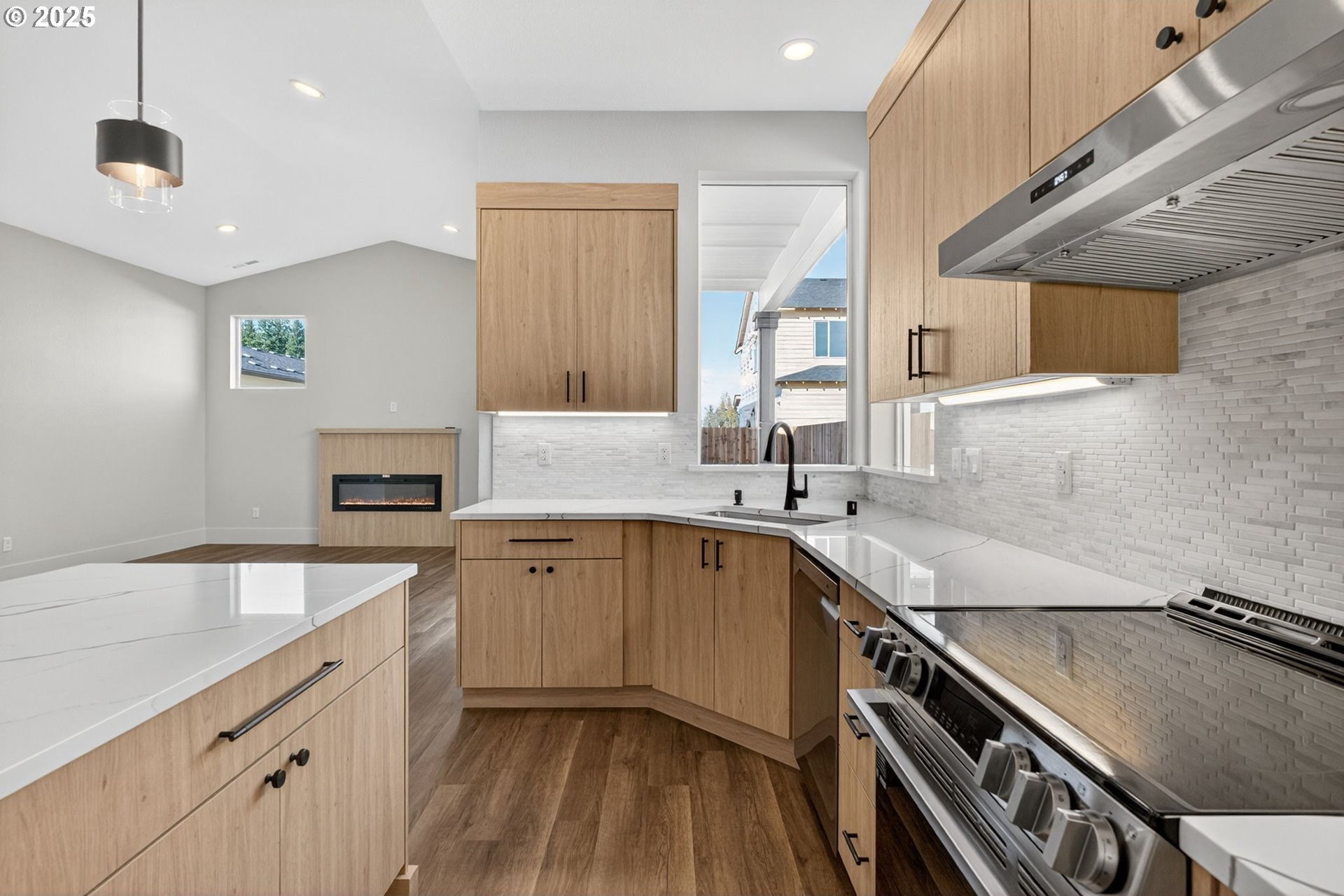 Stunning Modern 1-story New Construction Move in ready perfect for you. Spacious open concept living on Main vaulted ceilings that's Highlighted by a beautiful high end modern kitchen with oversized quartz island for entertaining. Stainless steel appliances. Warm and inviting throughout with modern finishes and touches. Master bedroom features custom Tile Shower with double vanity and big closet. 3 bedrooms, 2 bathrooms , tall ceilings in bedrooms tons of light. Big backyard with covered patio. Very low maintenance makes this comfortable and with ease of living. Corner lot with plenty of space for parking. The location of this Home offers convenience and accessibility to nearby amenities, Trails nearby, parks, schools, and commuter routes, ensuring a well-rounded lifestyle for you and your family. Come see today!! Open House Monday December 1st 12:00pm- 3:00pm Tuesday December 2nd 2:00pm-5:00pm