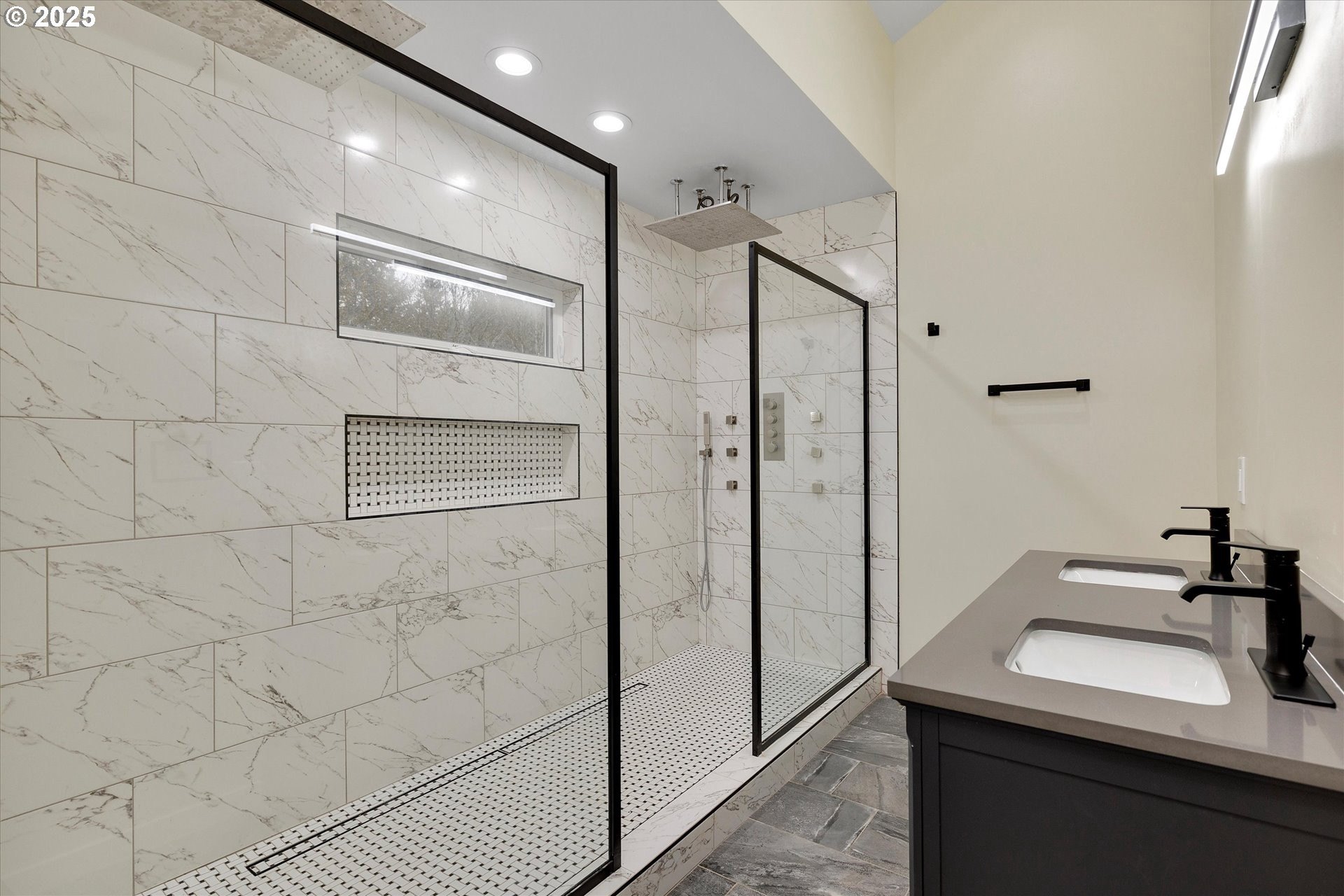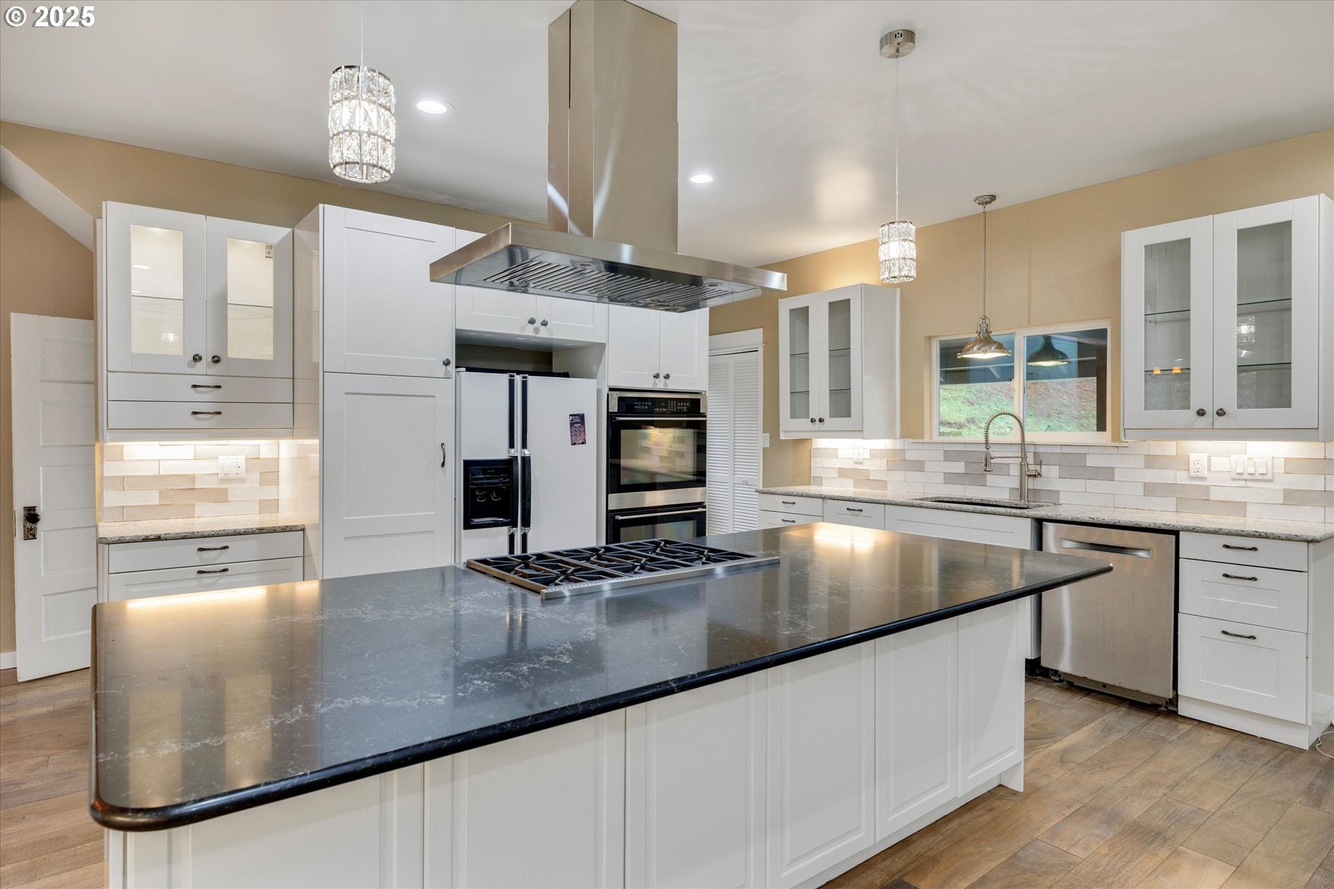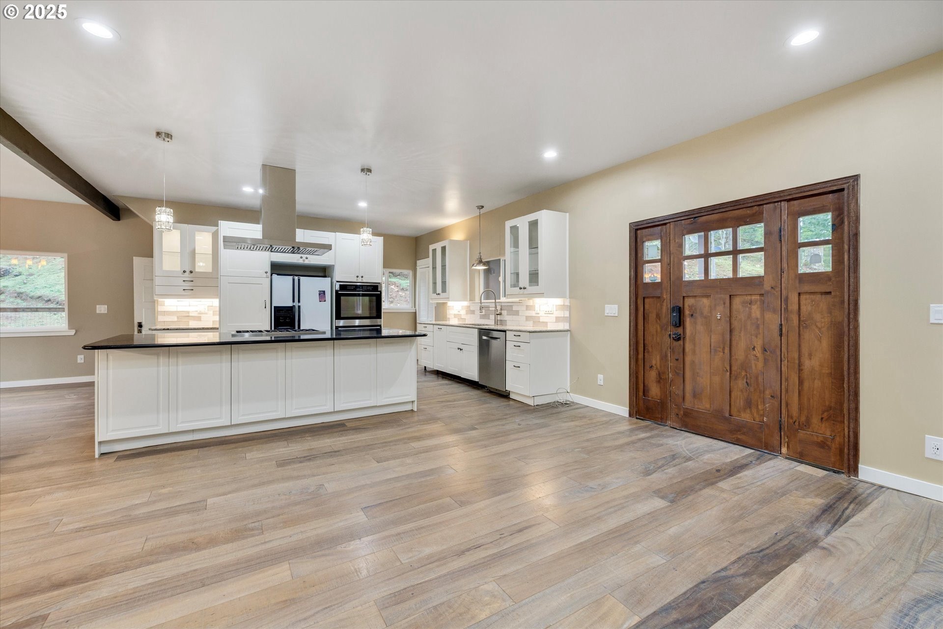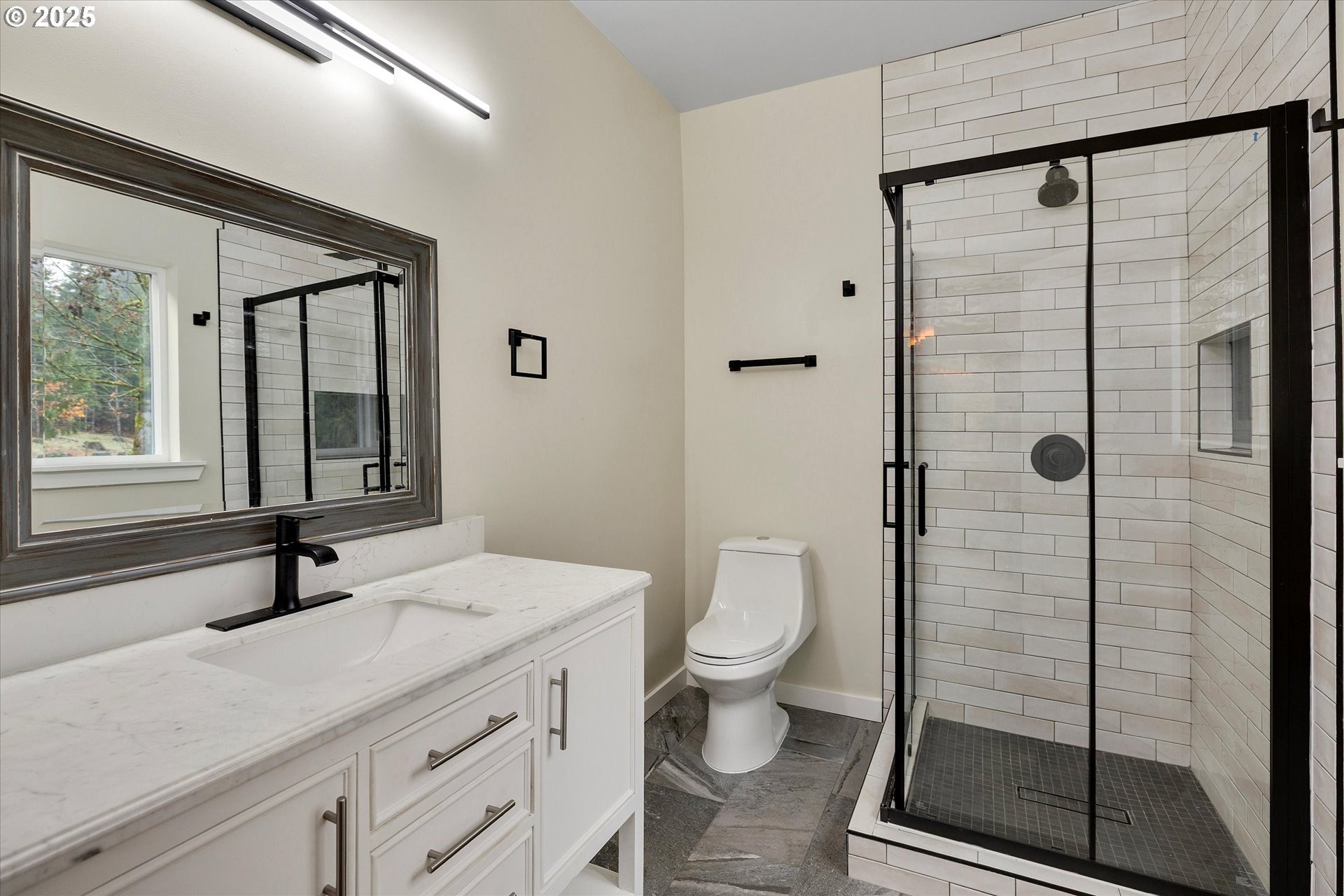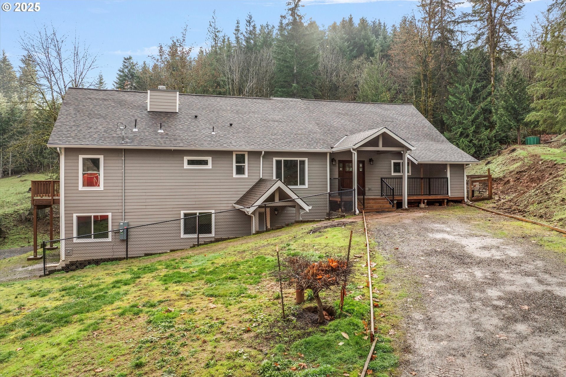 Fully remodeled down to the studs, this beautiful country estate welcomes you with a scenic private driveway and 5.89 acres of open land with a flowing creek and six versatile outbuildings perfect for equipment, storage, recreational toys, and animals. The home offers 3751 square feet of finished living space plus 917 square feet in the basement that offers excellent potential for a gym, storage area, or future living quarters. Inside, you will find high ceilings and a grand primary suite with vaulted ceilings, tongue in groove decor, two walk in closets, and a fully tiled bathroom with an expansive walk in shower. Sliding doors lead to a private balcony with peaceful countryside views. From the main floor, you have direct access to an expansive TREX decking system that extends from the second floor down to the backyard terrace, creating a smooth indoor to outdoor living experience. All three bathrooms have been fully remodeled with floor to ceiling tile, modern tile flooring, updated vanity decors, and new modern toilets. The entire home has been electrically rewired and updated, and all mechanical components have been brought up to date. The property also includes a new septic system, fully updated plumbing, and brand new well equipment for reliable utilities from day one. The layout provides five bedrooms, three full bathrooms, and a large bonus room with a loft that can serve as a sixth bedroom, a play area, office space, or guest quarters. Dual entrance access makes this property ideal for multi generational living or Airbnb use. Power has been added to multiple outbuildings, several of which have been restored for storage, livestock, workshops, or entertainment. This property is completely ready the moment you move in. Located just fifteen minutes from Hillsboro and thirty five minutes from Portland, this estate offers the perfect blend of quiet country living with quick access to the high tech corridor and city conveniences.