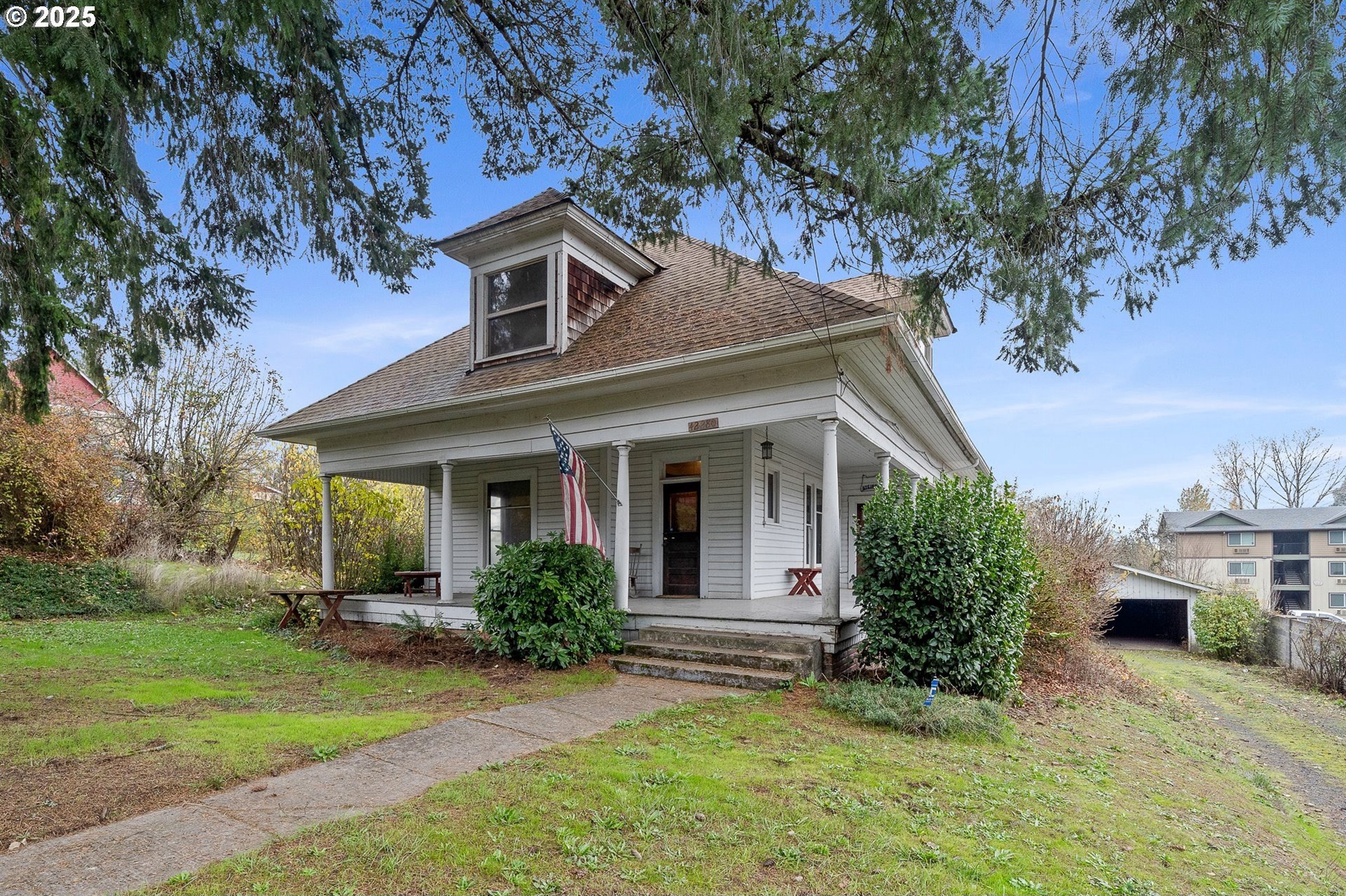 Country living within city limits! Nestled on a generous 1.08-acre lot, this charming 5-bedroom, 2-bath farmhouse offers timeless character, modern comfort, and exciting future potential. Step inside to discover a warm, inviting layout that supports main-level living with a large kitchen and breakfast nook, formal dining room, living room, family room, bedroom, and full bath. Upstairs, you'll find the primary suite, three additional bedrooms, a second full bath, and a cozy sitting area-ideal for a home office, reading nook, or play space. Enjoy year-round comfort with a heat pump, and relax by the pellet stove on cool winter days. The basement provides ample room for storage or a workshop, while the detached garage, complete with its own electrical panel, offers flexible space for vehicles, hobbies, or equipment. Outside, experience the beauty of country living on this premium lot featuring mature pear, plum, apple, walnut, and fig trees-something to enjoy in every season. The on-site irrigation well keeps your landscaping lush and vibrant year-round. Located near the Banks-Vernonia Trail for biking, hiking, and equestrian recreation-and with easy access to Portland, Nike, Intel, and the Oregon Coast-this property offers the perfect balance of rural charm and city convenience. Be sure to inquire with the City of Banks about the flexible zoning and development potential of this exceptional property-truly a rare find combining lifestyle, location, and opportunity. *Potential to purchase additional 0.64 acre adjacent lot,