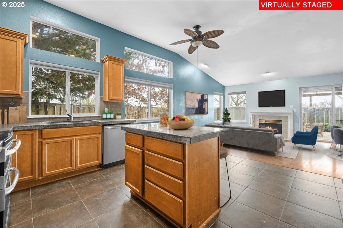Spacious one story ranch in a North Plains neighborhood offering an outstanding opportunity to personalize and build equity. This 3-bed, 2-bath home sits on a quiet street and features a functional 1,784 sq ft layout with great natural light and an attached two-car garage. Inside, the living room includes a gas fireplace and built-ins, creating a warm and inviting focal point. The kitchen is open and part of the great room concept, offering an island and excellent potential for a gathering space.The exterior offers a private backyard and plenty of space to re-imagine outdoor living. Located just minutes from parks, schools, and all the conveniences of North Plains and the Hwy 26 corridor, this property appeals to buyers seeking space and one-level living. Homes of this size and layout are rarely available in this pocket of town.
