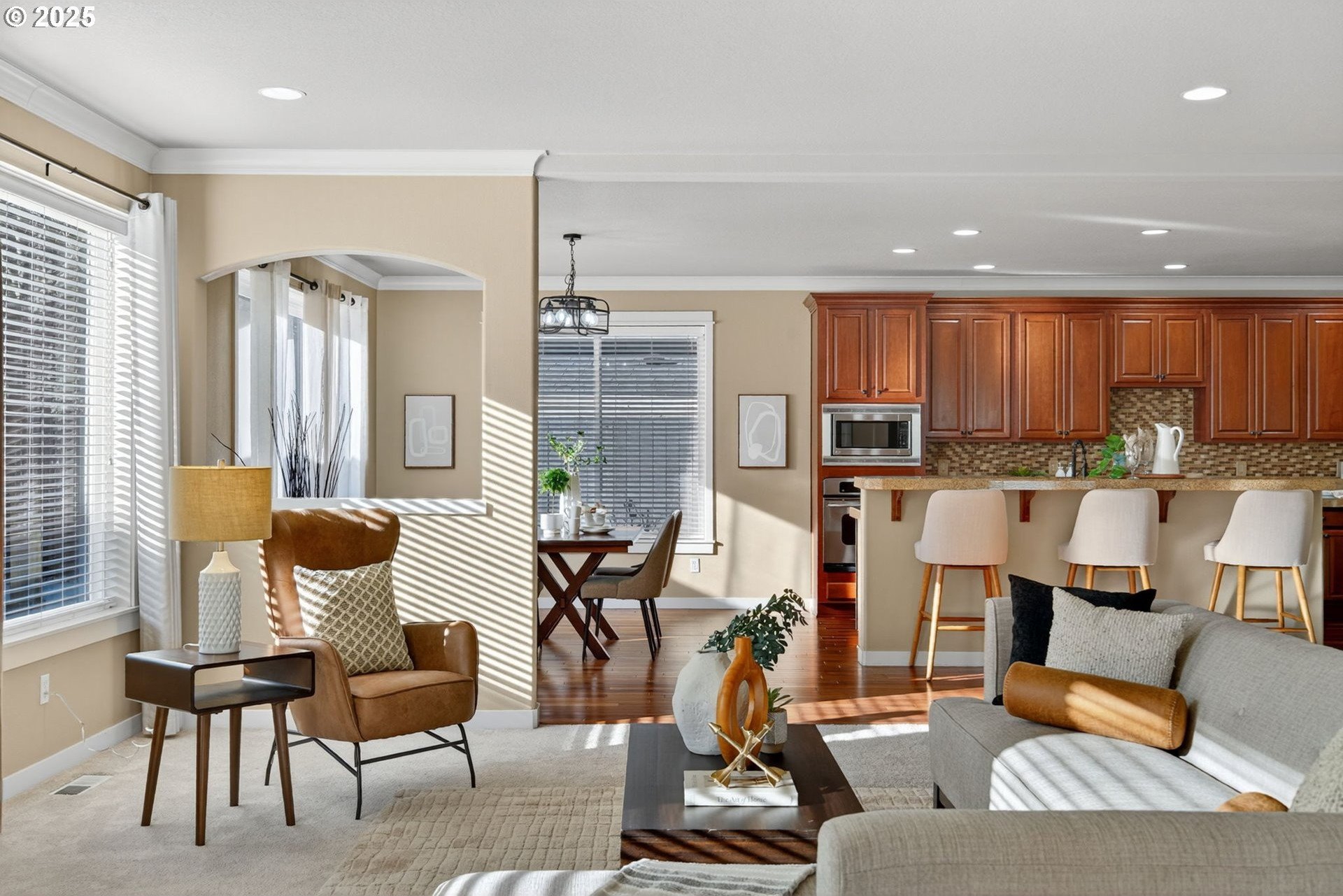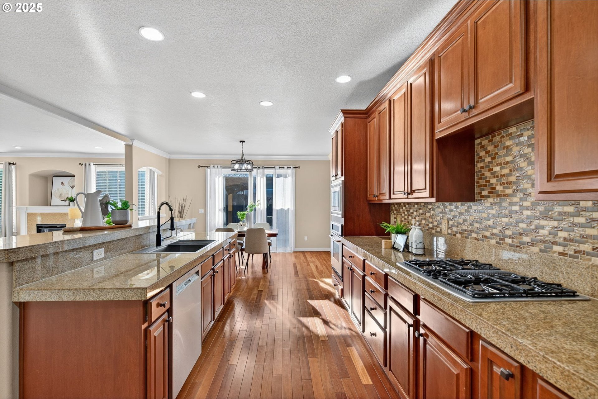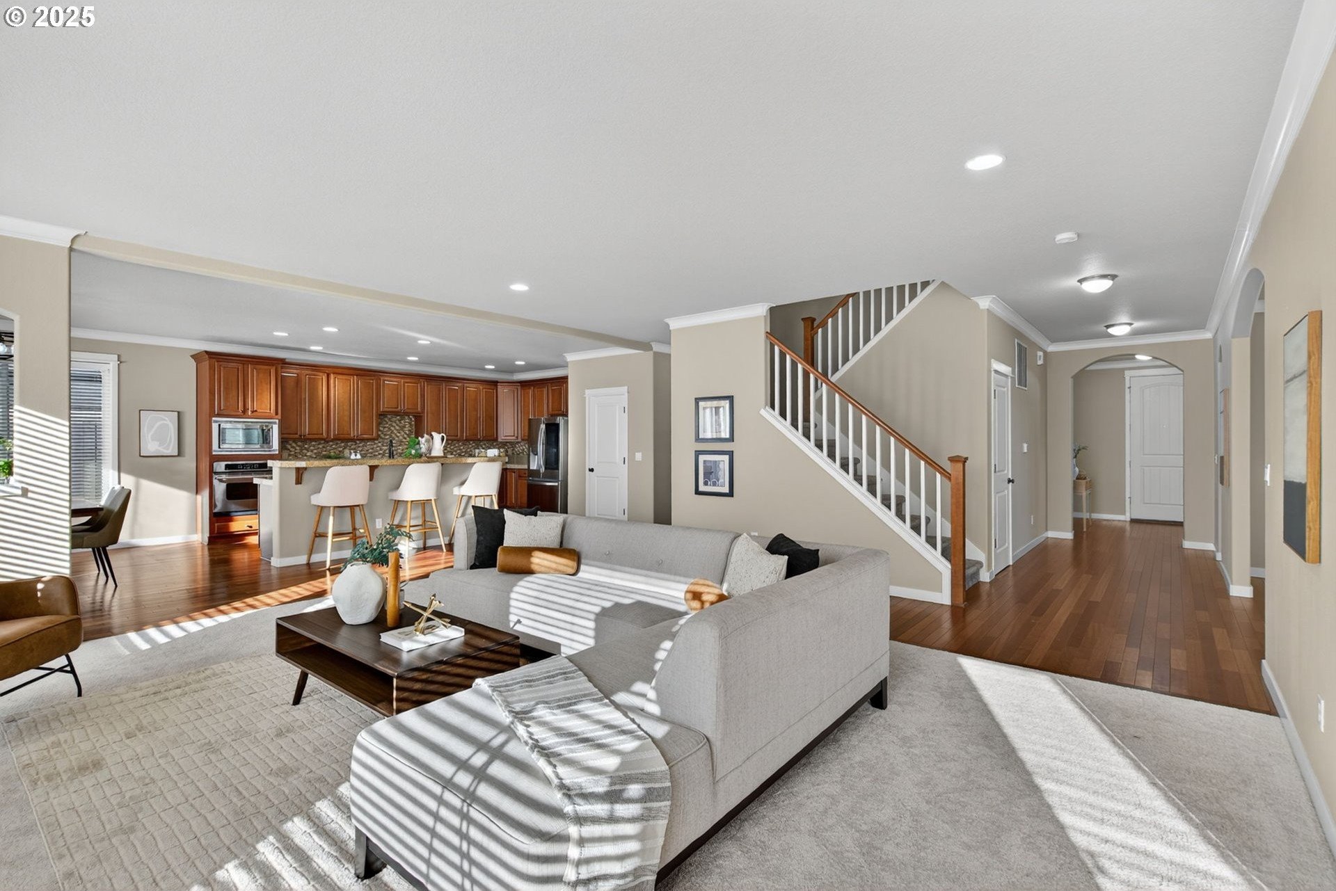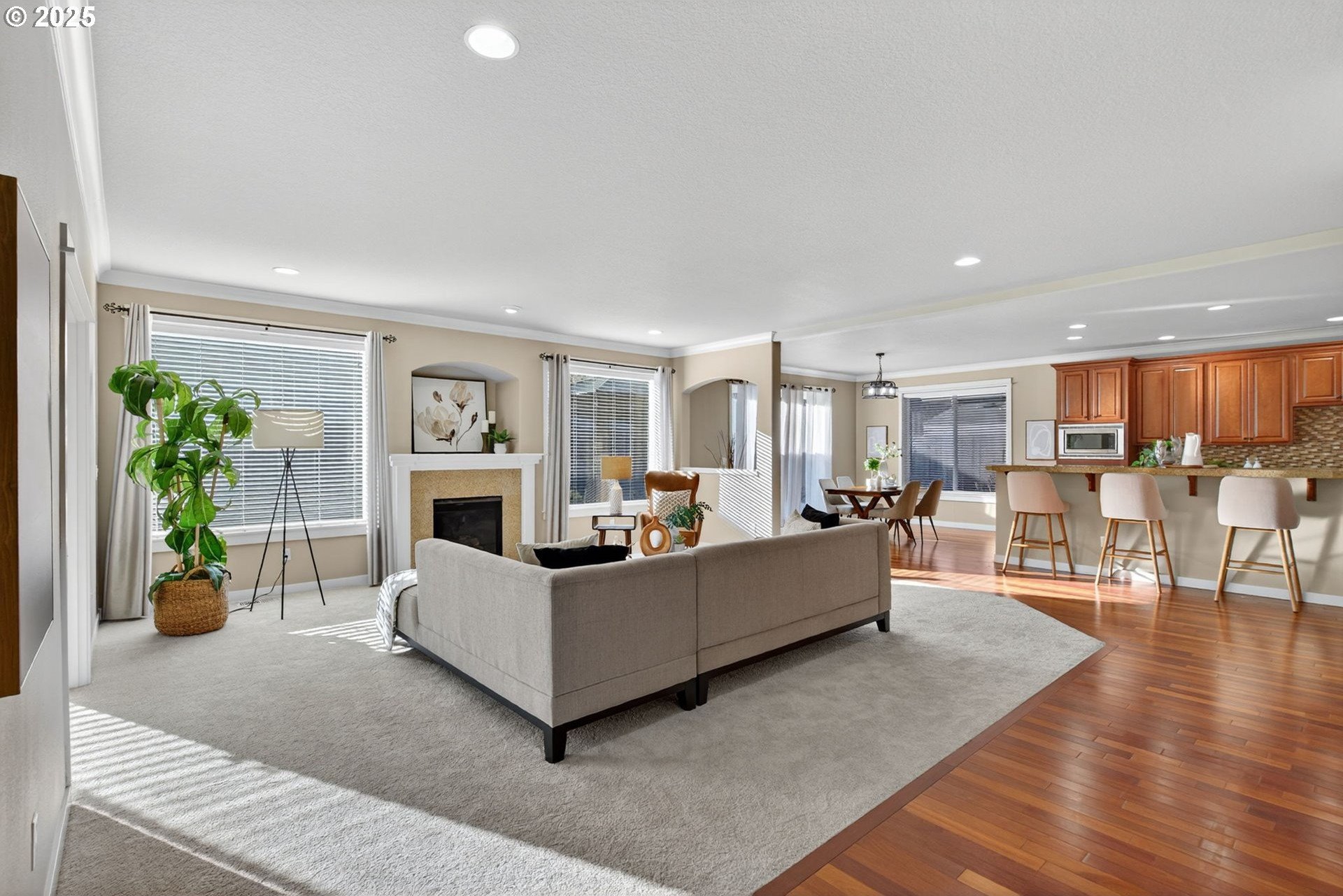 This stunning and spacious Happy Valley home has everything you have been looking for: a large and versatile floorplan, located on a generous sized corner lot with a big and beautiful backyard. Move-in ready, this home has space for all of your needs and plenty of room to grow. You will love the expansive great room and living rooms plus the den on the main (which could also double as a guest room with a full bath on the main level as well). Upstairs you'll find the primary suite plus three more bedrooms and two bonus rooms - one that could be the perfect playroom or media room and the other, a generous sitting room off of the primary suite to use as you wish (sitting area, gym, office space, yoga sanctuary - so many possibilities!). The open gourmet kitchen is a cook's delight, and is both practical and perfect for entertaining, with an eating bar and pantry plus stainless appliances. Other feature include hardwood floors, central A/C, two gas fireplaces, built-ins, and high ceilings. Recent updates include newer HVAC (both furnace and AC units, there are two of each), newer water heater tank and newer gutters and landscaping. Homes with this type of space usually take up 3 levels - so it is delight to accommodate everyone on two levels, with convenient laundry on the upper level, too. Relax and enjoy life in the gorgeous outdoor living area, with an easy care turf backyard, and a stamped concrete patio that is stunning and allows for easy care. Attached 3-car garage provides many storage options. Prime location in the desirable Jackson Hills neighborhood, close to amenities, easy transportation options and with excellent schools. Everything you need is here at SE Pebble Beach Dr - make an appointment to see this gem today. EXCELLENT VALUE, MUST SEE!