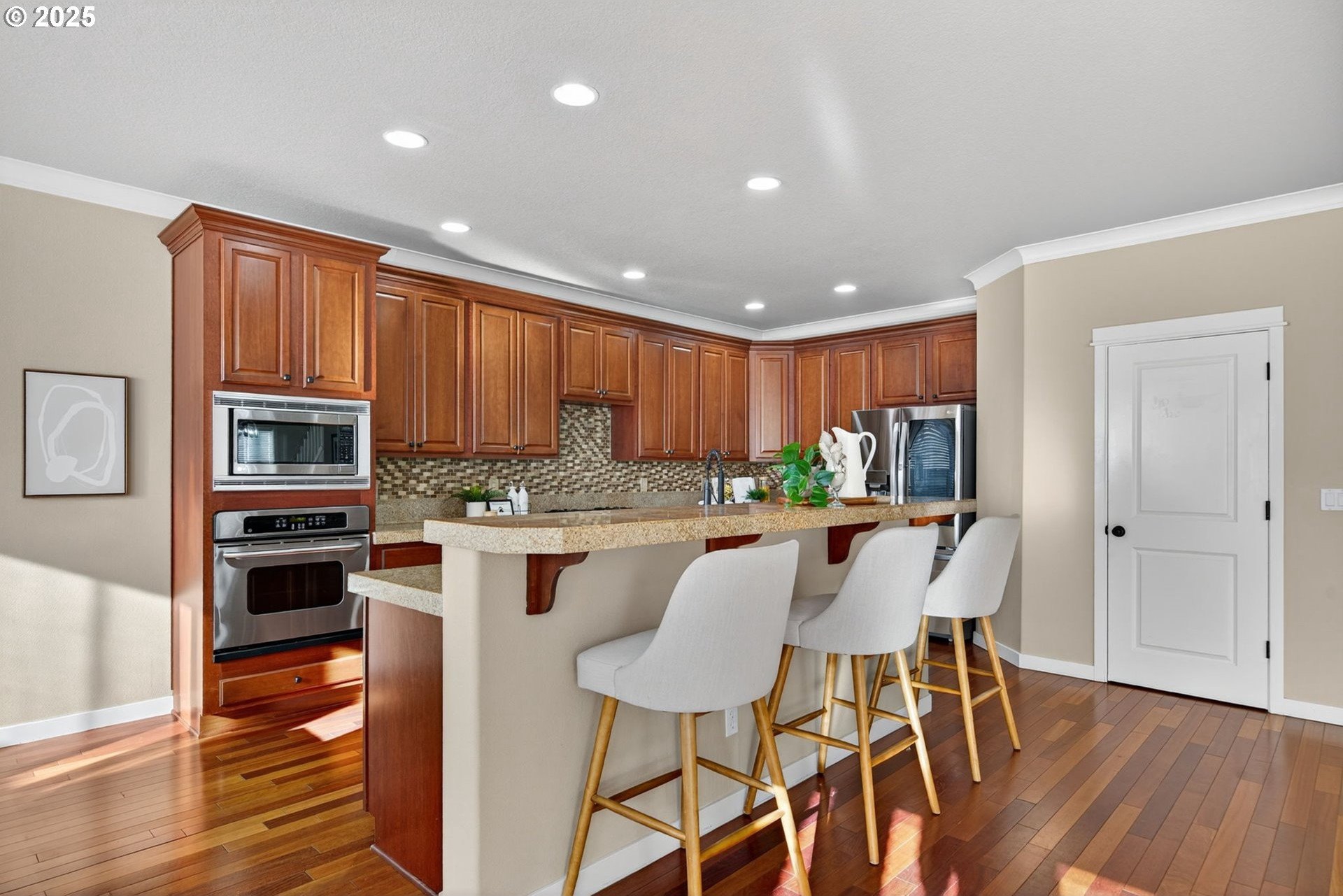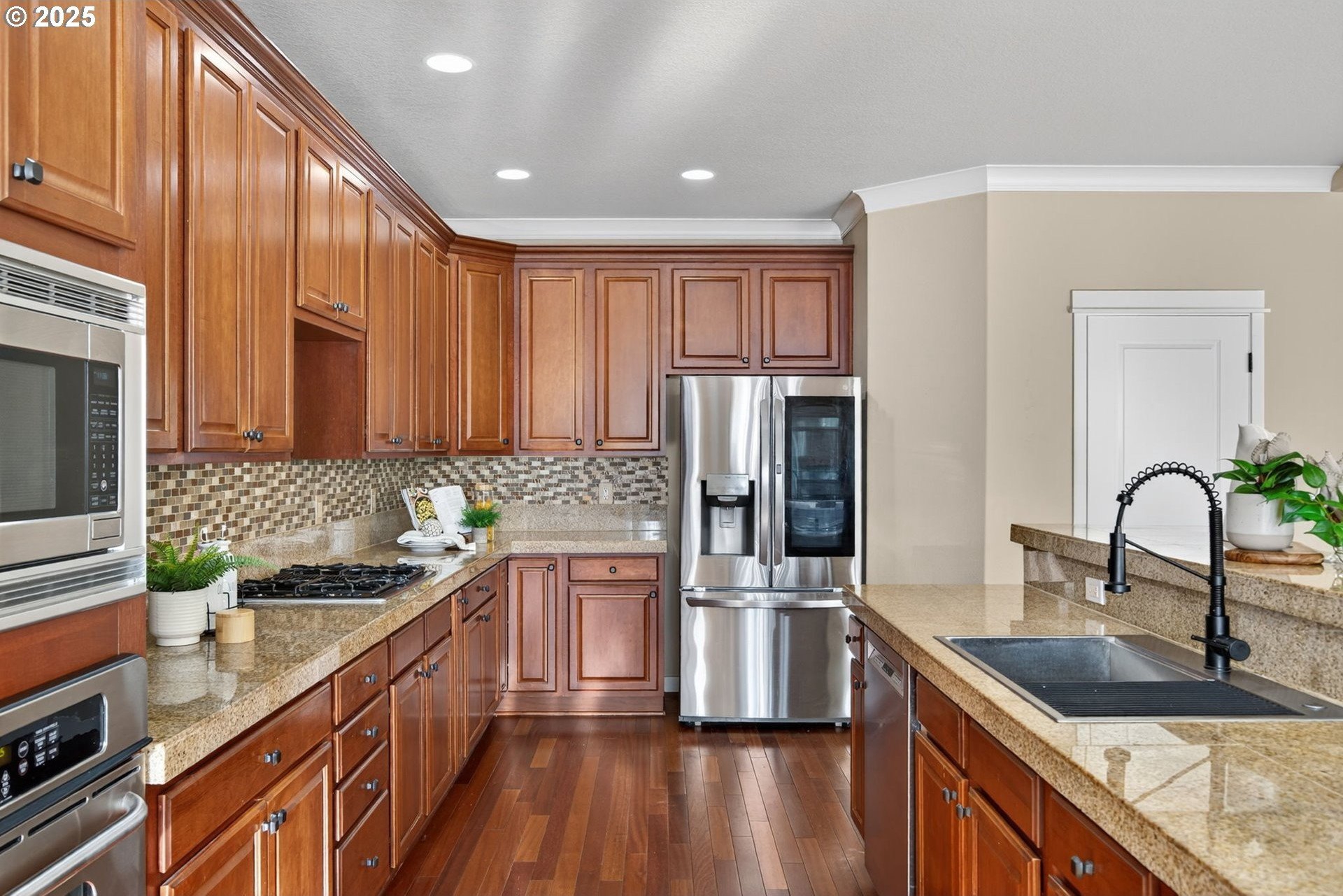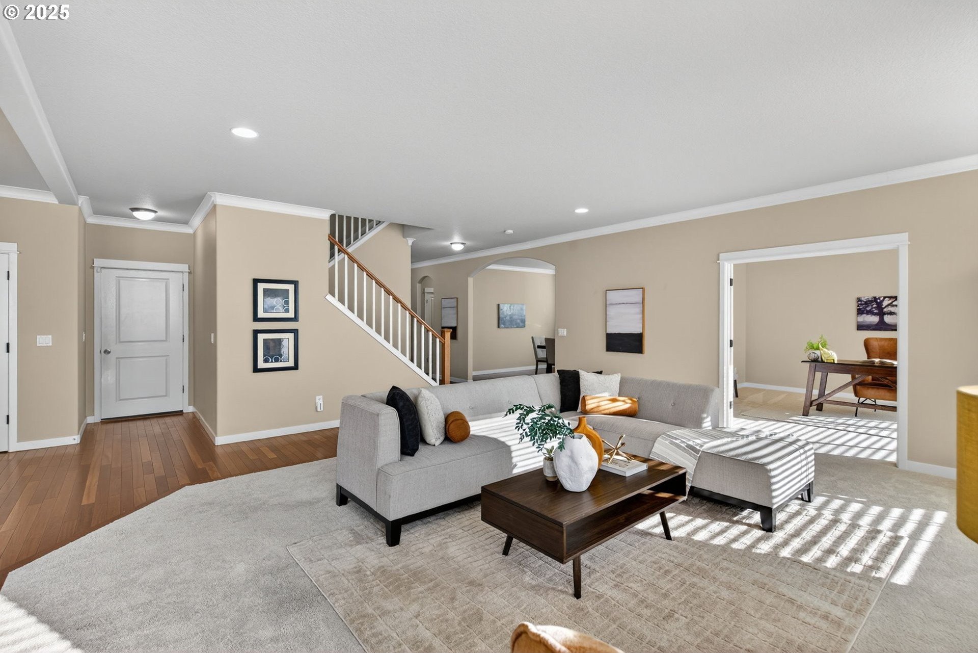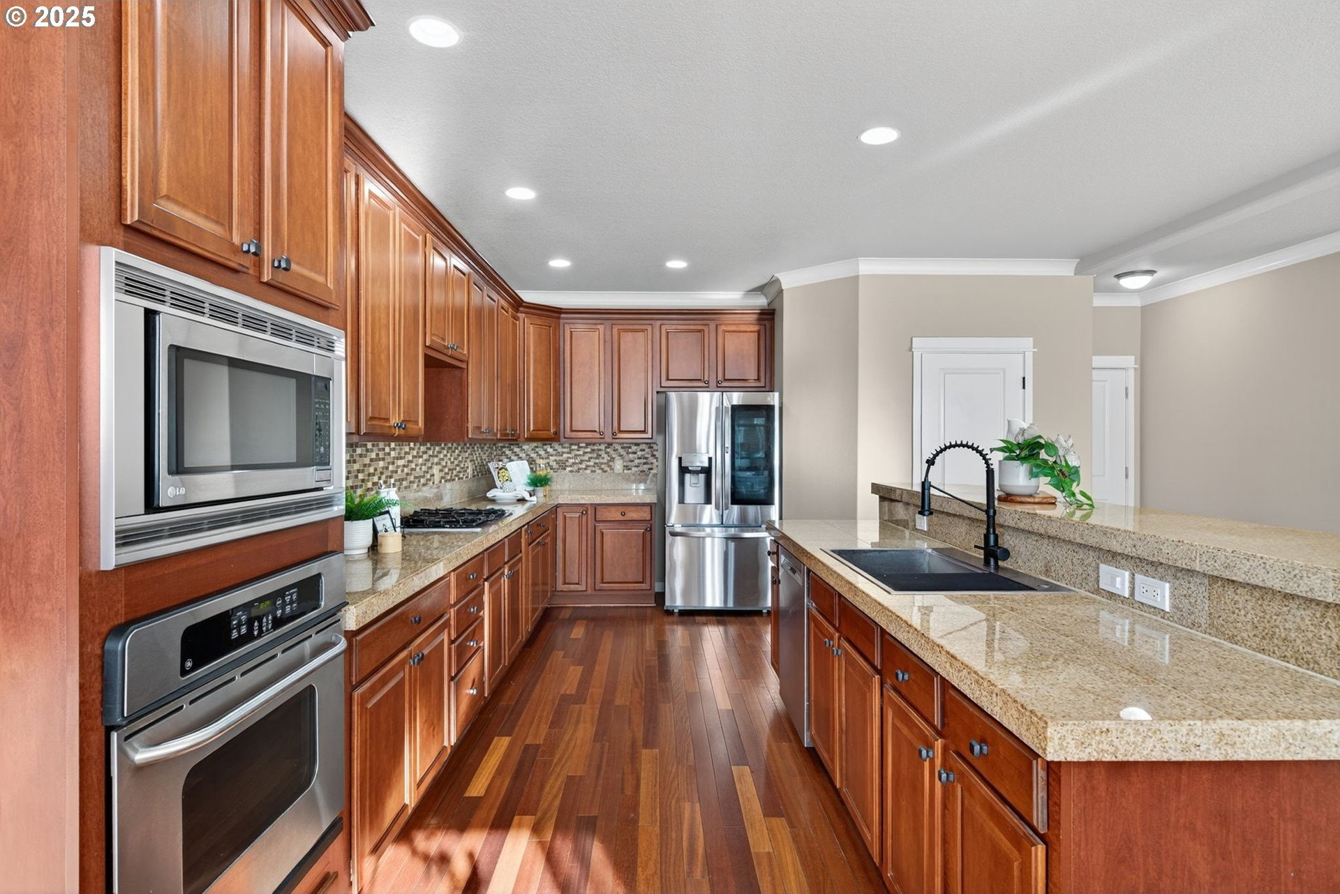 This stunning and spacious Happy Valley home has everything you have been looking for: a large and versatile floorplan, located on a generous sized corner lot with a big and beautiful backyard. Move-in ready, this home has space for all of your needs and plenty of room to grow. You will love the expansive great room and living rooms plus the den on the main (which could also double as a guest room with a full bath on the main level as well). Upstairs you'll find the primary suite plus three more bedrooms and two bonus rooms - one that could be the perfect playroom or media room and the other, a generous sitting room off of the primary suite to use as you wish (sitting area, gym, office space, yoga sanctuary - so many possibilities!). The open gourmet kitchen is a cook's delight, and is both practical and perfect for entertaining, with an eating bar and pantry plus stainless appliances. Other feature include hardwood floors, central A/C, two gas fireplaces, built-ins, and high ceilings. Recent updates include newer HVAC (both furnace and AC units, there are two of each), newer water heater tank and newer gutters and landscaping. Homes with this type of space usually take up 3 levels - so it is delight to accommodate everyone on two levels, with convenient laundry on the upper level, too. Relax and enjoy life in the gorgeous outdoor living area, with an easy care turf backyard, and a stamped concrete patio that is stunning and allows for easy care. Attached 3-car garage provides many storage options. Prime location in the desirable Jackson Hills neighborhood, close to amenities, easy transportation options and with excellent schools. Everything you need is here at SE Pebble Beach Dr - make an appointment to see this gem today. EXCELLENT VALUE, MUST SEE!