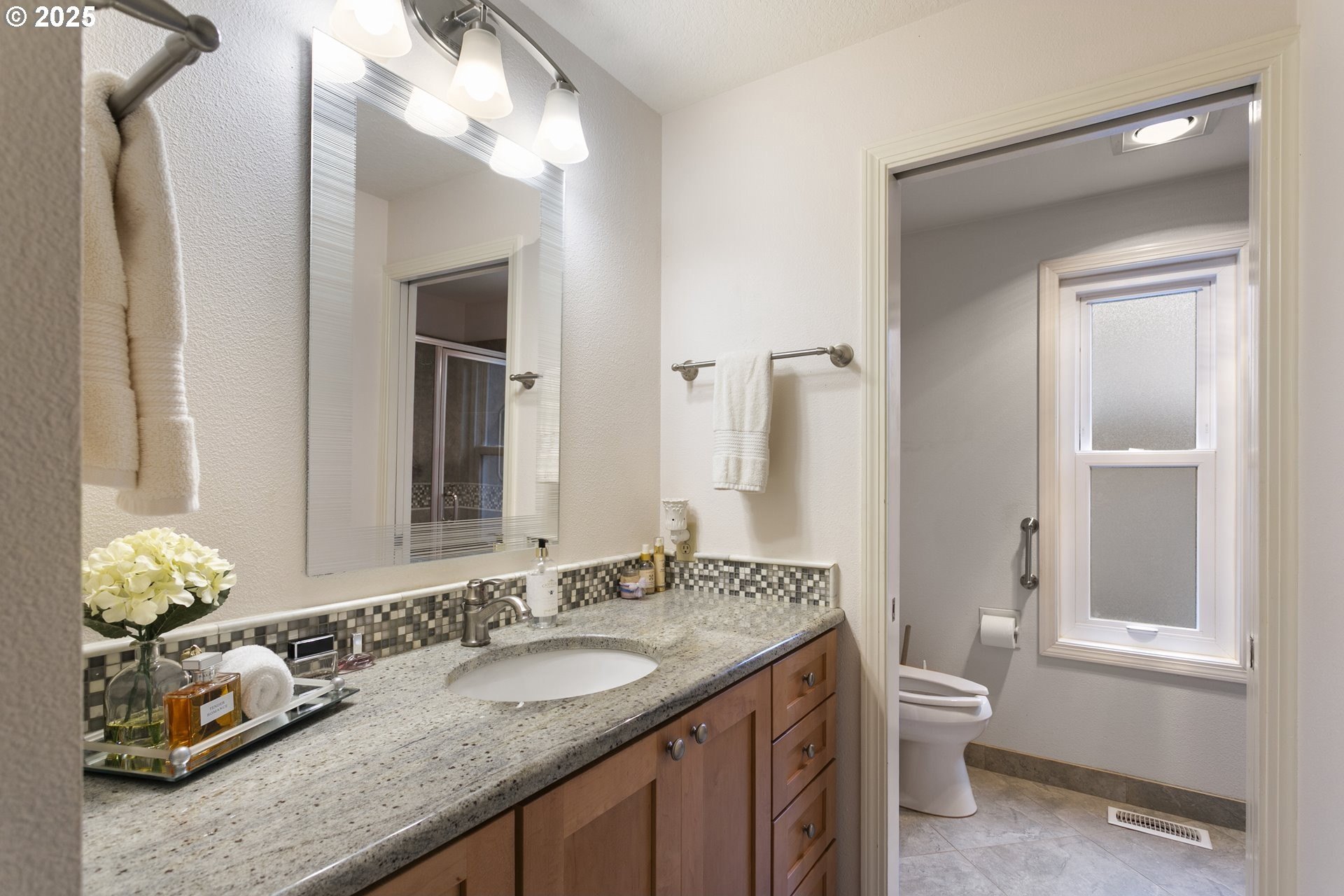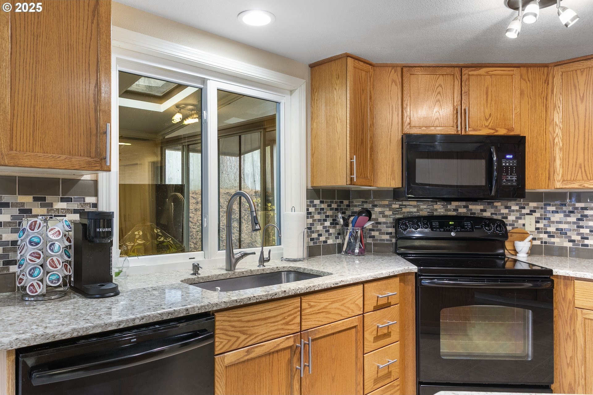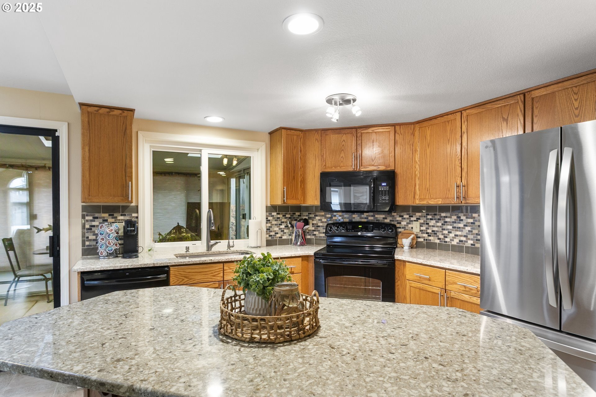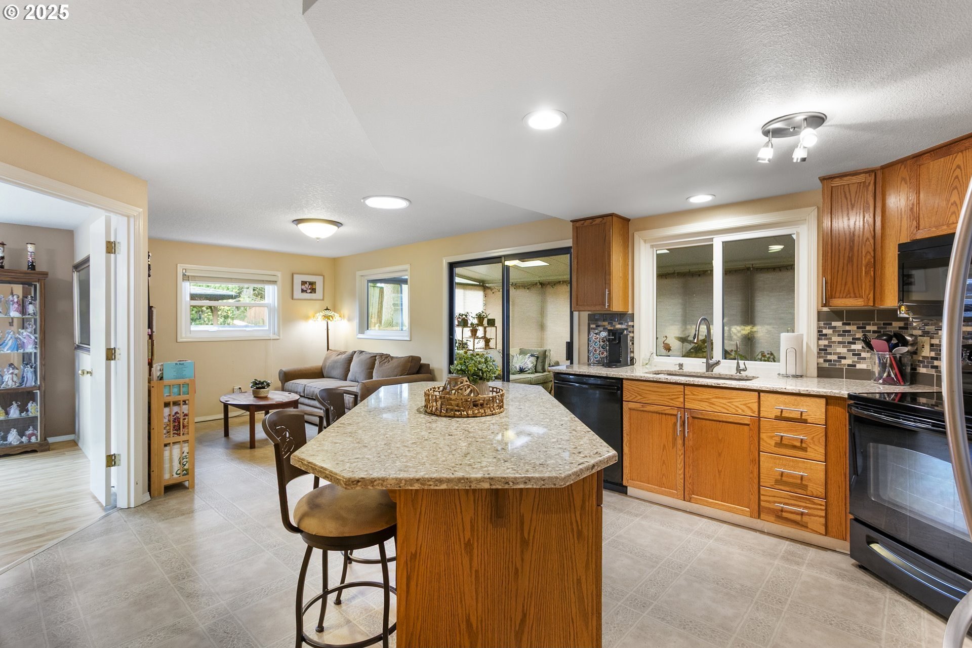 Looking for a low-maintentance, move-in ready home in the desirable Fairway Village 55+ golf course community? This enlarged, sunny, sought-after Salishan floor plan boasts a formal living room and dining room PLUS a family room off of the remodeled kitchen. Beyond the family room and kitchen is an attached sunroom with natual skylights! (Perfect for growing your herbs year-round, enjoying outdoor living without flying pests to bug you!) Space for puzzles, craft projects, exercise equip, daybed for reading, or use for an extra guest!). The inviting entry area has a very large coat closet. Lovely living room with vaulted ceilings, Palladian windows and cozy gas masonry fireplace! Plenty of space in the formal dining room for all your dinner guests. You'll be pleasantly surprised by the extra-large open gourmet kitchen with granite countertops and backsplash, large island eating bar, newer appliances, undercabinet lighting, pantry area, and office desk for your computer recipes! Adjoining cozy family room will keep it fun! The primary suite has a walk-in closet, and extra-large updated walk-in shower with nice glass doors. The guest bath has granite countertops and a tub/shower with glass sliding doors. Extra bonus is a built-in hand-crafted butlers pantry or wine collection area with pull out drawers, upper cabinets and countertop! Enjoy! Oh, and there's an easy care low maintenance, very private fenced backyard and comes with a garden tool shed! (In 2013: NEW roof & gutters, windows, furnace, hot water heater, solar tubes, lighting fixtures, tiled master walk in shower.). Fairway Village is a 55+ planned community with a clubhouse, scheduled activities, exercise, sauna, swimming pool, billiards, ping-pong, arts and crafts studio, ballroom, Library, meeting/event rooms, and more!