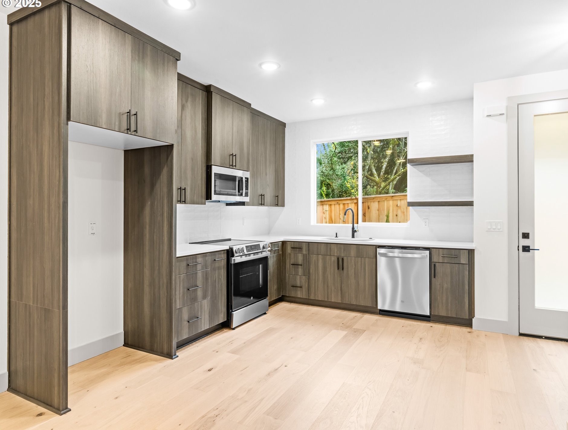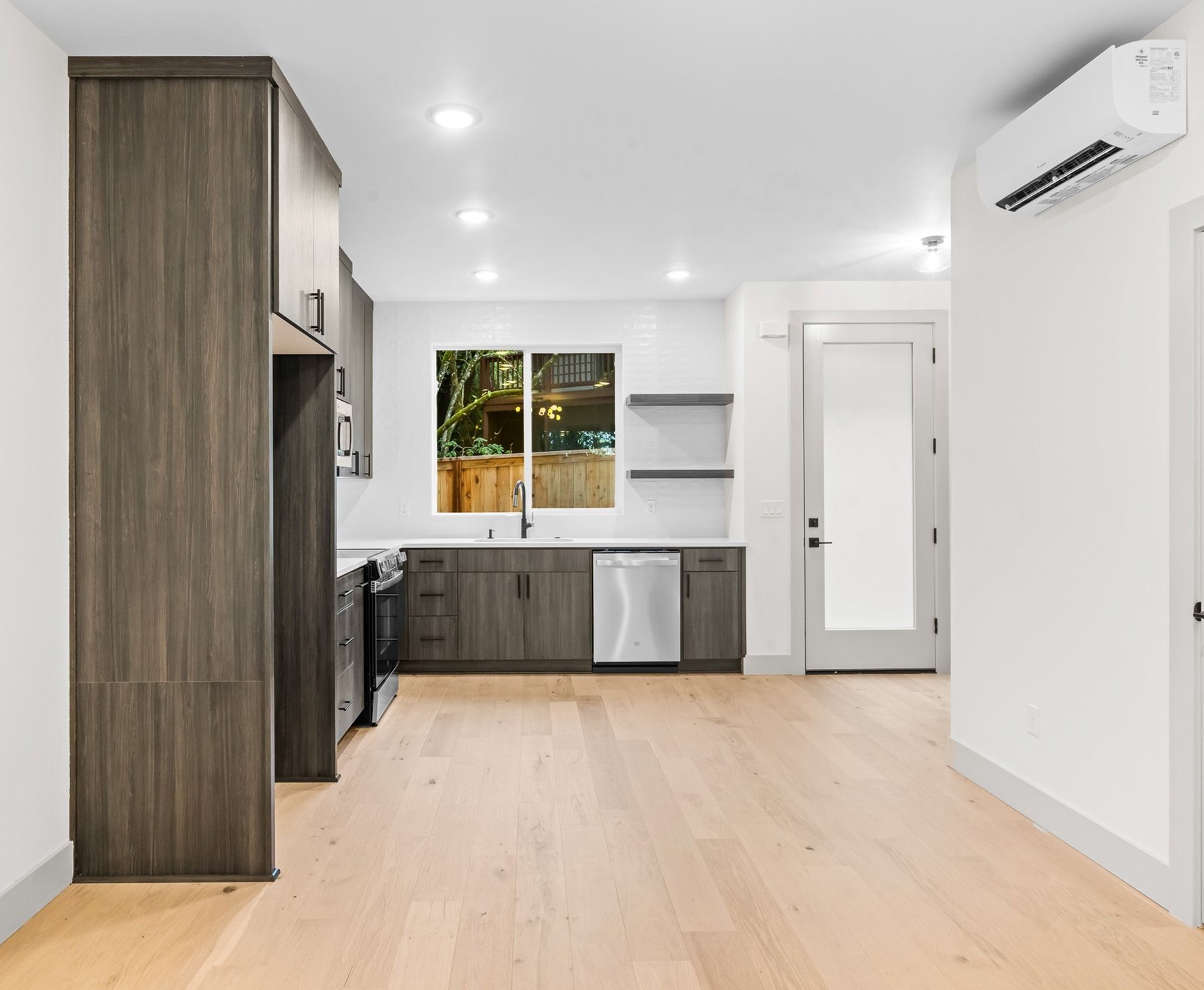 I'm a brand-new attached home in Portland's Far Southwest neighborhood, offering 2 bedrooms, 2 1/2 bathrooms, and 932 square feet of efficiently designed space. My high ceilings and open main level create a bright, welcoming feel the moment you step inside, with room for a comfortable living area, everyday dining, and a modern kitchen that keeps everything connected. Upstairs, both of my bedrooms are true ensuites with their own bathrooms, giving everyone a private retreat. The main-level powder bath is handy for guests, and smart storage helps keep life organized. I'm equipped with efficient mini-splits for year-round heating and cooling, keeping daily living comfortable and practical. My private balcony spaces extend your living area outdoors for morning coffee, fresh air, or a few potted plants. Beyond my walls, Far Southwest offers a quieter residential setting with convenient access to major routes, Tigard, and Lake Oswego. You're close to local spots like Maplewood Coffee & Tea, and just a short drive from the restaurants and bars of Multnomah Village, including Zinc bistro+bar and Bar 3. Nearby parks like Spring Garden Park, Gabriel Park, and the trails at Tryon Creek State Natural Area, plus Portland Community College's Sylvania Campus, add even more options for recreation and community. And unlike many other new construction homes, I'm not a condo and have no HOA fees-you own the underlying land. My list price is for buyers eligible for the Portland Housing Bureau's System Development Charge (SDC) Exemption, an initiative promoting affordable housing across the City of Portland; if you're not familiar with this program, contact my people-they're experts.