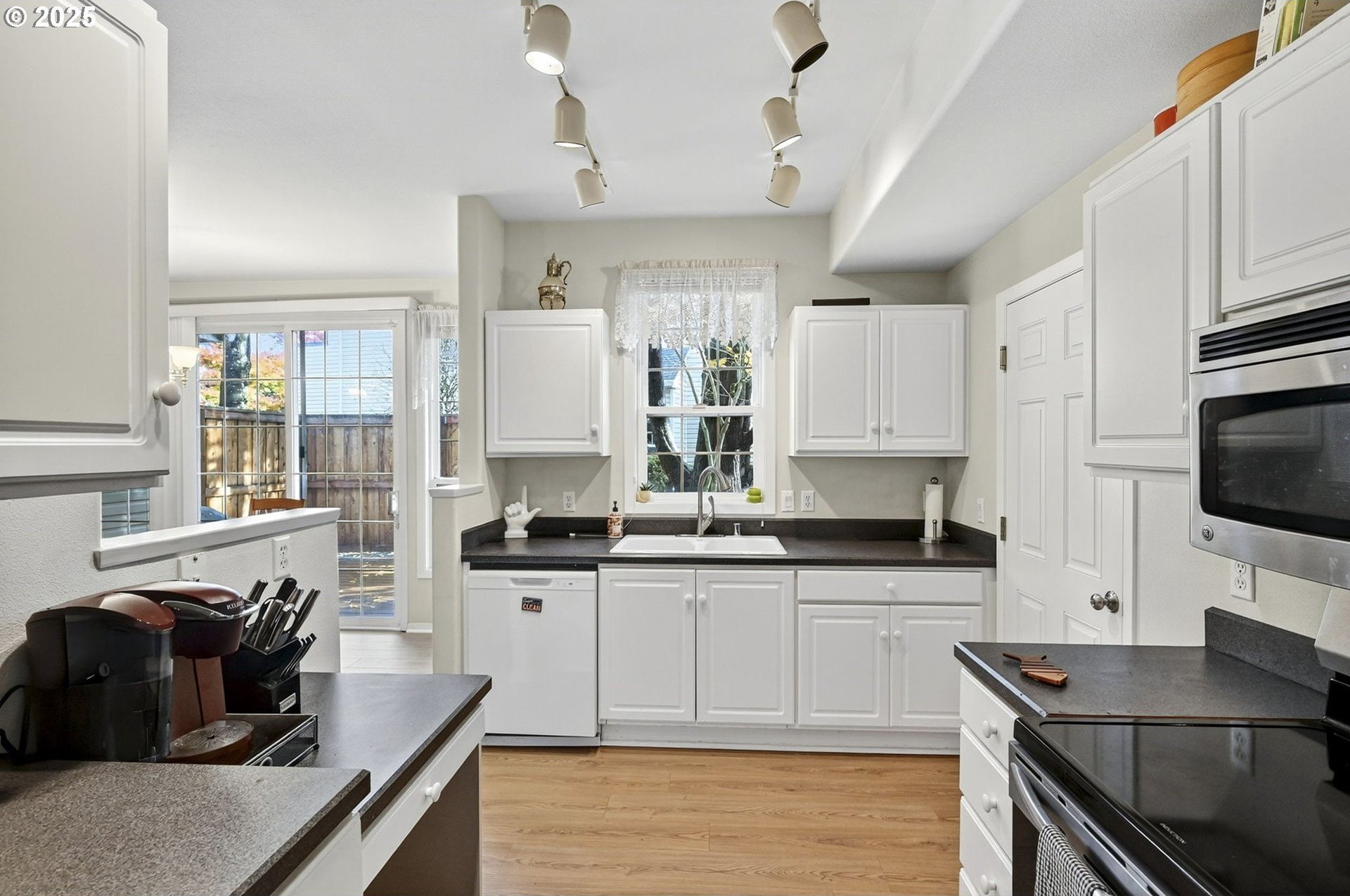 Light, bright & updated! This unit provides all the best aspects of condo living: exceptional location close to freeway entrances, shopping, restaurants, and schools. The private, gated community is well-maintained and very walkable, as is the surrounding neighborhood. Get your steps in while enjoying the lush landscaping and nearby amenities...just a 5-minute walk to the new In-N-Out Burger on Mill Plain! This ground-floor unit includes an attached one-car garage with additional storage space (ADA parking space is also nearby). It also features beautiful, brand-new vinyl flooring throughout making clean up and maintenance a breeze. The water heater, dishwasher, induction stove and decks with privacy screening off the dining room and primary suite have all been recently replaced too! High ceilings throughout allow light to flood in all through the home, providing an open, airy feel that's so hard to find, especially on the ground floor; your plants will love it! Lots of storage available too in the various closets, including the large walk-through in the primary suite, and the double closet in the second bedroom. This condo provides a unique, accessible opportunity for home ownership and is a great size for a single person, couple, or family. The community is respectful and quiet, so it's also a perfect match for folks working from home offices. As if all of that wasn't enough, the condo is also rentable, so makes for a great long-term investment. Enjoy this spacious, quiet, comfortable condo and the amazing lifestyle that comes with it! Be sure to watch the Virtual Video tour all the way to the end for a sneak peek of a special friend you can meet when you come tour this beautiful home!