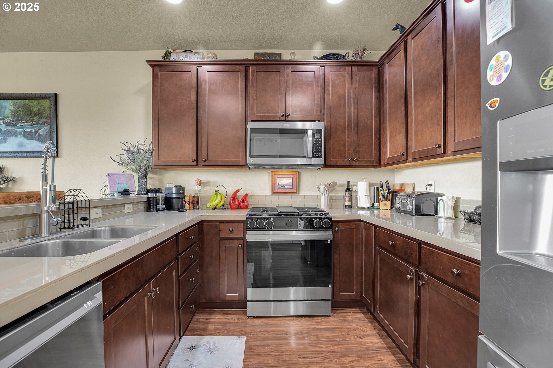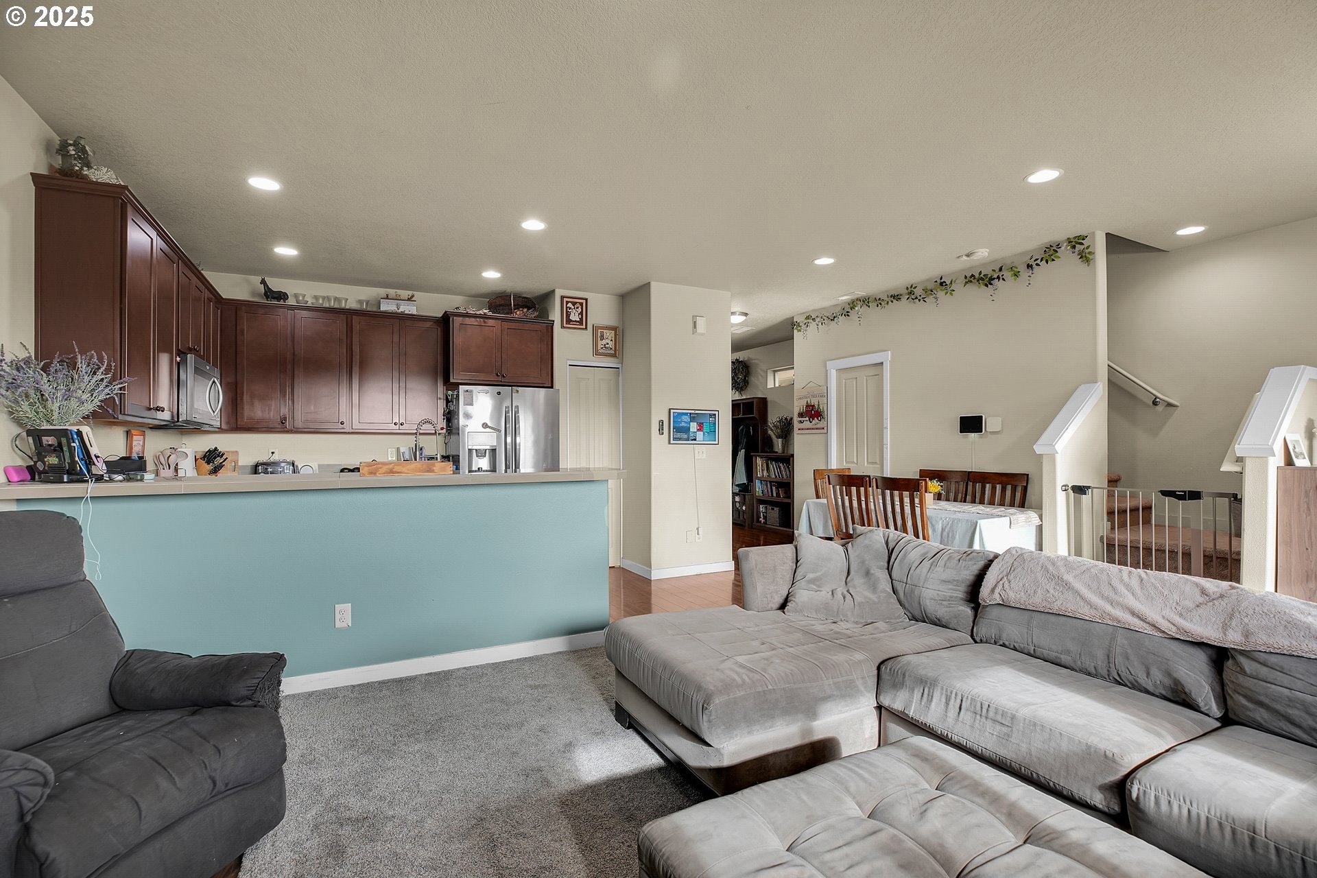 Welcome to small town living in North Plains with quiet streets and wide open country views. This 3 bed, 2.5 bath home has 2230 sq ft of living space, including a full third floor bonus area. The main level has an open living and kitchen layout with a gas fireplace, eating bar, and a nook style dining space. The kitchen has stainless steel appliances, including a new gas range, new dishwasher, and new overhead microwave. The second floor includes two bedrooms plus a primary suite with French doors, a walk in closet, double sinks, and a walk in shower. The entire third floor is a large family or bonus room, giving lots of options for play, office, media, shared space, or storage. Upper floors look out over nearby farmland, and the fenced backyard has a covered patio for year round outdoor use. The roof was replaced in 2024. All appliances stay, including the washer and dryer. Oversized 1 car garage provides extra storage space. This location is a short drive to Hillsboro, tech hubs, shopping, schools, and parks, while still feeling quiet and country. Bring your ideas and make this home work for you.