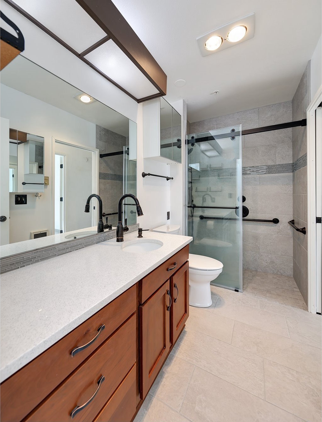 UPDATED/REMODELED & Move-In Ready, 1 Level Home & Your Own Detached Private Single Car Garage #28. A Lovely Place to Call Home! Many Updates Throughout. Newer Kitchen Cabinets, Slab Quartz Counters, Stainless Kitchen Appliances All Stay, Updated Newer Neutral Tasteful Decor Throughout, Extensive Elongated Neutral Tile Floors, You'll Love the Remodeled Walk-in [Curb-Less] Custom Tile Shower, Newer White Bathroom Cabinets & Slab Quartz Counters. Private Bedroom has Spacious Closets. Direct Private Access to your Own Patio & Secured Courtyard. Elevator in Main Building. HOA includes: 14 Chef Prepared Meals per Month; Water; Sewer; Garbage; Basic Cable TV; Game Room; Gym; regularly Scheduled Shopping Private Bus Transportation; Laundry Room; Library; Hair Salon & More!