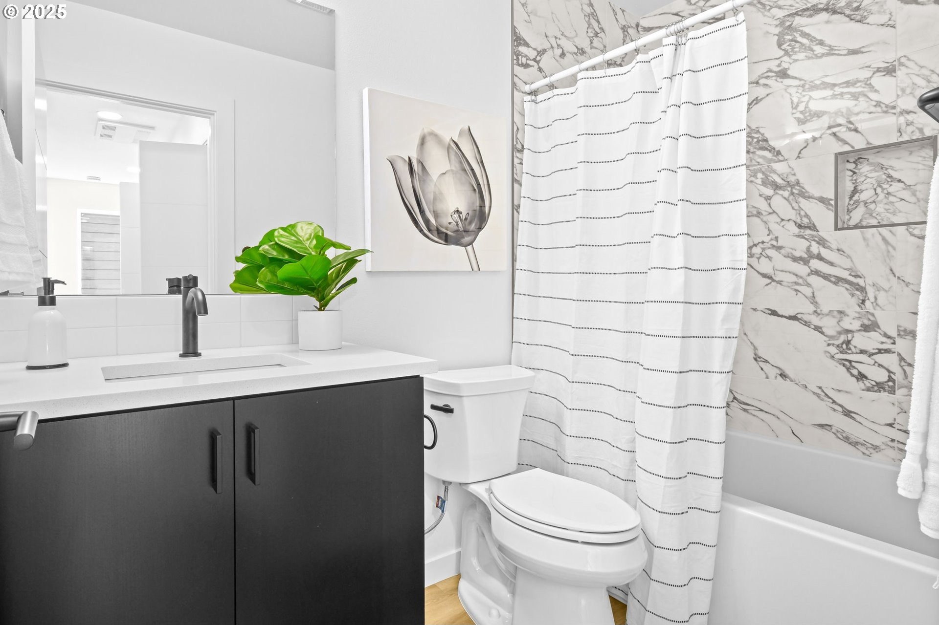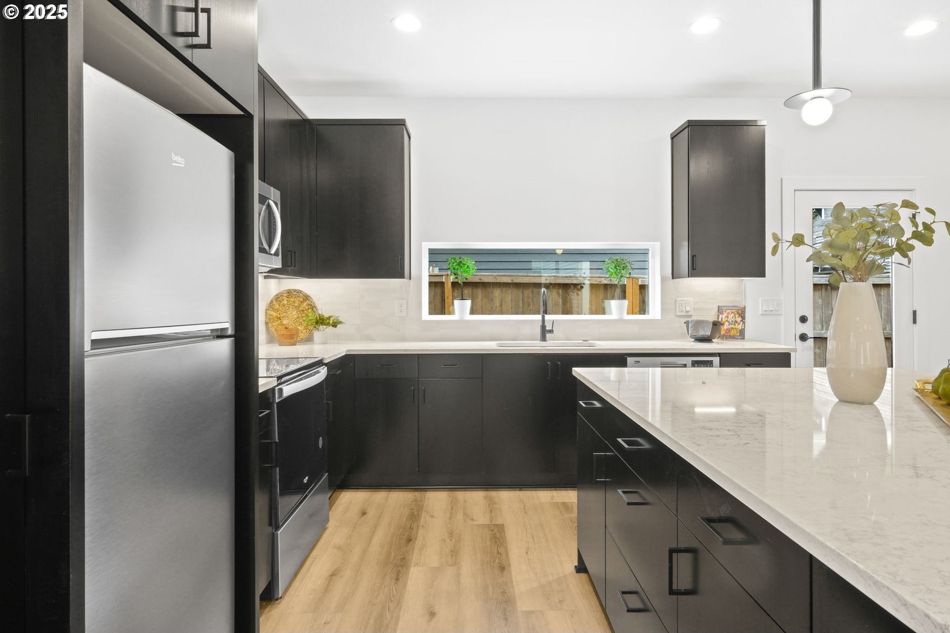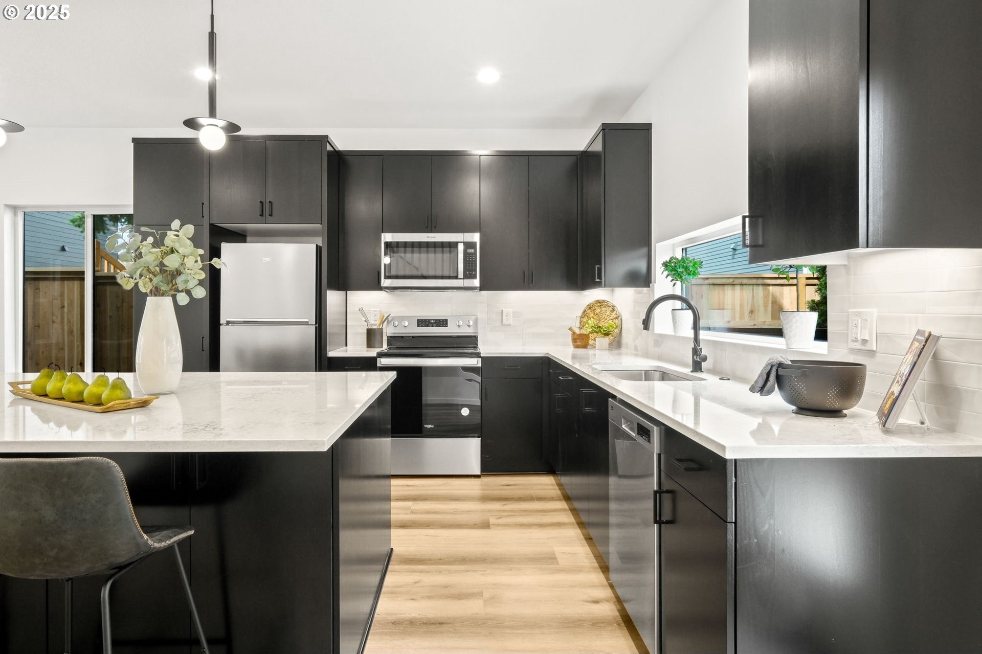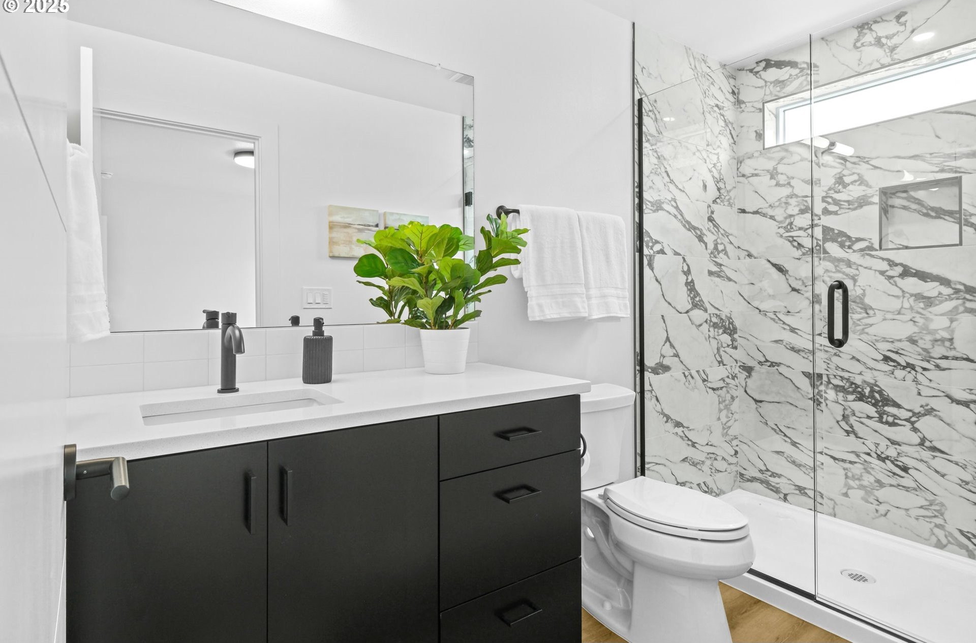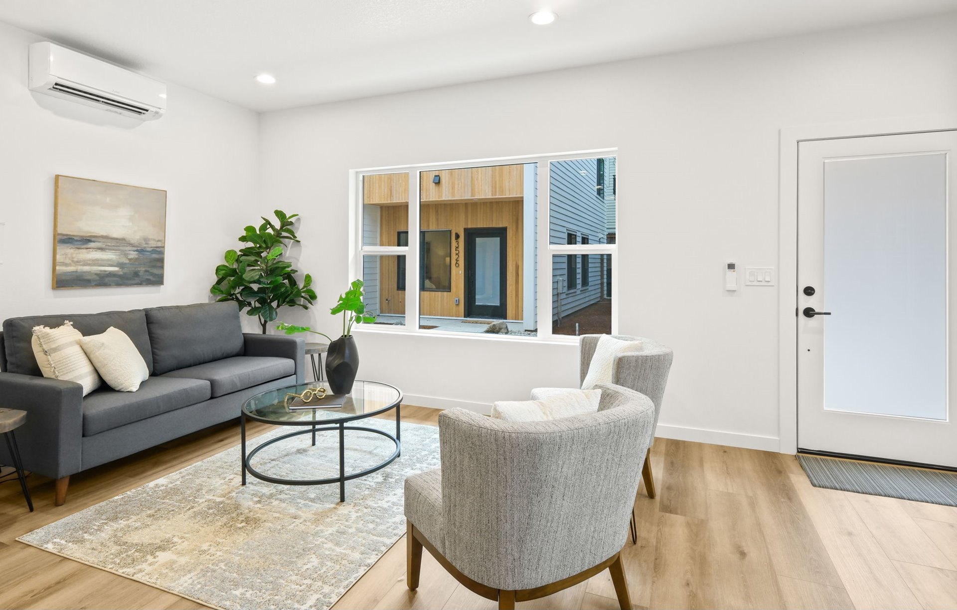 Welcome to Beaumont Bostads, a thoughtfully designed Cottage Cluster Development nestled in the coveted Beaumont-Wilshire neighborhood of NE Portland. This 3-bedroom, 2.5-bathroom home blends modern Scandinavian aesthetics with the warmth of community living-while offering the privacy and independence of a fee simple home on its own lot, with no HOA. Meticulously crafted with custom design elements and high-end finishes, this home features Earth Advantage Platinum certification, ensuring sustainable living with superior energy efficiency. The interior boasts premium stainless-steel appliances, sleek cabinetry, and refined details throughout.Unwind or entertain in the private back yard patio, a rare luxury in this walkable urban enclave. Just steps from vibrant Fremont Street shops, cafes, and parks, this home delivers the perfect mix of style, comfort, and convenience.