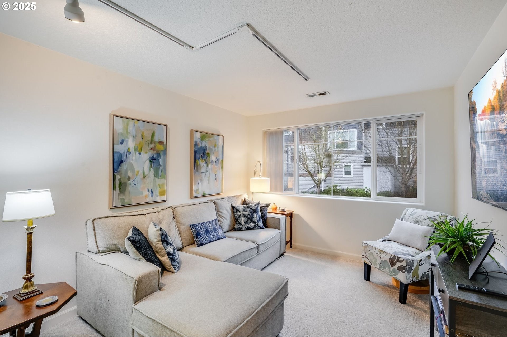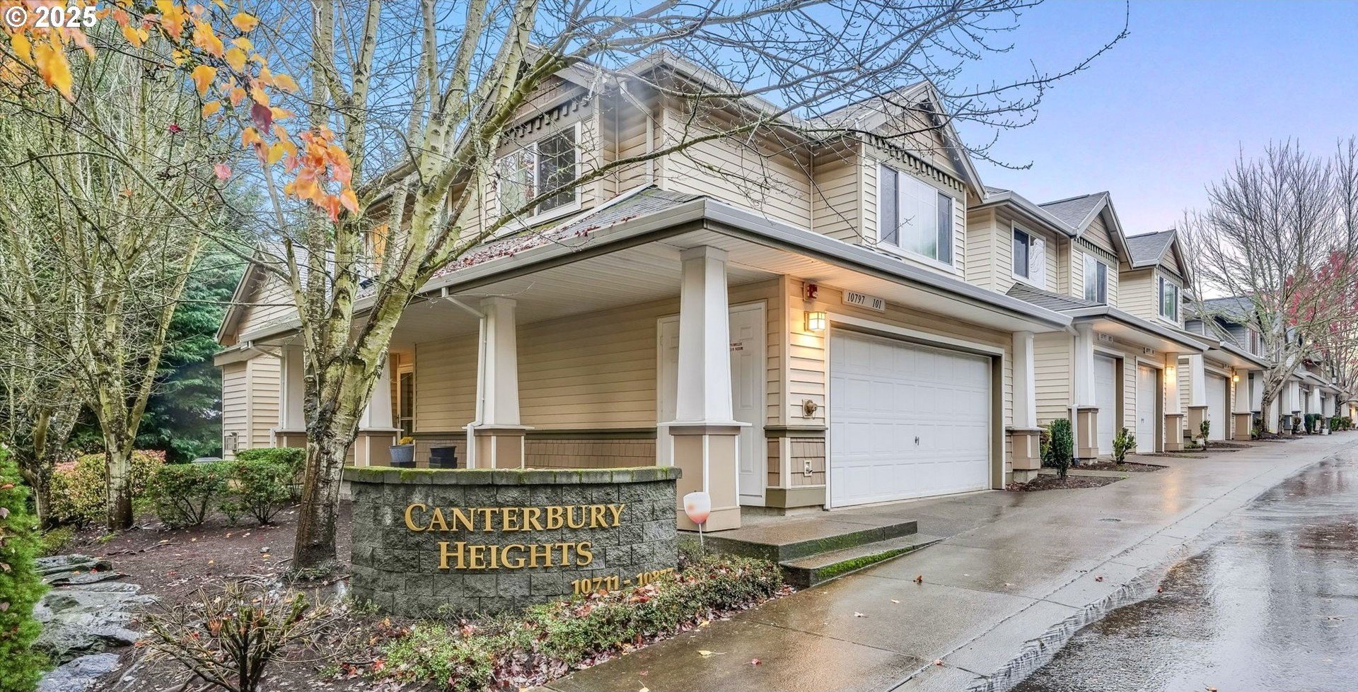 Welcome to your beautifully updated end-unit townhome nestled in sought-after Canterbury Heights! This 3-bed, 2.5-bath home offers the perfect blend of luxury, comfort, and convenience. Enjoy the brand-new Whirlpool refrigerator and Samsung stove, plus a new washer and dryer and fresh interior paint throughout. The main level features fresh carpet, high ceilings, and dual living spaces, a formal sitting room and a cozy living room with a gas fireplace and expansive windows. The sleek kitchen with stainless steel appliances opens to a private patio ideal for entertaining. Upstairs, the spacious primary suite offers an expansive walk-in closet with a full bath including 2 showers and bright natural light, complemented by two additional bedrooms and a full bath. Complete with central A/C, a two-car garage, and a low-maintenance lifestyle, this home is move-in ready and designed for those who appreciate quality and ease in every detail.