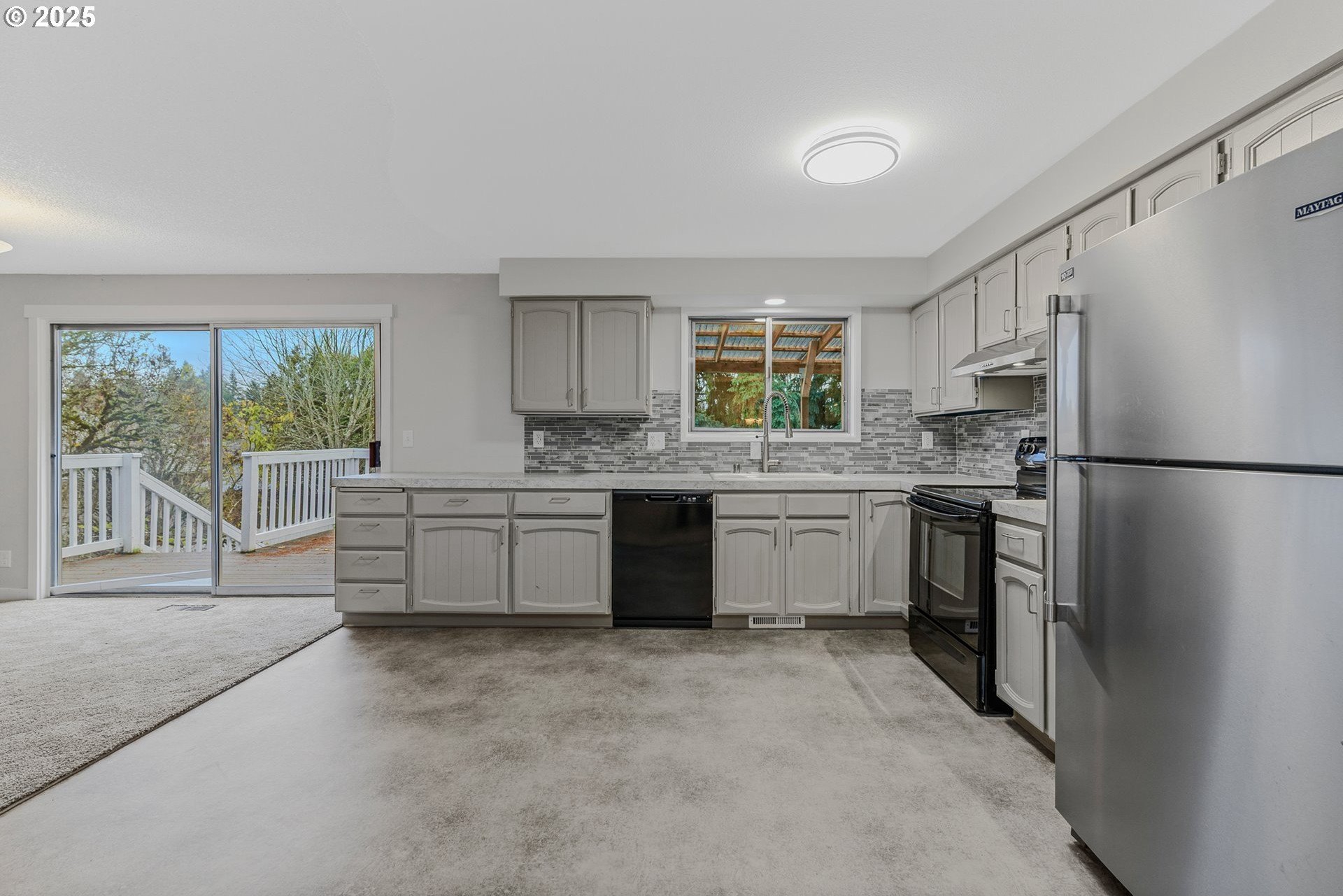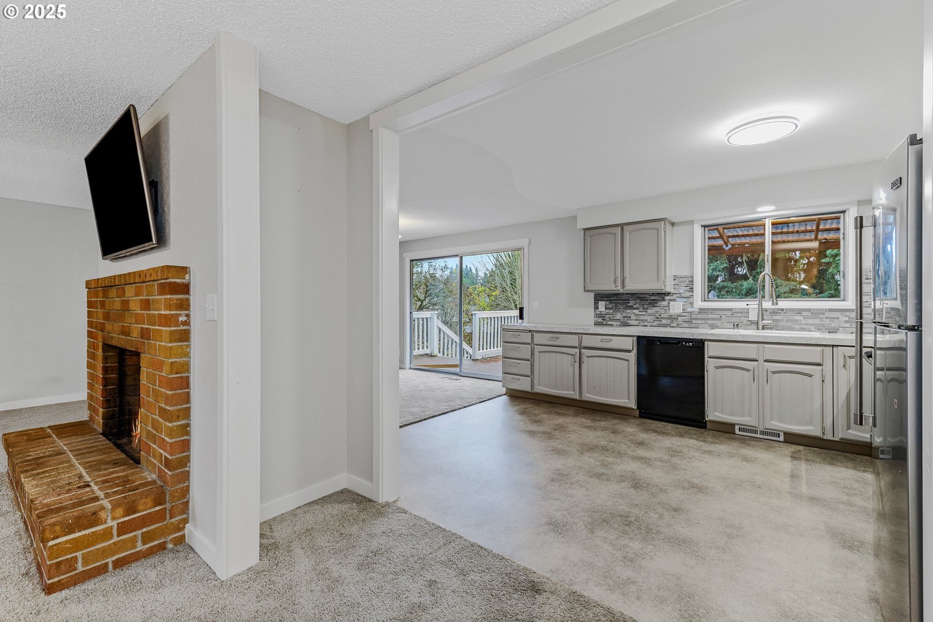 Step into stunning. This beautifully maintained 4 bedroom, 3 bath, 2,385 sq. ft. home showcases thoughtful updates throughout, including modern flooring, fresh paint, upgraded millwork, and new interior doors. The renovated kitchen and bathrooms feature stylish backsplash tile, updated countertops, and contemporary flooring.The spacious living room offers a warm and inviting atmosphere with a wood burning fireplace, wall-to-wall carpet, and large windows that fill the space with natural light. Upstairs, you'll find generously sized bedrooms each comfortable enough to accommodate a king-sized bed.The main floor primary suite includes a private bathroom with shower, charming barn style doors, and direct access to the expansive covered back deck perfect for morning coffee or evening relaxation. The fully finished basement adds incredible versatility with its own exterior entrance, fireplace, and full bathroom with shower, ideal for multigenerational living, guests, or a private retreat.Step outside to enjoy the large covered deck overlooking a spacious, fully fenced backyard complete with an enclosed tool shed. An oversized two car garage provides abundant shelving and storage for all your needs