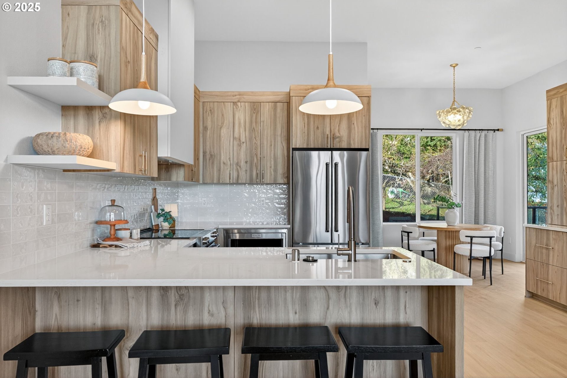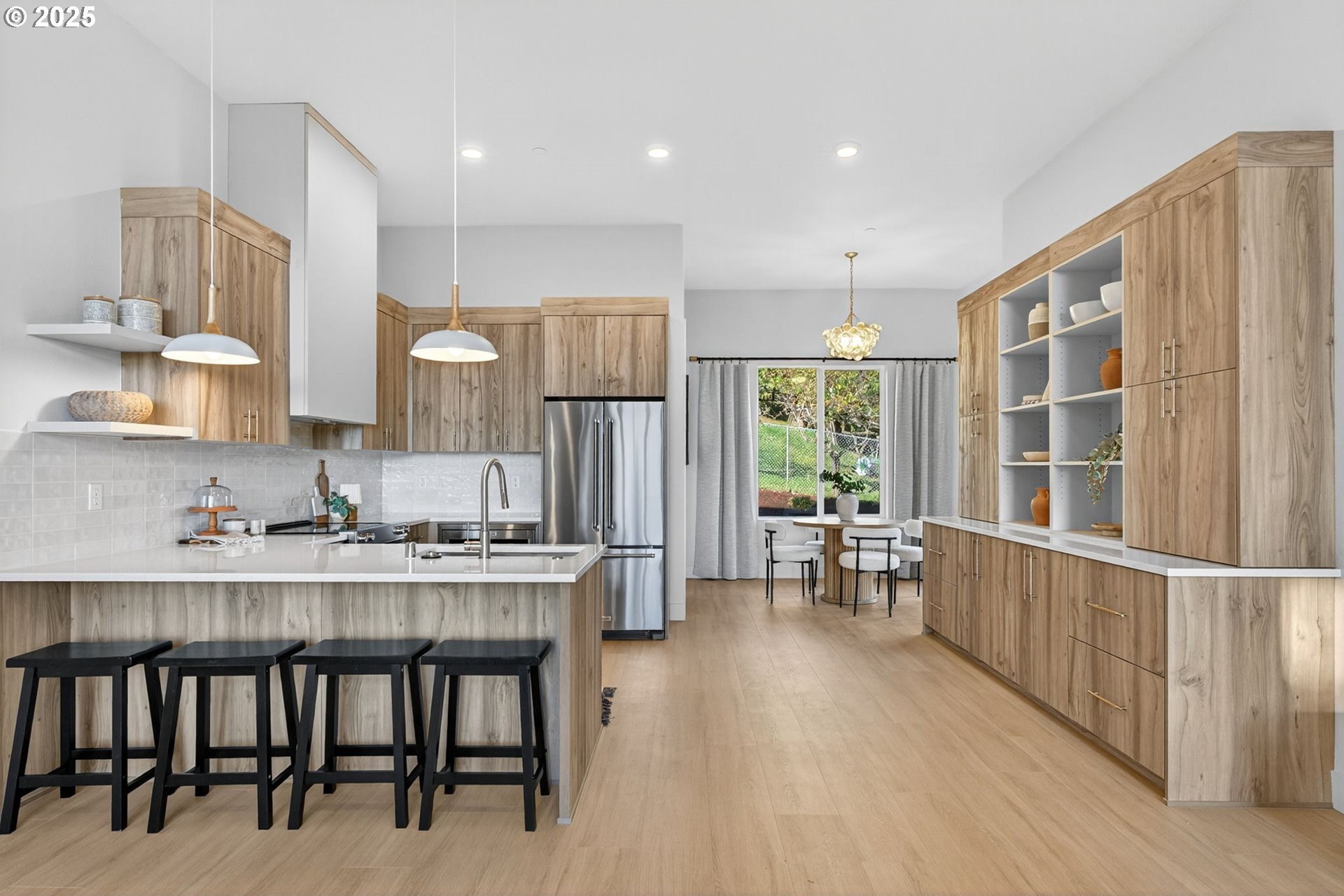 Custom Beautiful Modern home in View Point Terrace Neighborhood. Boasts a Spacious and inviting living room with lots of Natural lighting, perfect for both relaxation and entertaining. Chef will love kitchen island w/generous counter space and extra cabinet space, soft close cabinets, quartz Counters & backsplash, stainless steel appliances. 3 bed 2 bath, luxurious Master bedroom, Tiled walk in shower and spacious closet. Latest In Material & Design, Spacious 3-Car Garage. Large Covered Patio, big yard ,sprinkler system in front, back yard & Fenced. Stunning Views of Mount hood and Columbia River. Convenient, Location is key, Camas School District.Open House Monday, Tuesday, Wednesday December 1,2,3 from 2:00pm-4:00pm