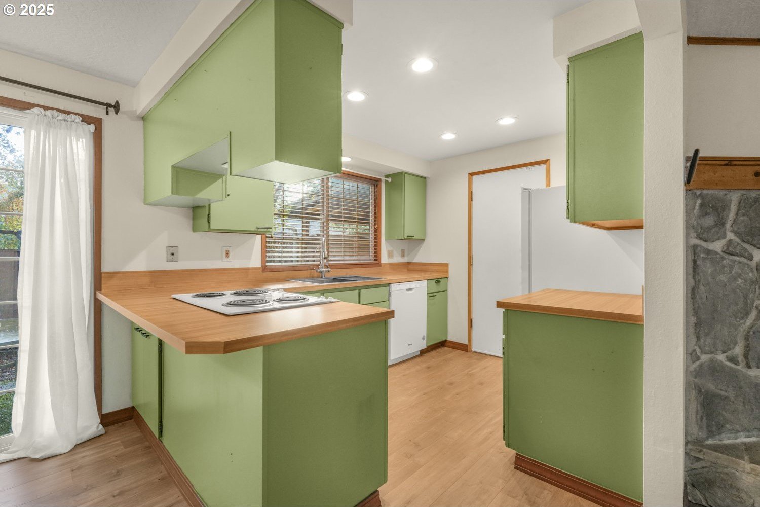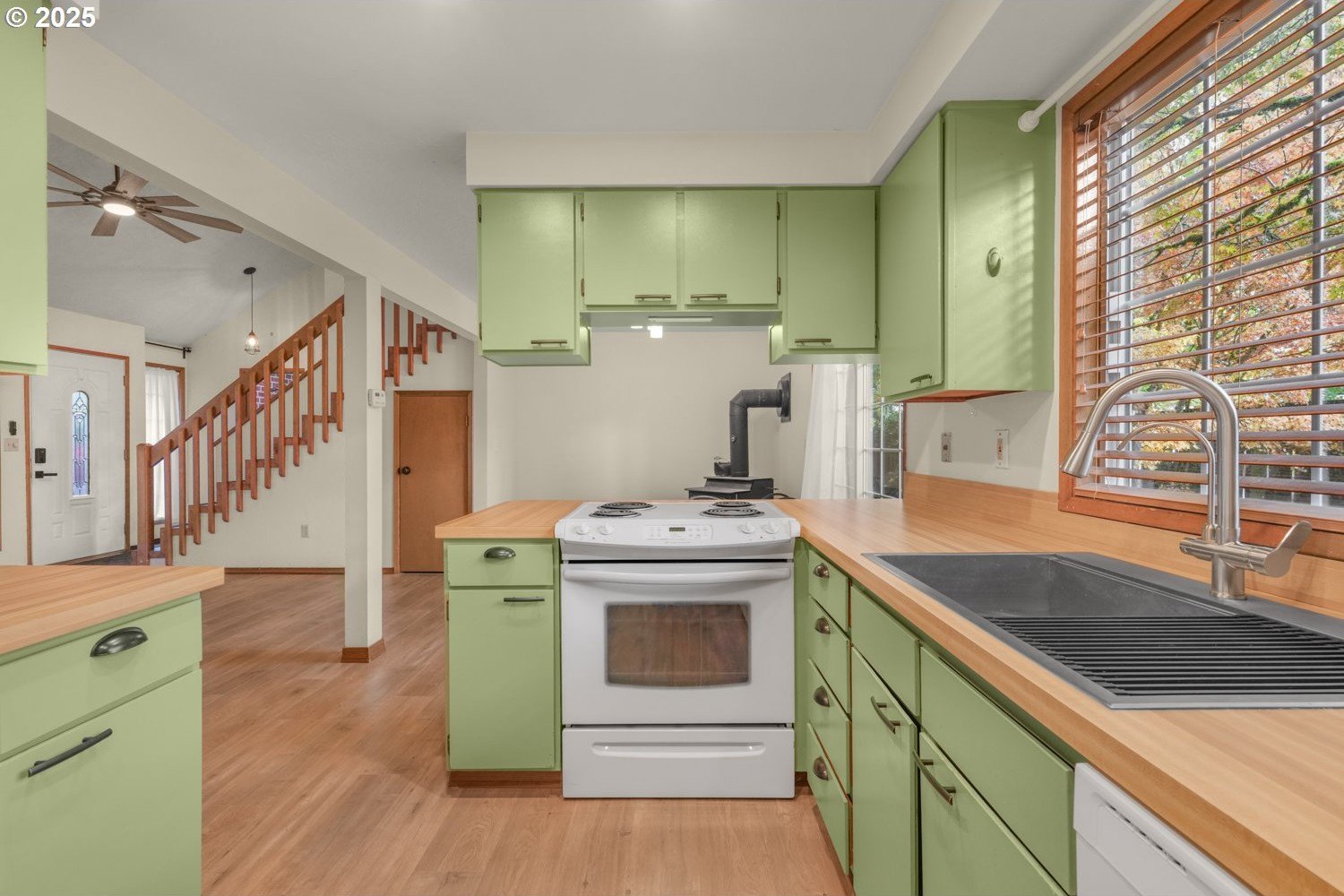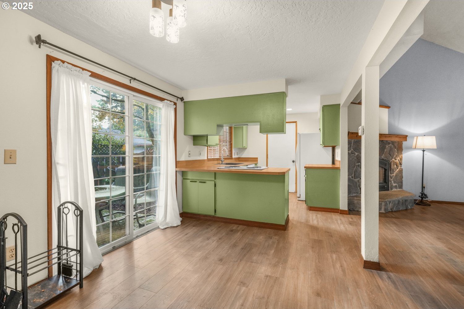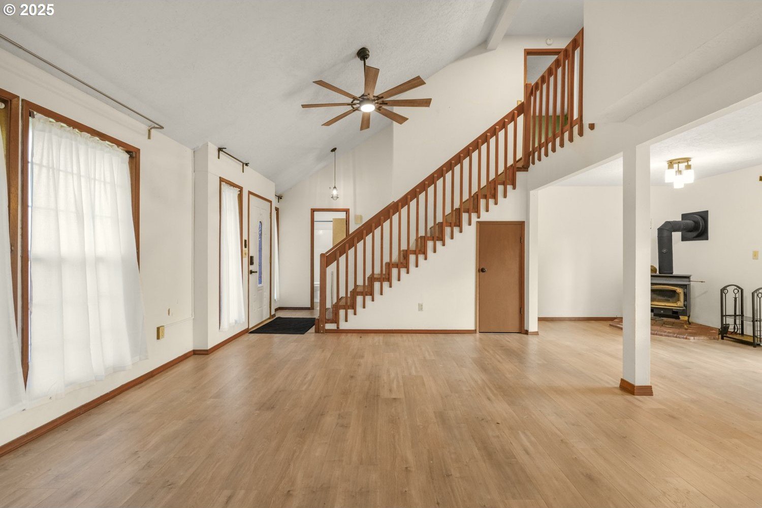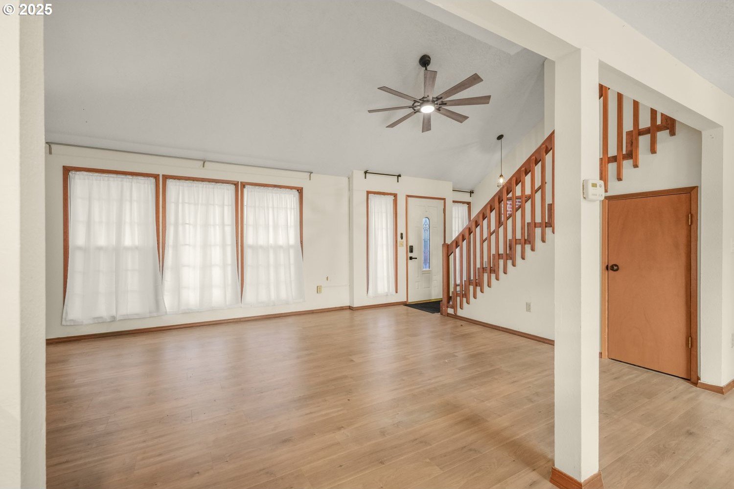 Move-in Ready Gem on Private Flag Lot! Tucked away on a peaceful flag lot, this 3-bedroom, 2-bath home sits on a generous .22-acre lot and offers an inviting open-concept layout. The spacious, bright living room features vaulted ceilings and a stunning stone fireplace, flowing seamlessly into the dining area with sliders leading to a sunny patio that's perfect for indoor/outdoor living. The main-level primary suite includes sliders to a covered patio and an expansive deck ideal for morning coffee or evening relaxation. Upstairs, you'll find two comfortably sized bedrooms and a full guest bath. The large, fenced backyard is designed for entertaining with multiple outdoor spaces, a patio, covered patio, and deck, all ready for gatherings or quiet enjoyment. Recent updates include a replaced roof, new hot water heater, new sink, new living room fan, new refrigerator/freezer, and new washer and dryer. Conveniently located just minutes from dining, shopping, schools, and neighborhood parks, with a great bike score, this home offers comfort, style, and convenience all in one. ** [Home Energy Score = 6. HES Report