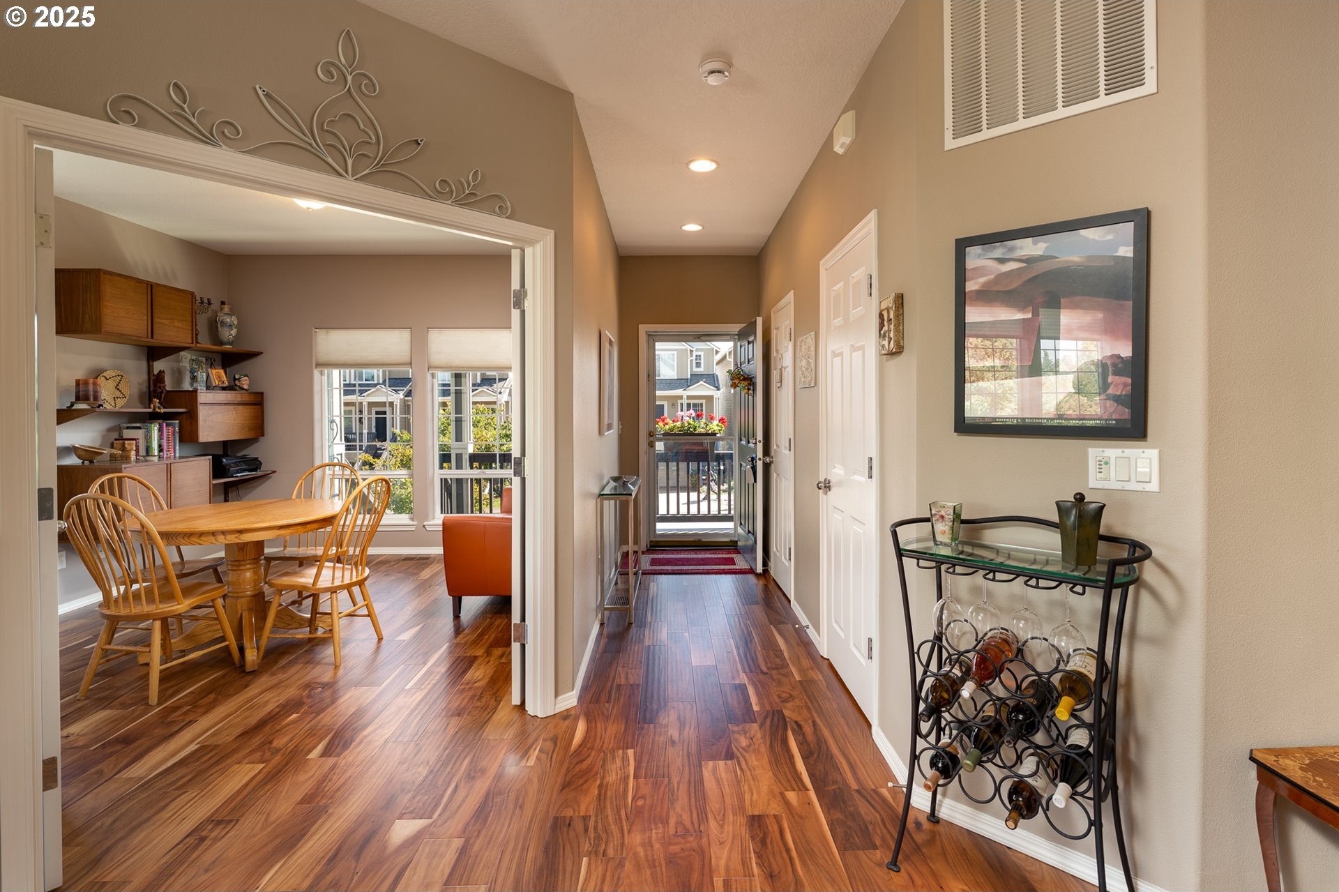 This is your chance to live in the center of West Linn, one of Oregon's most sought after locations, at a great price point. Enjoy the wide, walkable sidewalks and bike lanes throughout the neighborhood, that are perfect for exercise and walking to the grocery at nearby Safeway which is minutes away. Parks and schools and all amenities are nearby, providing you with the ideal local lifestyle. The lightly lived in home provides all of the interior room and green space that you would want from a single family, with the low maintenance and convenience of an end unit townhome. Front yard landscaping is managed professionally and the home received new exterior paint, gutters and roof in 2022. Light, airy and spacious describe the interior with vaulted ceilings and large windows with green views. The kitchen comes complete with tall cabinets, canned lighting, granite countertops, stainless appliances, and great extra storage in the pantry. Upper level loft area with built-in desk is the perfect place for your home office. Relax in the spacious primary suite featuring en-suite bathroom with dual sinks, marble countertops and a rain shower. There is plenty of space and privacy, with a lower level flex space that features high ceilings, luxury vinyl plank flooring and gas fireplace. Great outdoor space with deck overlooking backyard with water feature. This is a complete home that checks all of the boxes in a premiere location. A must see!