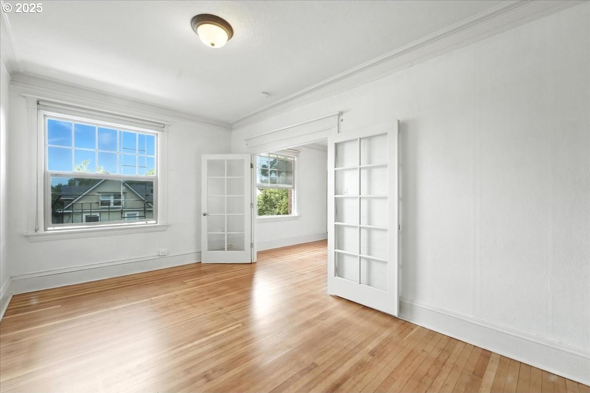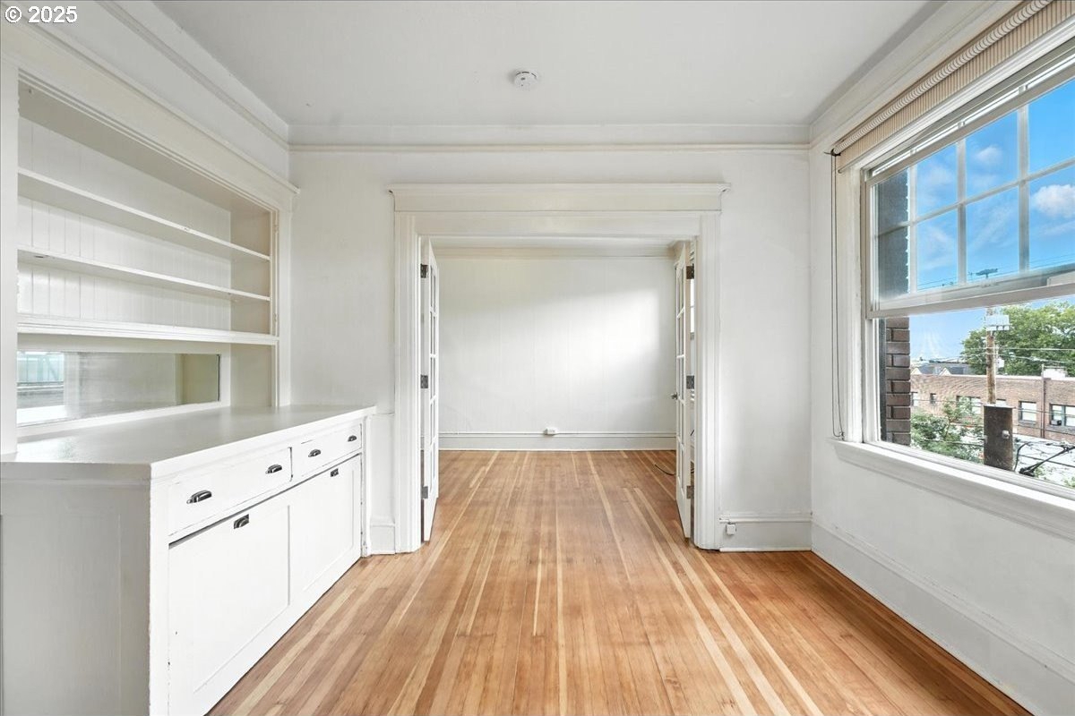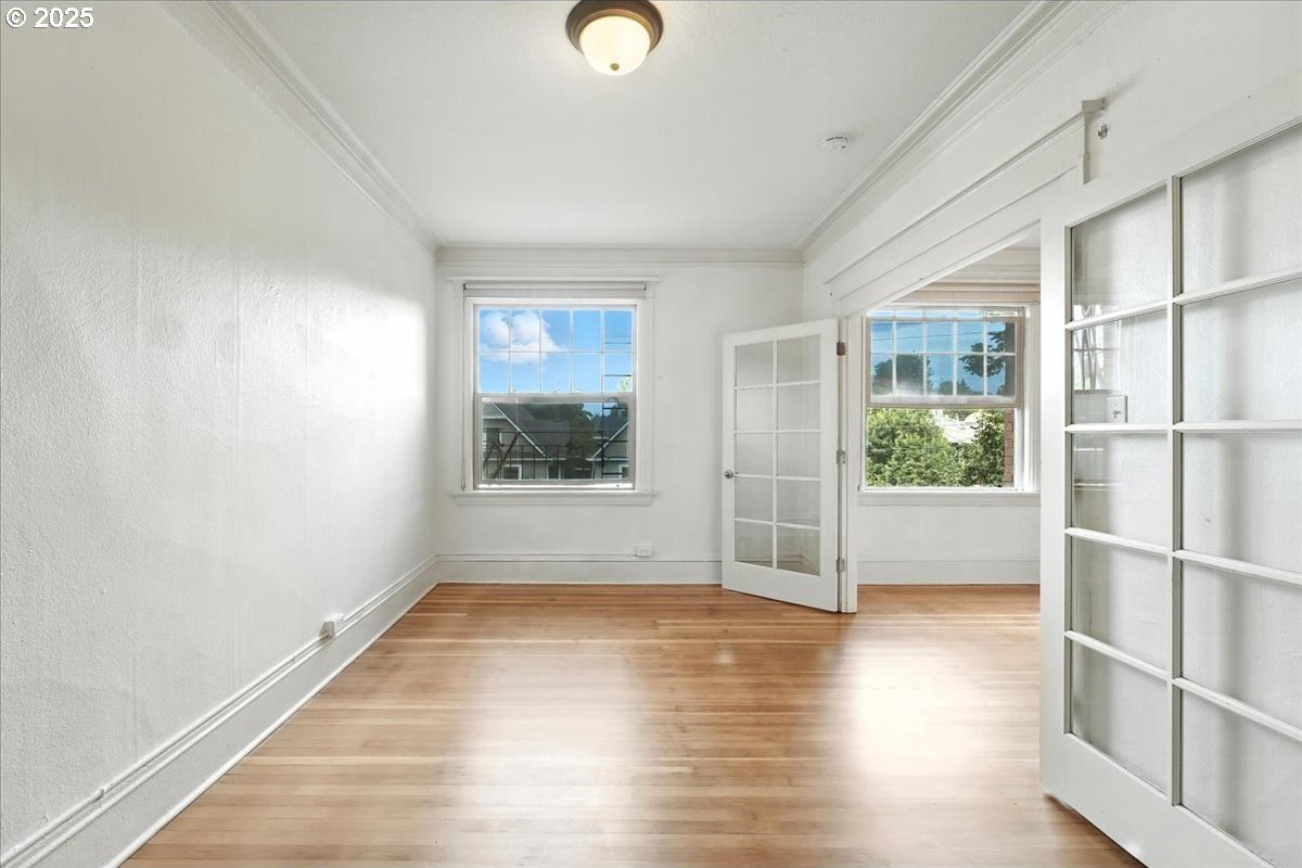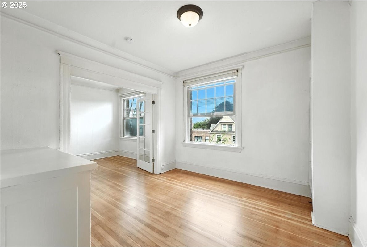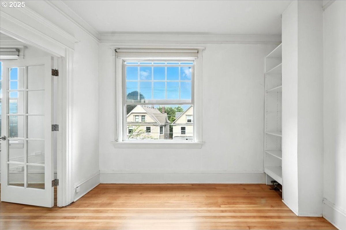 Charming Historic Condo with City & Mount St. Helens Views! THE best view in the building! This light-filled, east-facing condo in the Historic Alphabet District has period details throughout! High ceilings, crown molding, wood floors, and French doors. Features a gas fireplace, built-ins, a pull-out Murphy bed, and a resurfaced clawfoot tub. Freshly painted interior and refinished wood floors! Double-pane windows for comfort. Pet-friendly building with a welcoming entry courtyard, elevator, storage unit, bike storage, and laundry. Shared amenities are kept tip-top and the condo includes a unit in the storage area, lower level. Out your door you are a short distance to Providence Park and have many dining, coffee, and well known NW 21st and 23rd shops! Walk and Bikescore 98 - live the active lifestyle here! Parking found. Type B parking permit here: bit.ly/3BjnHM1