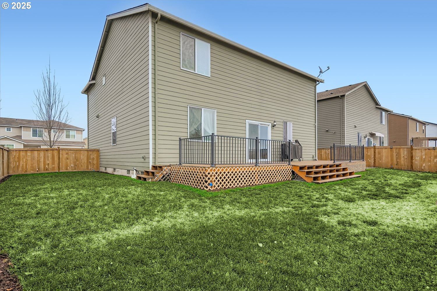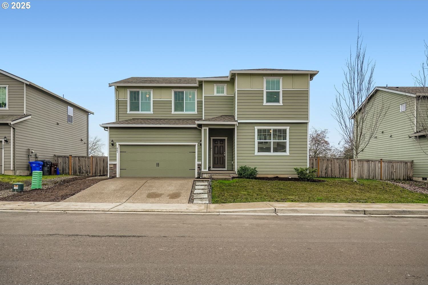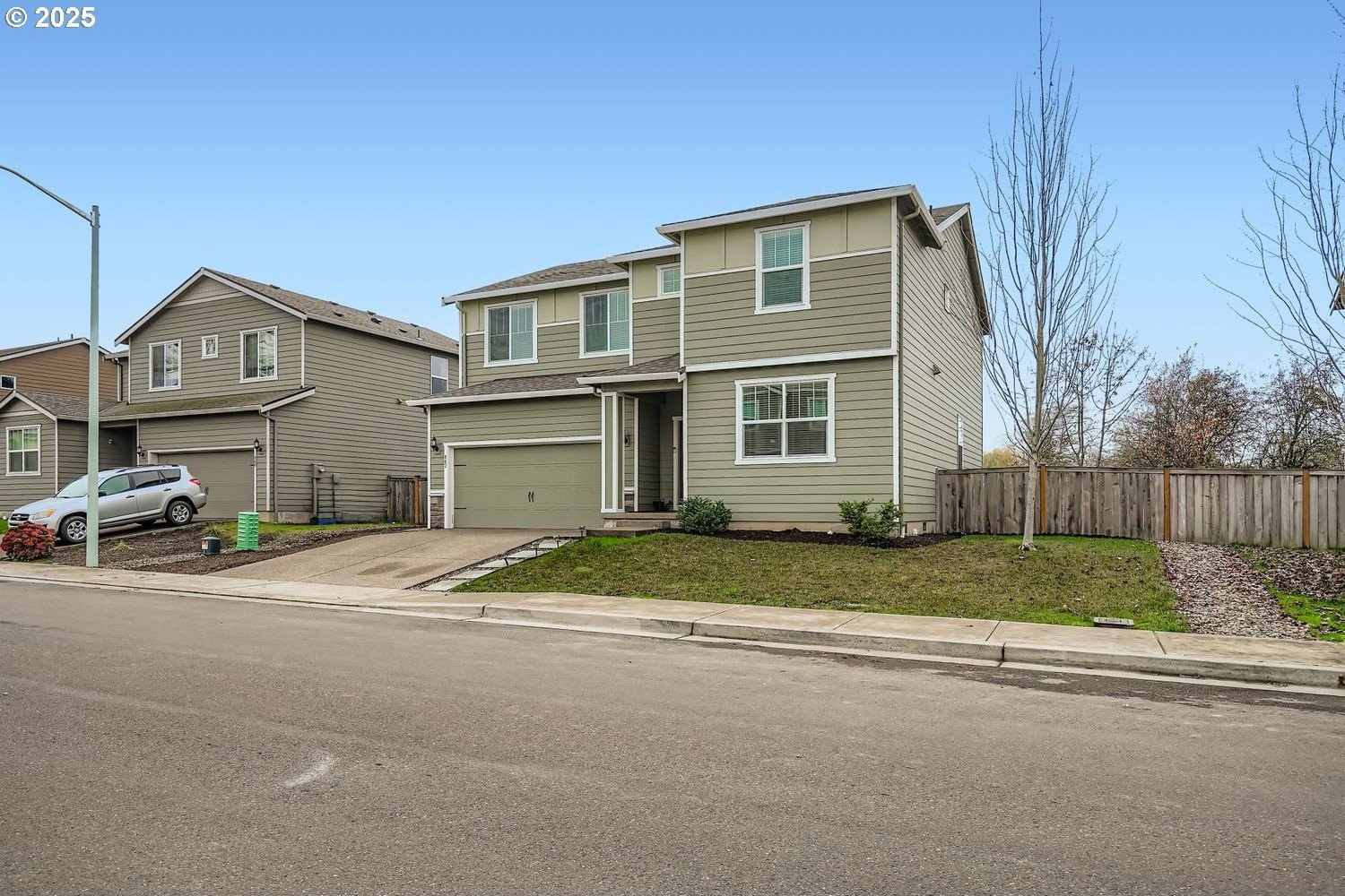 This beautiful home is exceptionally well-maintained and up-to-date. The open kitchen features spacious countertops and an island that seamlessly connects to the dining and living room areas, creating an inviting space for entertaining. A large walk-in pantry is conveniently located between the attached garage and the kitchen. A guest bedroom and full bathroom are situated on the first floor. The upstairs primary suite boasts dual sinks, a separate tub and shower, and a walk-in closet. Some of the other bedrooms also have walk-in closets, providing additional storage space. An upstairs bonus room offers even more room for play, exercise, or entertaining. The landscaped backyard features a spacious deck, perfect for relaxation and outdoor activities.