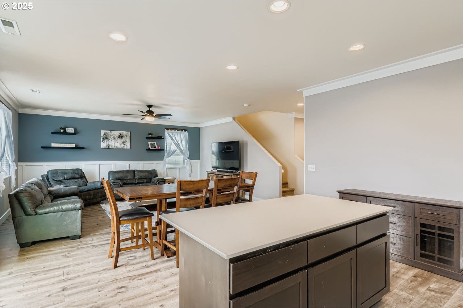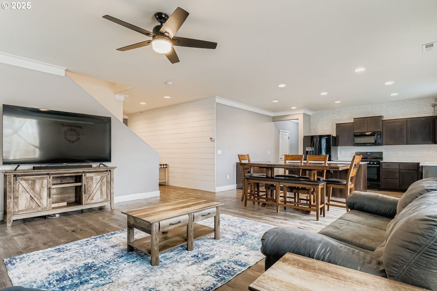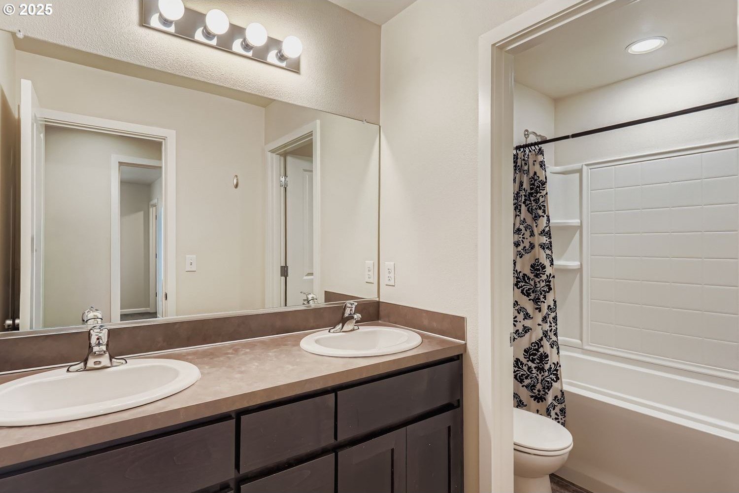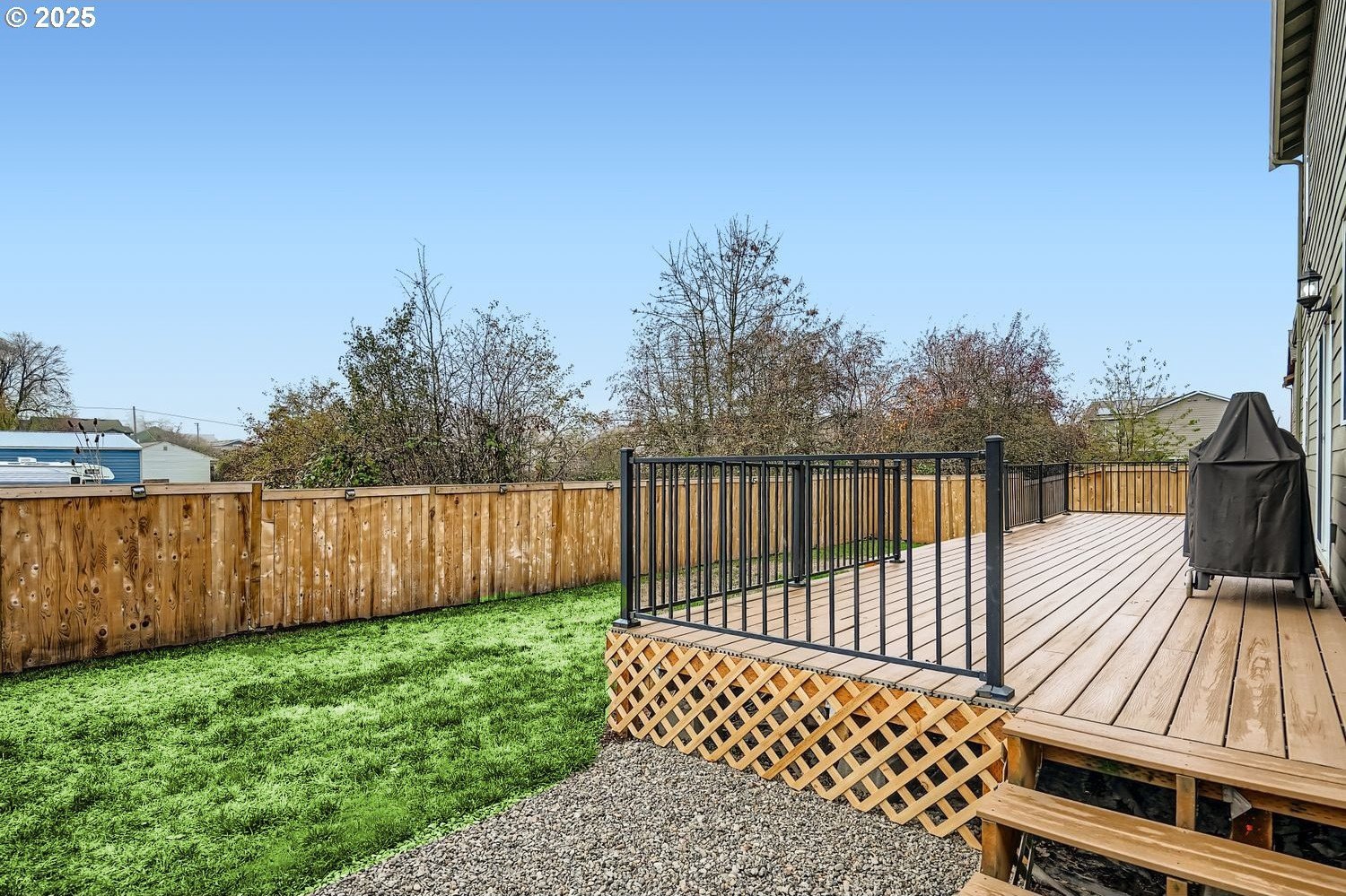 This beautiful home is exceptionally well-maintained and up-to-date. The open kitchen features spacious countertops and an island that seamlessly connects to the dining and living room areas, creating an inviting space for entertaining. A large walk-in pantry is conveniently located between the attached garage and the kitchen. A guest bedroom and full bathroom are situated on the first floor. The upstairs primary suite boasts dual sinks, a separate tub and shower, and a walk-in closet. Some of the other bedrooms also have walk-in closets, providing additional storage space. An upstairs bonus room offers even more room for play, exercise, or entertaining. The landscaped backyard features a spacious deck, perfect for relaxation and outdoor activities.