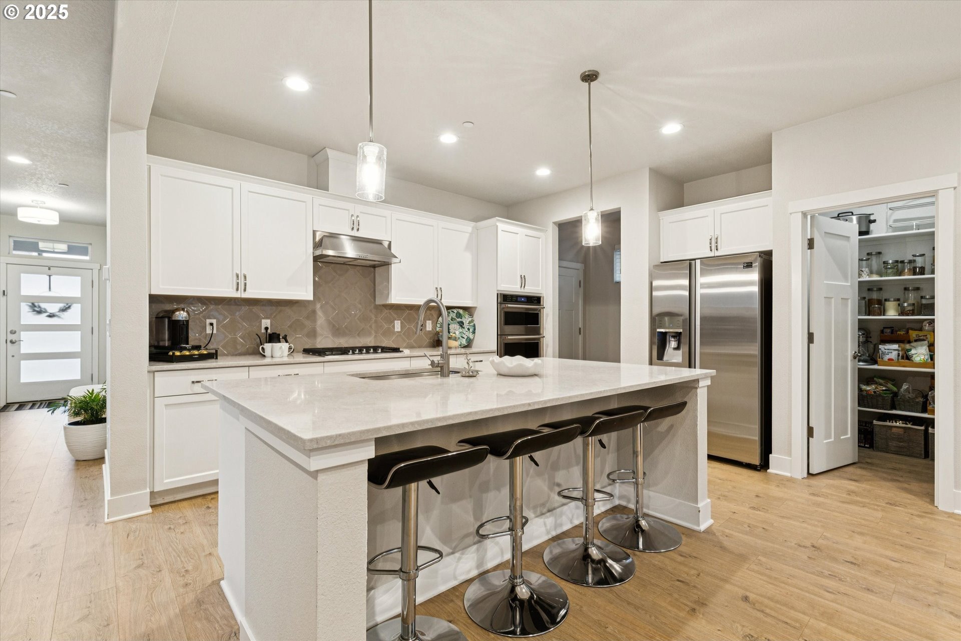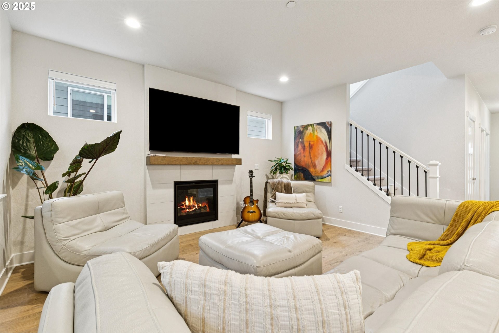 Open House Sunday Dec 5th 2-4. Built in 2022, this stunning home lives like brand new and sits in a serene setting overlooking a private green space framed by soaring evergreens. The expansive deck invites you to relax and enjoy the peaceful backdrop year round, giving the home a true retreat feel.Inside, the main level offers an comfortable open concept layout with a grand room design. The gourmet kitchen features a large island, quartz surfaces, a walk in pantry, and seamless flow into the living area, all enhanced by oversized windows that fill the space with natural light. Just off the kitchen sits a flexible office or study nook, perfect for work, school, or creative projects.Upstairs opens to a spacious family room surrounded by windows and four well sized bedrooms. The primary suite feels luxurious with its generous walk in closet and spa inspired bathroom designed for comfort and relaxation.This home is ideal for a large family or multi generational living. A sizeable room near the entry can serve as a sophisticated home office or additional lounge space. With low maintenance living, modern finishes, and tranquil views of the green space, this property offers the perfect combination of luxury, privacy, and convenience. Cooper Mt Nature park and Winkelman Dog park just minutes away.
