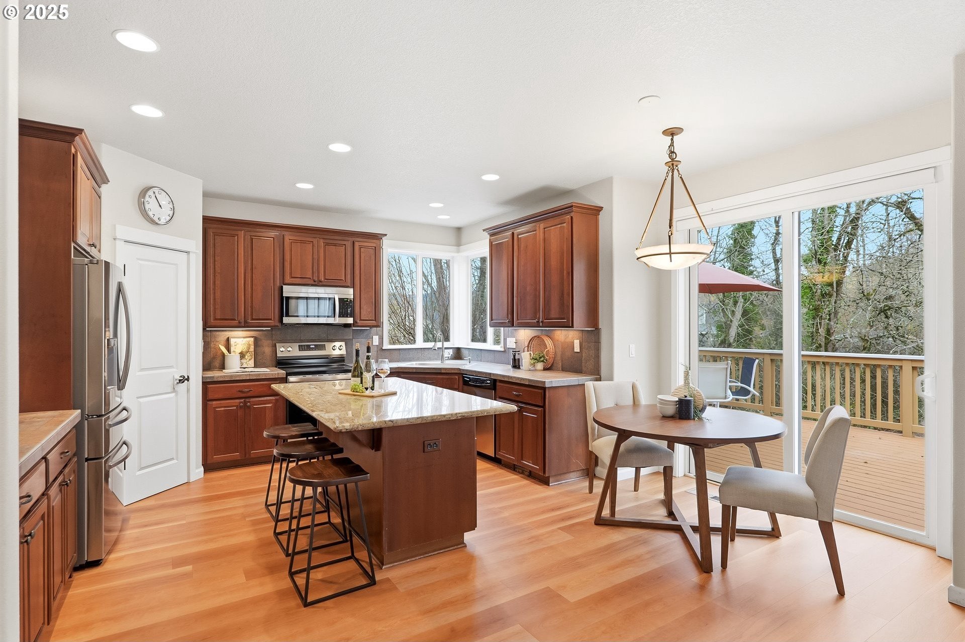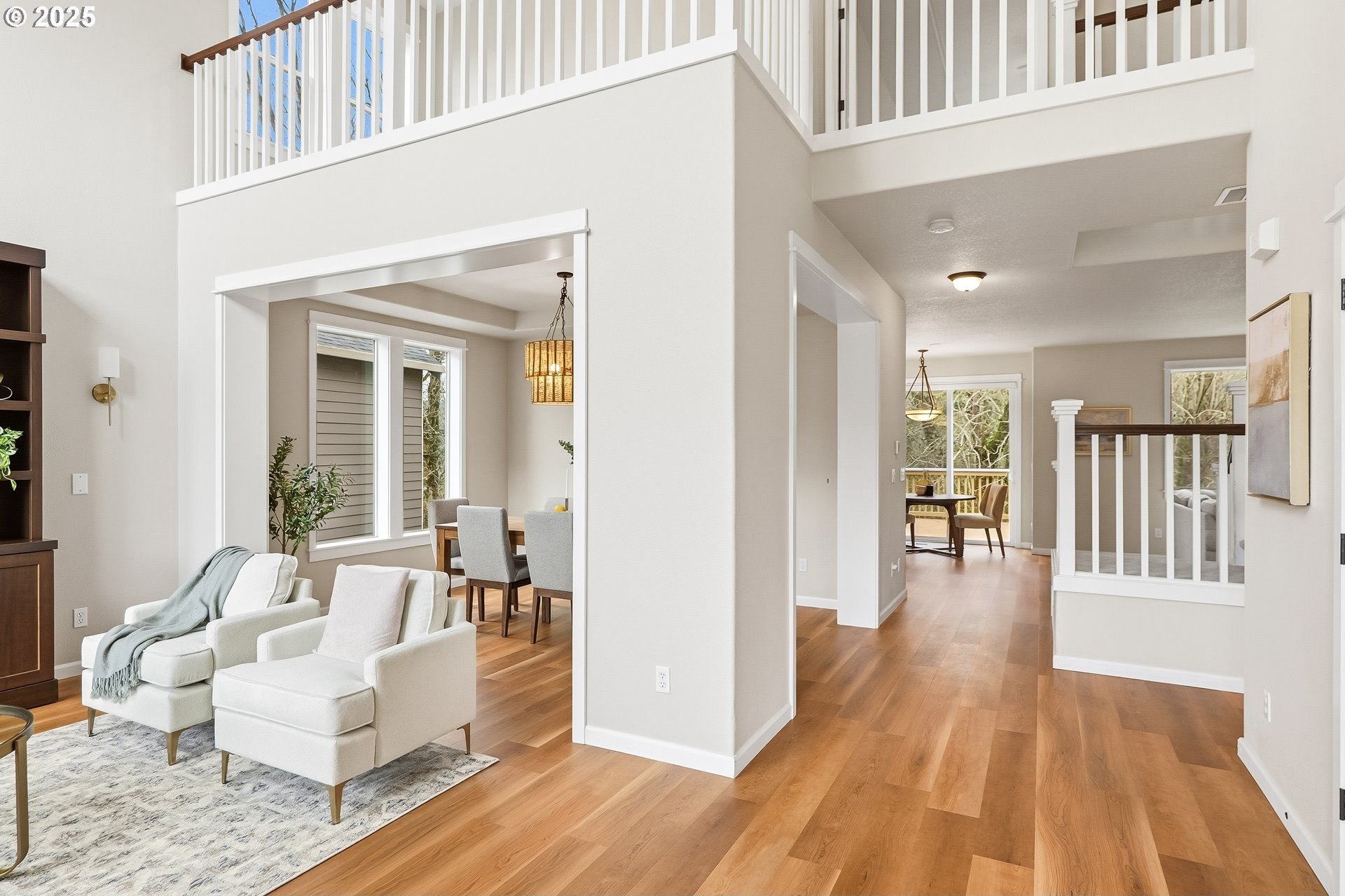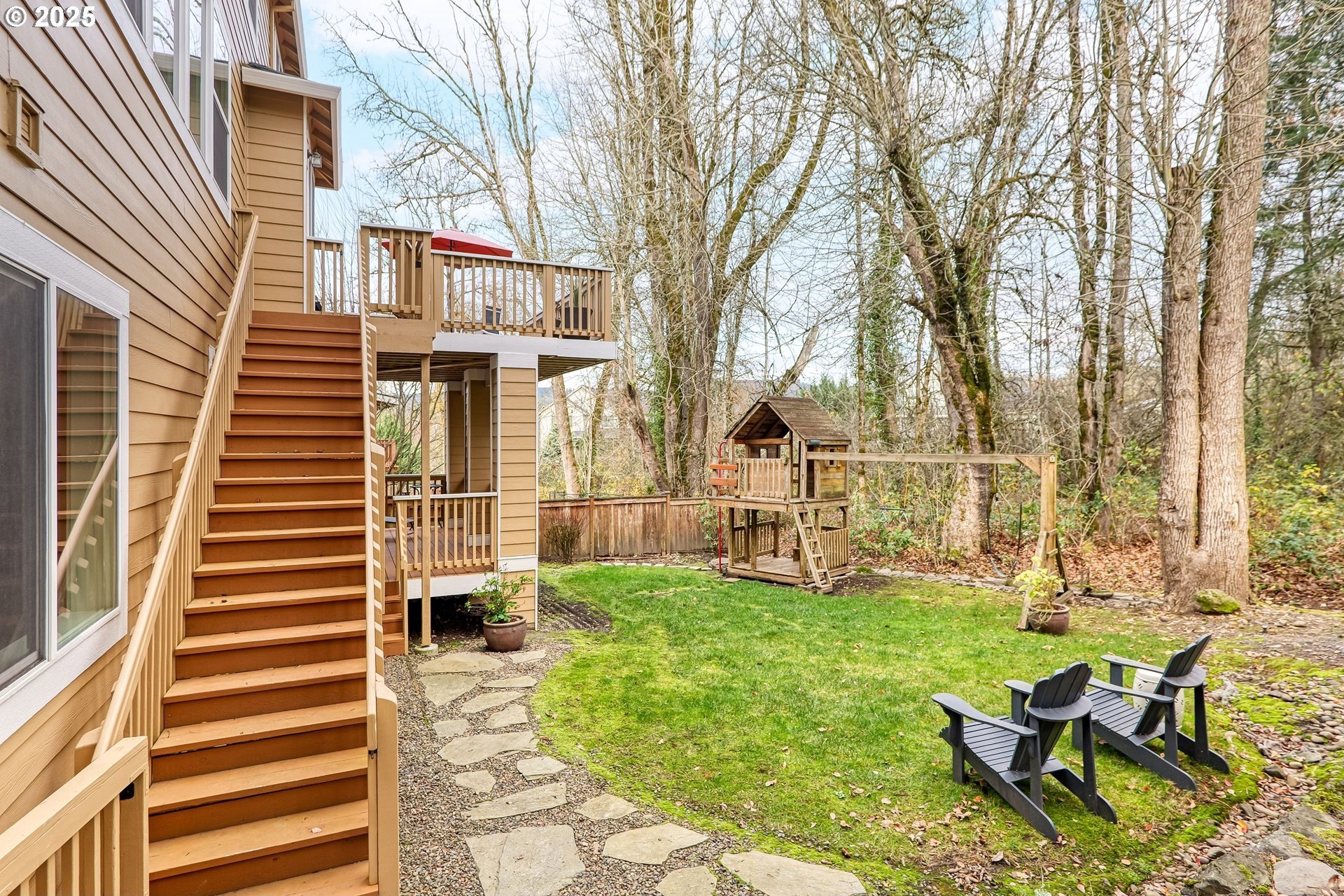 Welcome to The Greens in Newberg-where comfort, style, and location meet. Backing to peaceful green space with tree-lined views, this beautiful home offers soaring ceilings, expansive windows, and warm natural light throughout. Newer engineered hardwood floors guide you through elegant formal living and dining spaces, perfect for entertaining.The chef's kitchen is the heart of the home, featuring a large island, stainless steel appliances, and abundant prep and storage space for hosting gatherings or everyday cooking. French doors lead into the spacious primary suite, complete with a soaking tub, walk-in closet, and serene views of the surrounding greenery.Upstairs, a versatile loft provides additional living, work, or play space. The finished partial basement is ideal for dual living, offering a bedroom, full bathroom, a cozy living room with fireplace, and its own outdoor access-perfect for guests, multigenerational living, or a private retreat.Enjoy two generous deck spaces overlooking the private, tree-filled backyard, complete with a dry river rock bed that becomes a small, beautiful stream in the winter, and plenty of room to relax or entertain. An additional main-level office provides the perfect work-from-home setup.Located in The Greens golf course community, you'll love the laid-back, golf-cart-friendly lifestyle-cruising to the clubhouse, zipping to neighbors' homes, or simply enjoying the neighborhood's relaxed charm. This home also offers access to The Greens amenities and is moments from wine country, hiking trails, downtown Newberg, and fantastic local conveniences.A rare combination of space, layout, and location-this is the one you've been waiting for.
