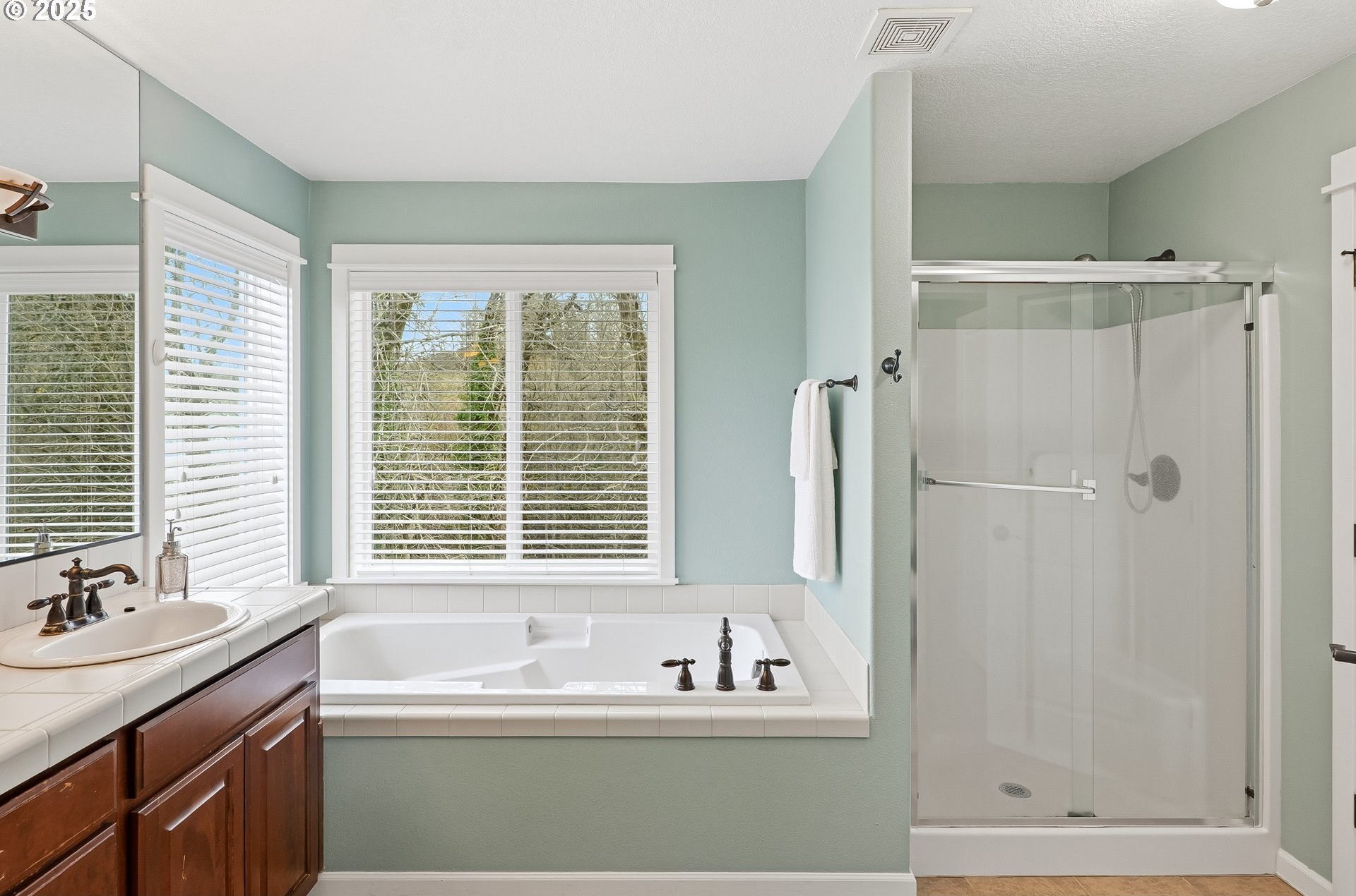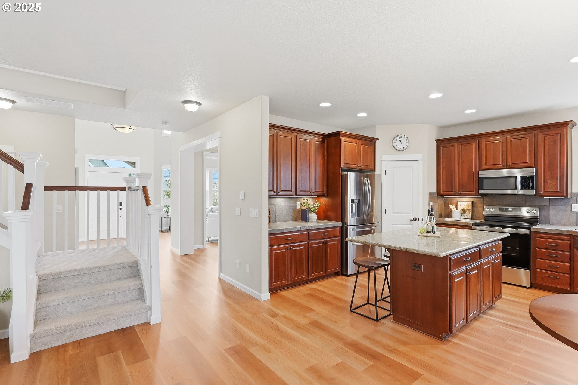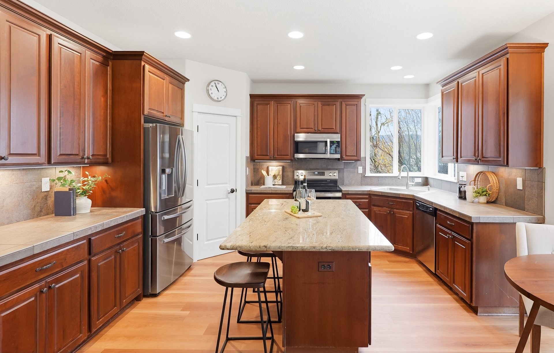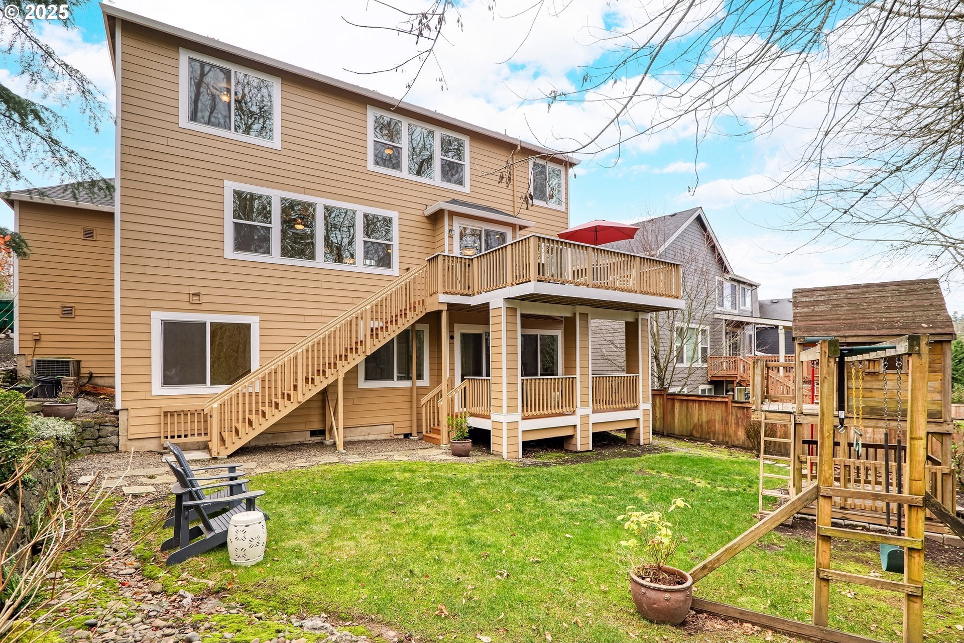Welcome to The Greens in Newberg-where comfort, style, and location meet. Backing to peaceful green space with tree-lined views, this beautiful home offers soaring ceilings, expansive windows, and warm natural light throughout. Newer engineered hardwood floors guide you through elegant formal living and dining spaces, perfect for entertaining.The chef's kitchen is the heart of the home, featuring a large island, stainless steel appliances, and abundant prep and storage space for hosting gatherings or everyday cooking. French doors lead into the spacious primary suite, complete with a soaking tub, walk-in closet, and serene views of the surrounding greenery.Upstairs, a versatile loft provides additional living, work, or play space. The finished partial basement is ideal for dual living, offering a bedroom, full bathroom, a cozy living room with fireplace, and its own outdoor access-perfect for guests, multigenerational living, or a private retreat.Enjoy two generous deck spaces overlooking the private, tree-filled backyard, complete with a dry river rock bed that becomes a small, beautiful stream in the winter, and plenty of room to relax or entertain. An additional main-level office provides the perfect work-from-home setup.Located in The Greens golf course community, you'll love the laid-back, golf-cart-friendly lifestyle-cruising to the clubhouse, zipping to neighbors' homes, or simply enjoying the neighborhood's relaxed charm. This home also offers access to The Greens amenities and is moments from wine country, hiking trails, downtown Newberg, and fantastic local conveniences.A rare combination of space, layout, and location-this is the one you've been waiting for.
