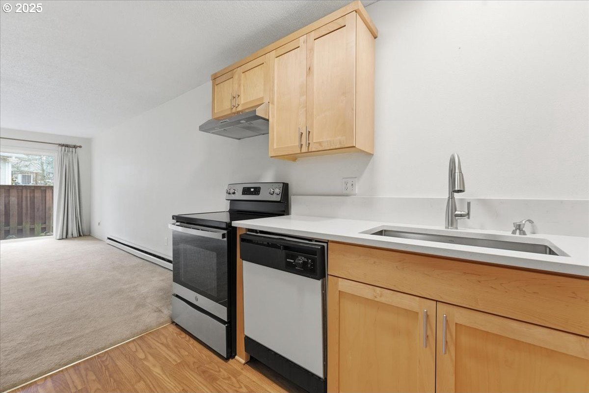 Discover an affordable and well-located lower-level condo in the desirable Hillsdale area of SW Portland. This street-level home features an open floor plan with a welcoming layout, vinyl flooring with carpeted areas, and an updated kitchen with newer cabinets, quartz countertops, and stainless steel appliances. The bathroom includes a freshly refinished tub, and the in-unit washer and dryer add everyday convenience. The home is move-in ready while still offering opportunities for a new owner to add their personal finishing touches.Designated parking space #30 plus available visitor parking provide ease for both residents and guests. Enjoy being blocks from Multnomah Village, Gabriel Park, the Hillsdale Farmer's Market, local shops, and dining. Convenient access to nearby bus lines, schools, and surrounding green spaces completes the setting. A great option for those seeking value, location, and potential in a highly sought-after SW Portland neighborhood.