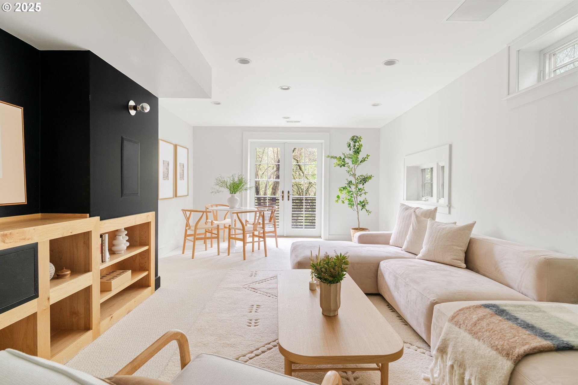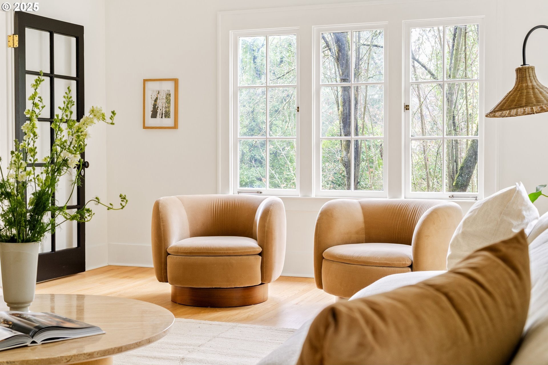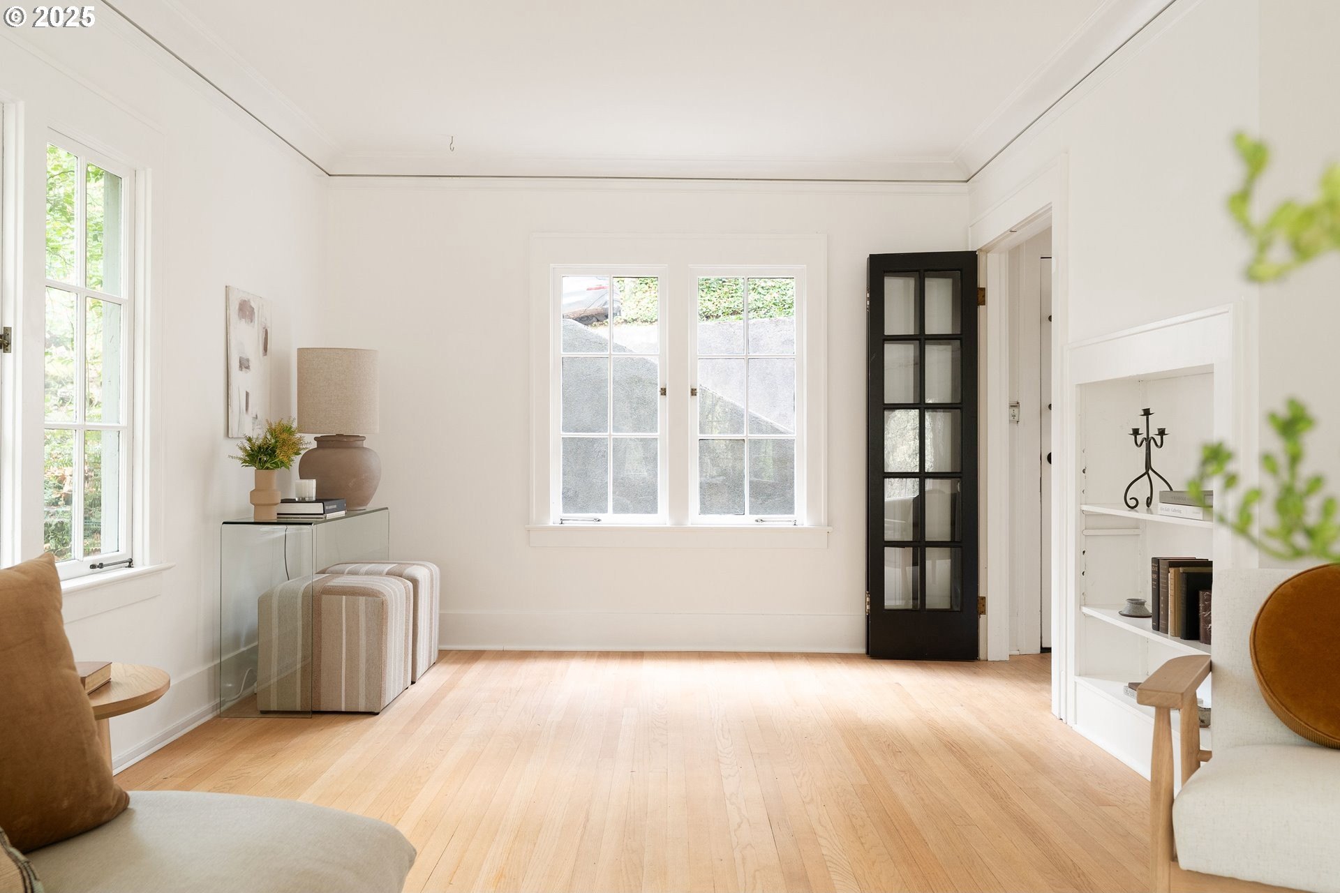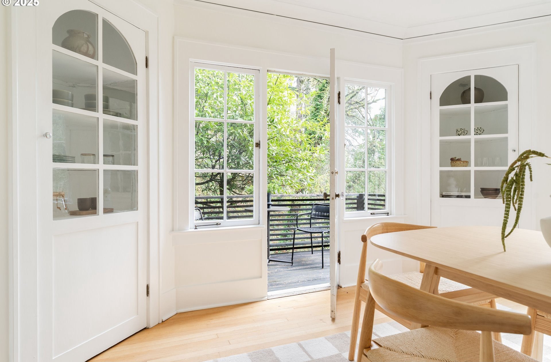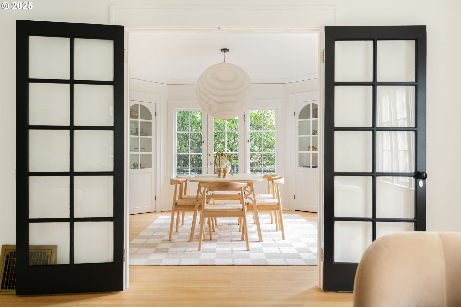 Perched above Burnside in Kings Heights, this south-facing home pairs vintage charm with thoughtful modern updates for a collected and stylish feel. Inside, gorgeous oak floors, built-ins, and French doors bring warmth to the light filled main level, which offers a spacious living room with fireplace, dining room, inviting deck, and bright kitchen. Upstairs, three serene bedrooms and a full bath, recently highlighted by Domino Magazine online, create a calm and cohesive retreat. The lower level offers a private suite that includes its own bedroom, full bath, den with surround sound speakers, and direct access to the backyard, offering flexibility for guests, long term stays, creative work, or additional living space. Set among the trees with quick access to top schools, trails, parks, cafes, boutiques, and some of Portland's favorite westside spots, this special and chic home offers a unique blend of elevated hillside living and immediate city convenience.