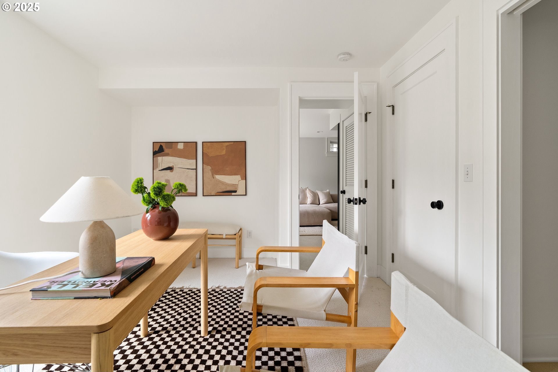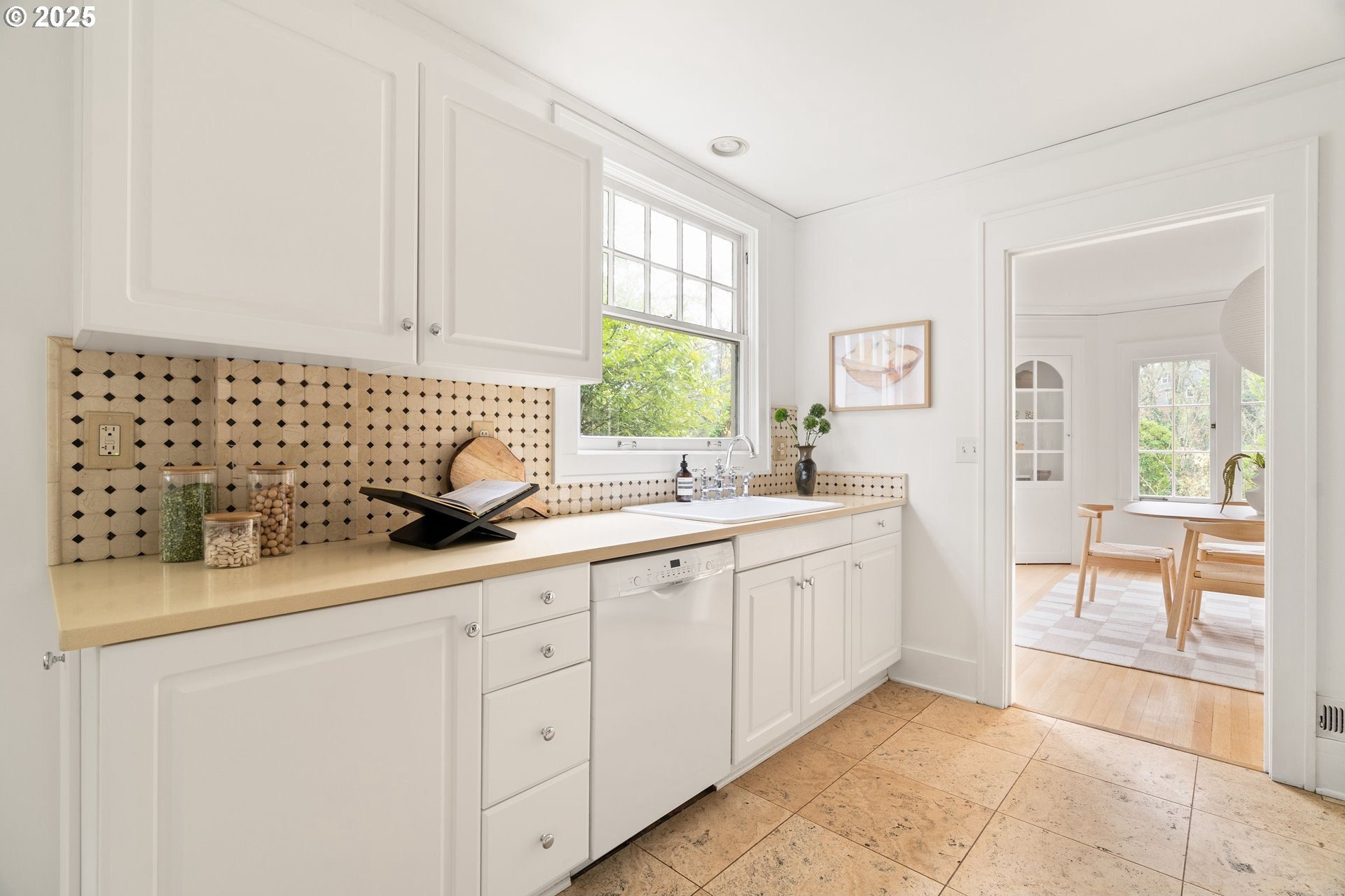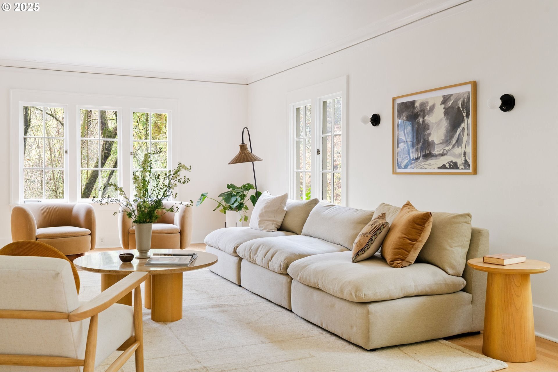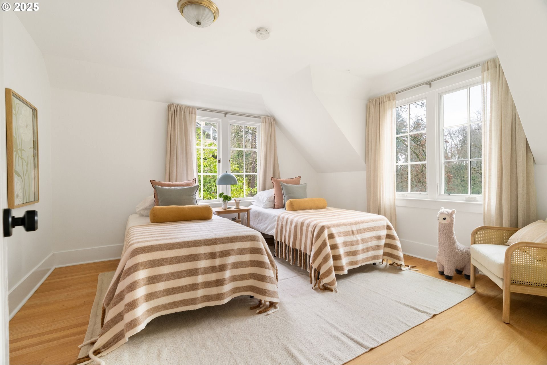 Perched above Burnside in Kings Heights, this south-facing home pairs vintage charm with thoughtful modern updates for a collected and stylish feel. Inside, gorgeous oak floors, built-ins, and French doors bring warmth to the light filled main level, which offers a spacious living room with fireplace, dining room, inviting deck, and bright kitchen. Upstairs, three serene bedrooms and a full bath, recently highlighted by Domino Magazine online, create a calm and cohesive retreat. The lower level offers a private suite that includes its own bedroom, full bath, den with surround sound speakers, and direct access to the backyard, offering flexibility for guests, long term stays, creative work, or additional living space. Set among the trees with quick access to top schools, trails, parks, cafes, boutiques, and some of Portland's favorite westside spots, this special and chic home offers a unique blend of elevated hillside living and immediate city convenience.